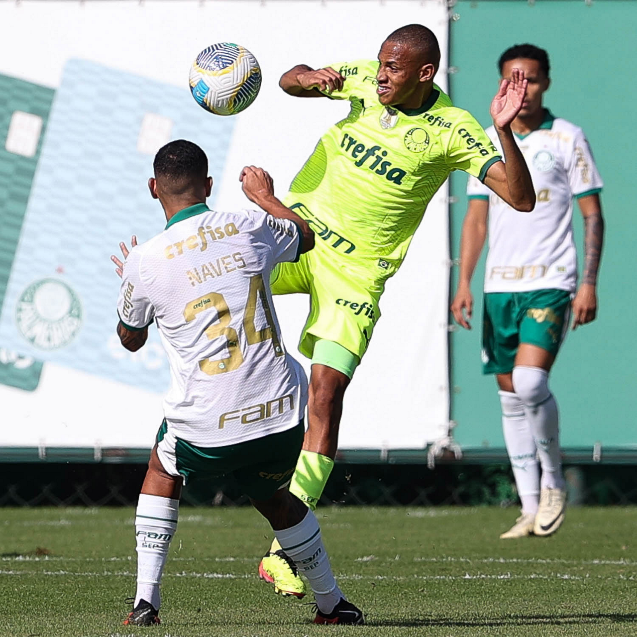 O jogador Naves, da SE Palmeiras, durante jogo-treino, na Academia de Futebol. (Foto: Cesar Greco/Palmeiras/by Canon)