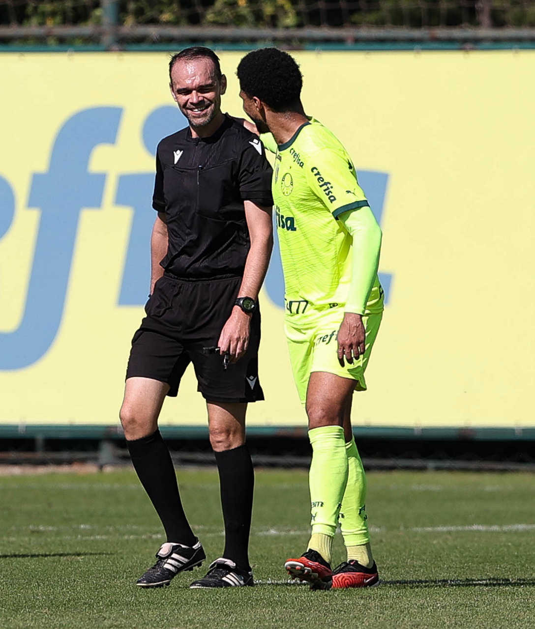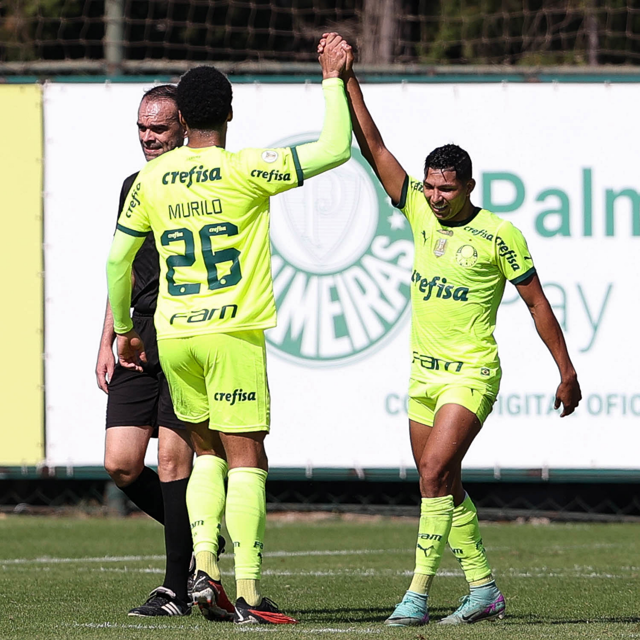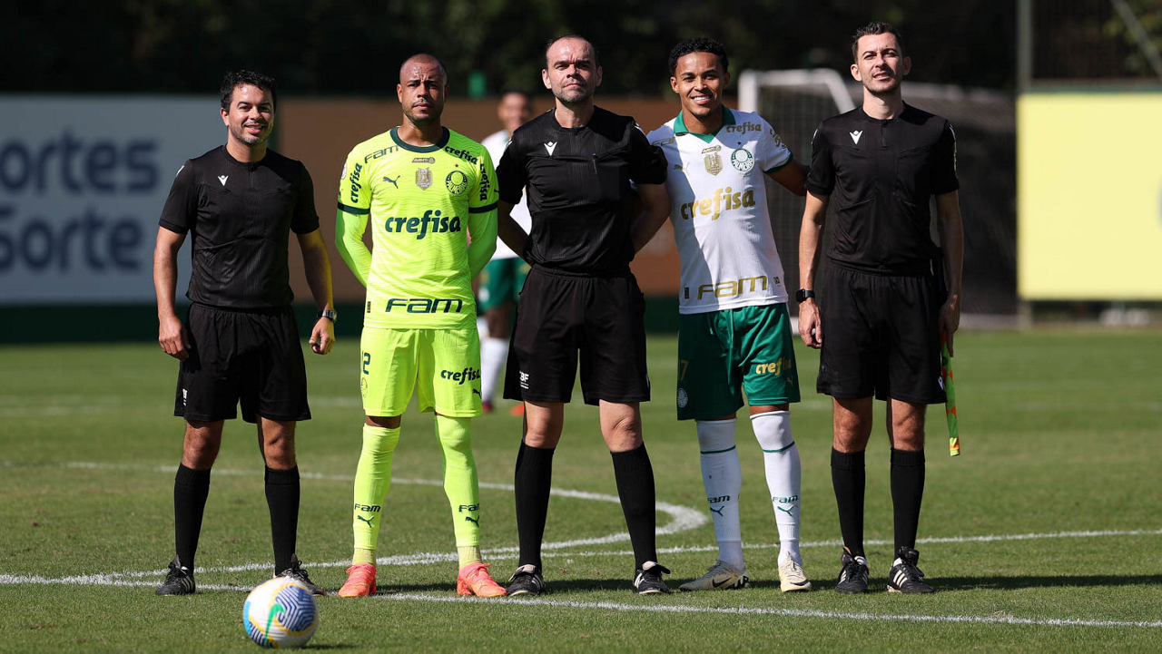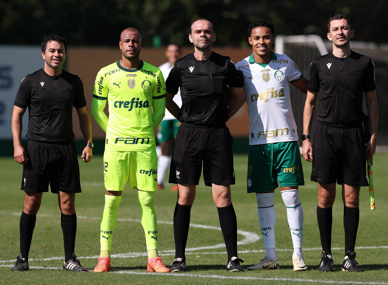 O trio de arbitragem do jogo-treino da SE Palmeiras, na Academia de Futebol. (Foto: Cesar Greco/Palmeiras/by Canon)