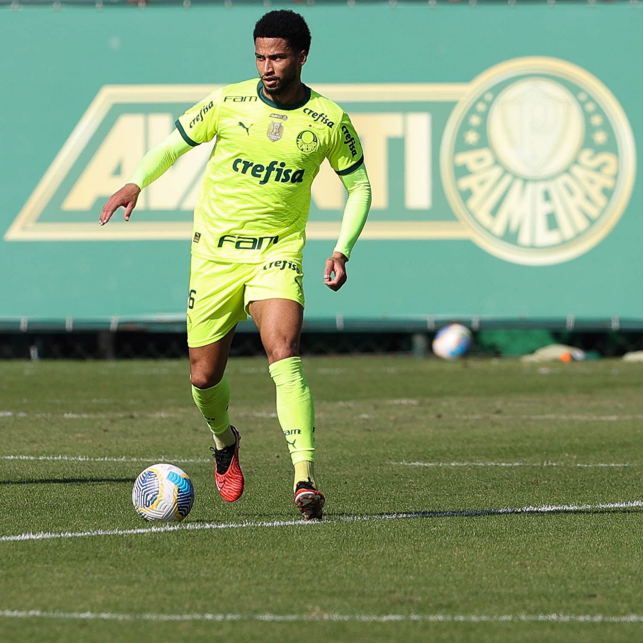 O jogador Fabinho, da SE Palmeiras, durante jogo-treino, na Academia de Futebol. (Foto: Cesar Greco/Palmeiras/by Canon)
