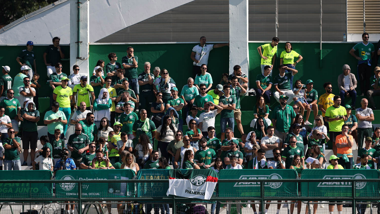 A torcida da SE Palmeiras, durante jogo-treino, na Academia de Futebol. (Foto: Cesar Greco/Palmeiras/by Canon)