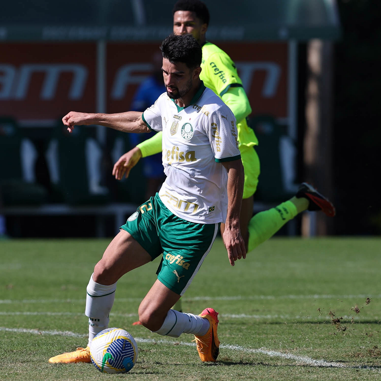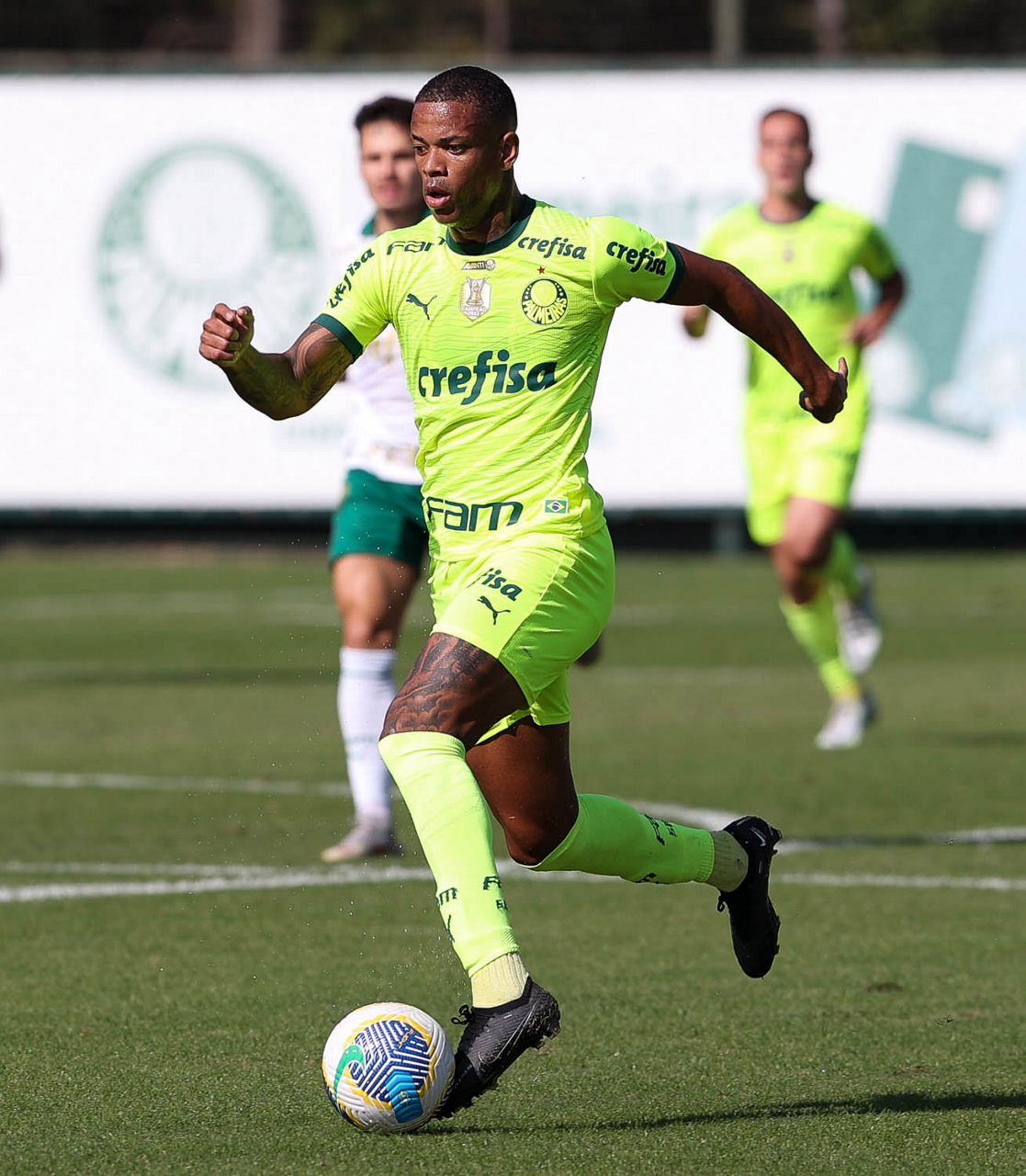 O jogador Lázaro, da SE Palmeiras, durante jogo-treino, na Academia de Futebol. (Foto: Cesar Greco/Palmeiras/by Canon)