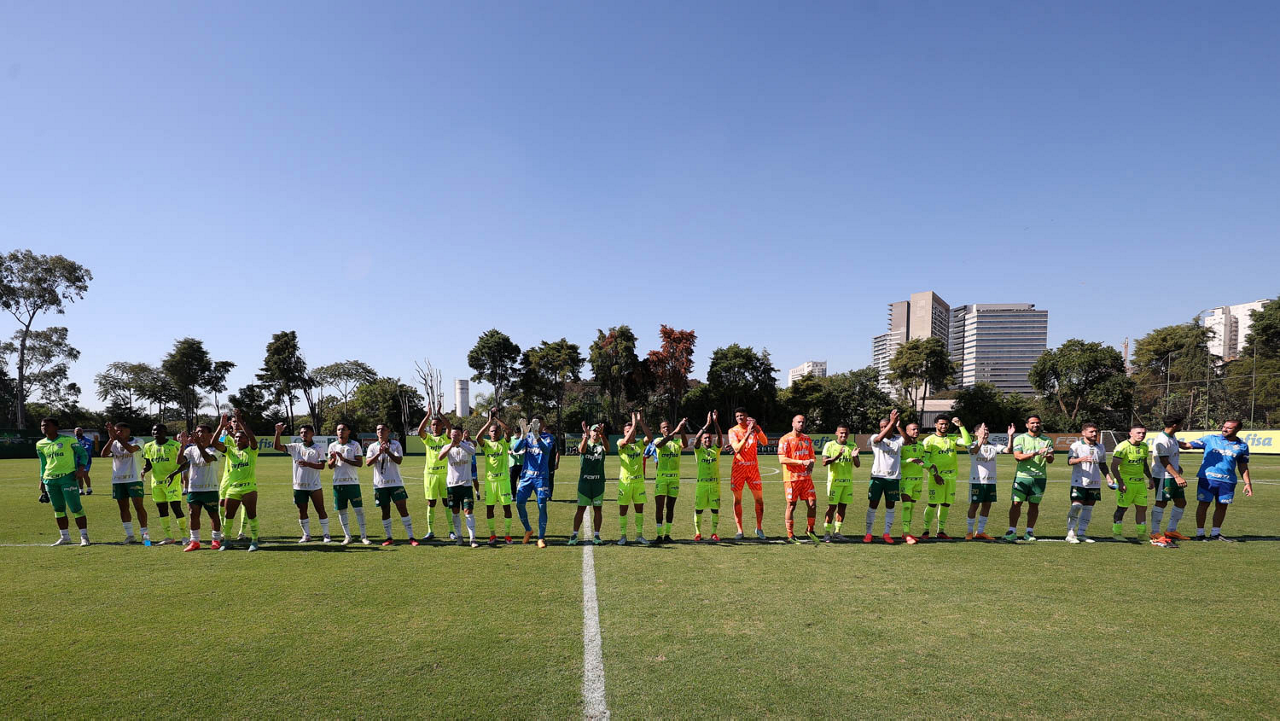 O técnico Abel Ferreira (C) e elenco, da SE Palmeiras, durante jogo-treino, na Academia de Futebol. (Foto: Cesar Greco/Palmeiras/by Canon)