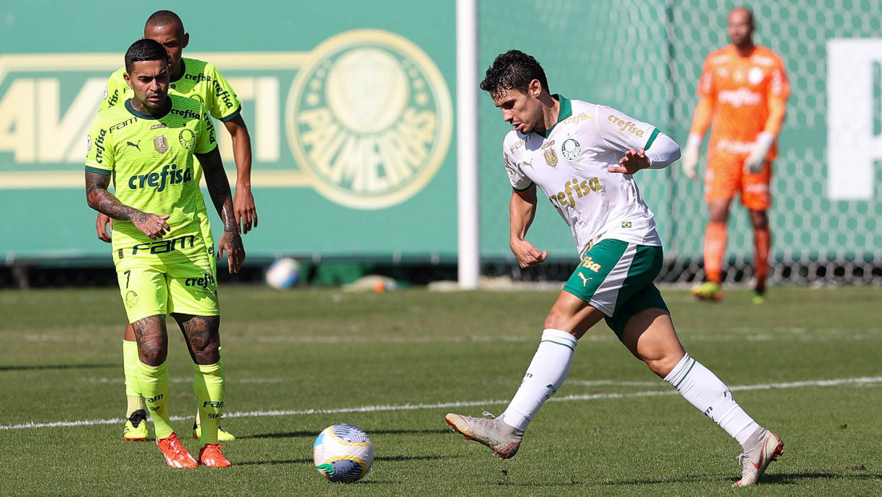 O jogador Raphael Veiga, da SE Palmeiras, durante jogo-treino, na Academia de Futebol. (Foto: Cesar Greco/Palmeiras/by Canon)
