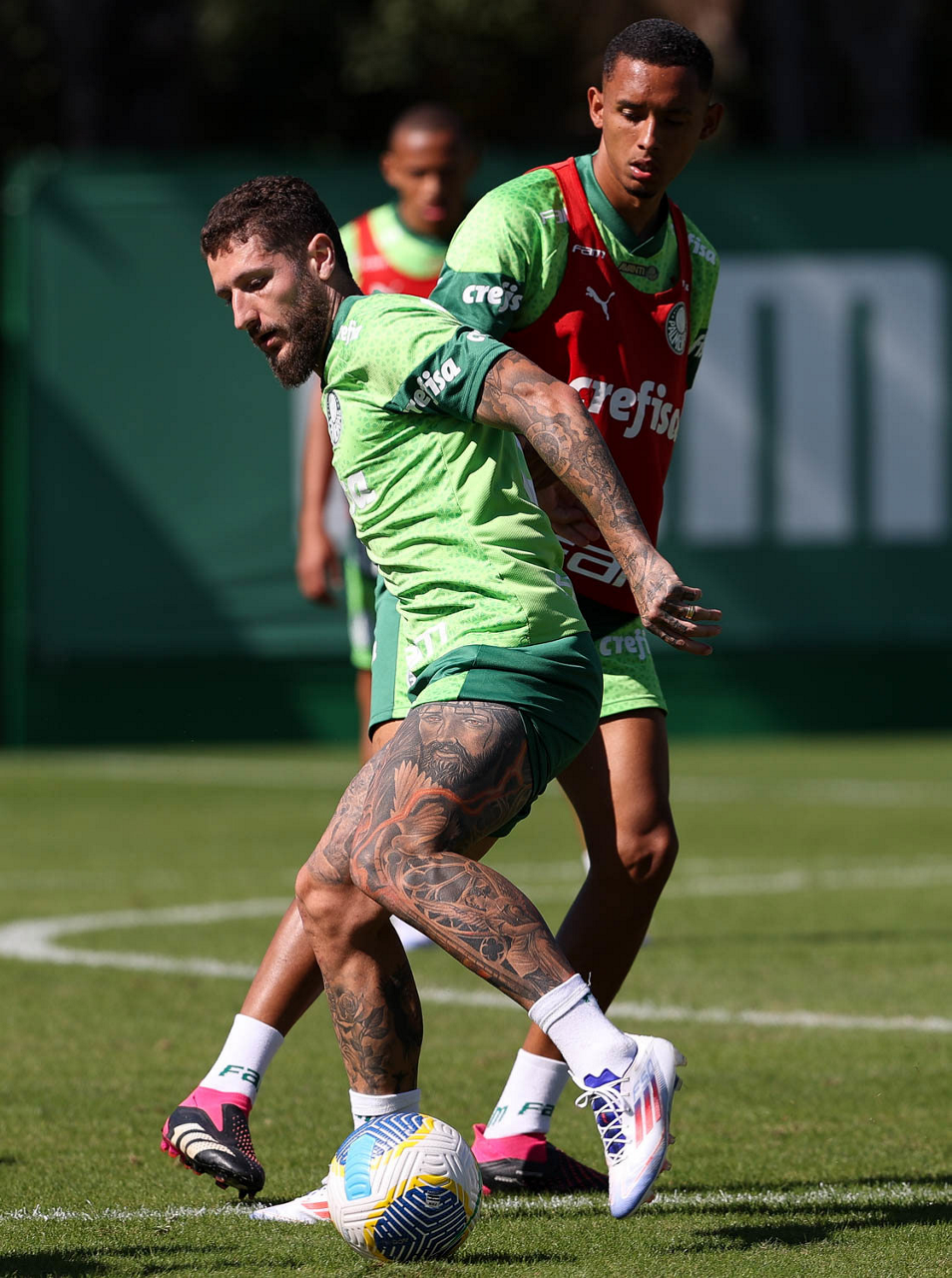 O jogador Joaquín Piquerez, da SE Palmeiras, durante treinamento, na Academia de Futebol. (Foto: Cesar Greco/Palmeiras/by Canon)