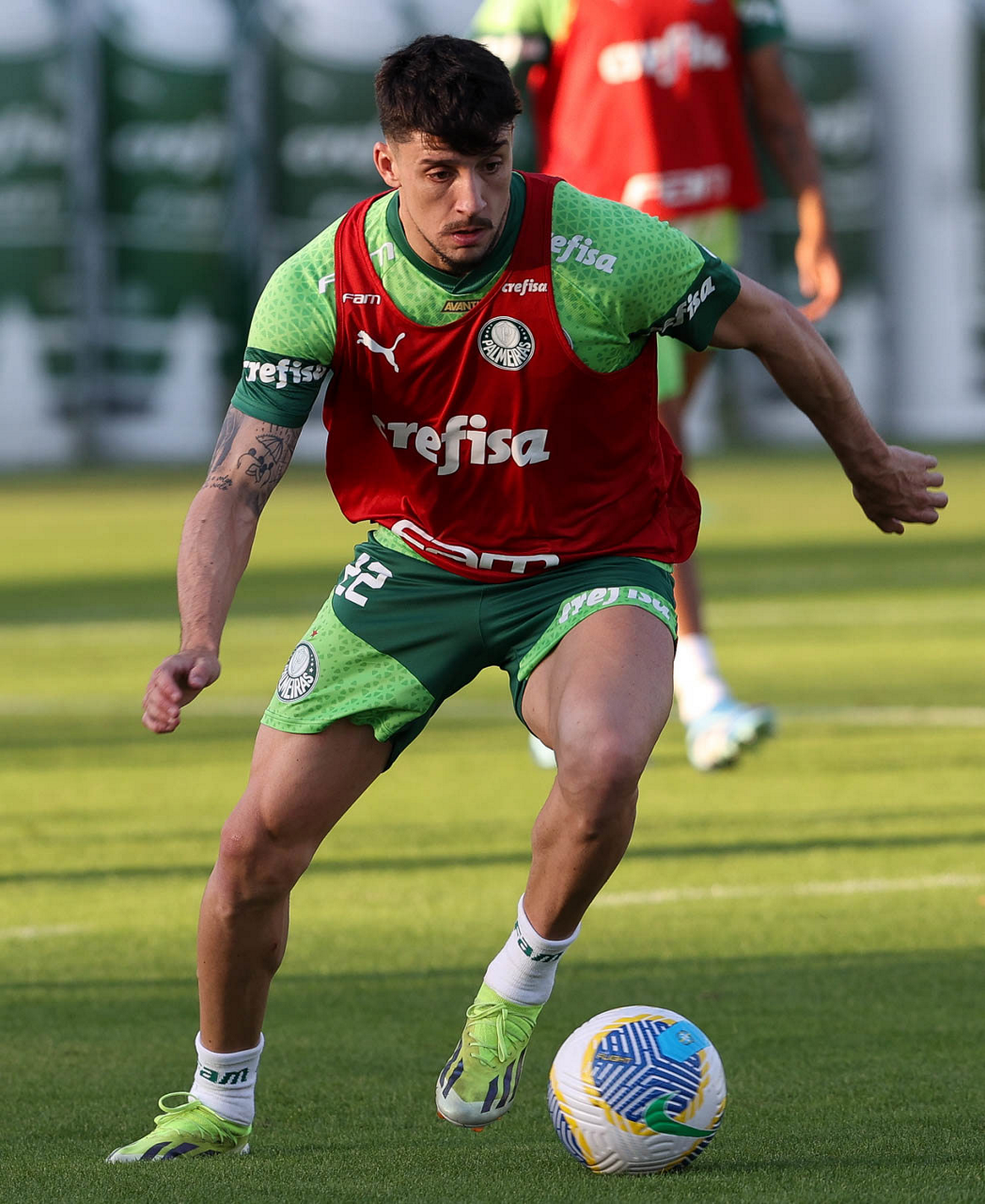 O jogador Joaquín Piquerez, da SE Palmeiras, durante treinamento, na Academia de Futebol. (Foto: Cesar Greco/Palmeiras/by Canon)