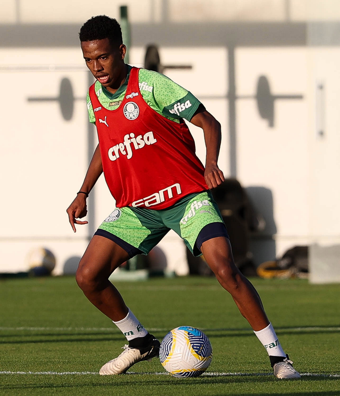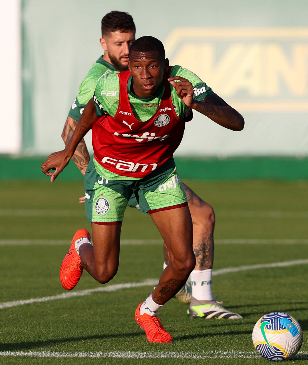 O jogador Gabriel Menino, da SE Palmeiras, durante treinamento, na Academia de Futebol. (Foto: Cesar Greco/Palmeiras/by Canon)