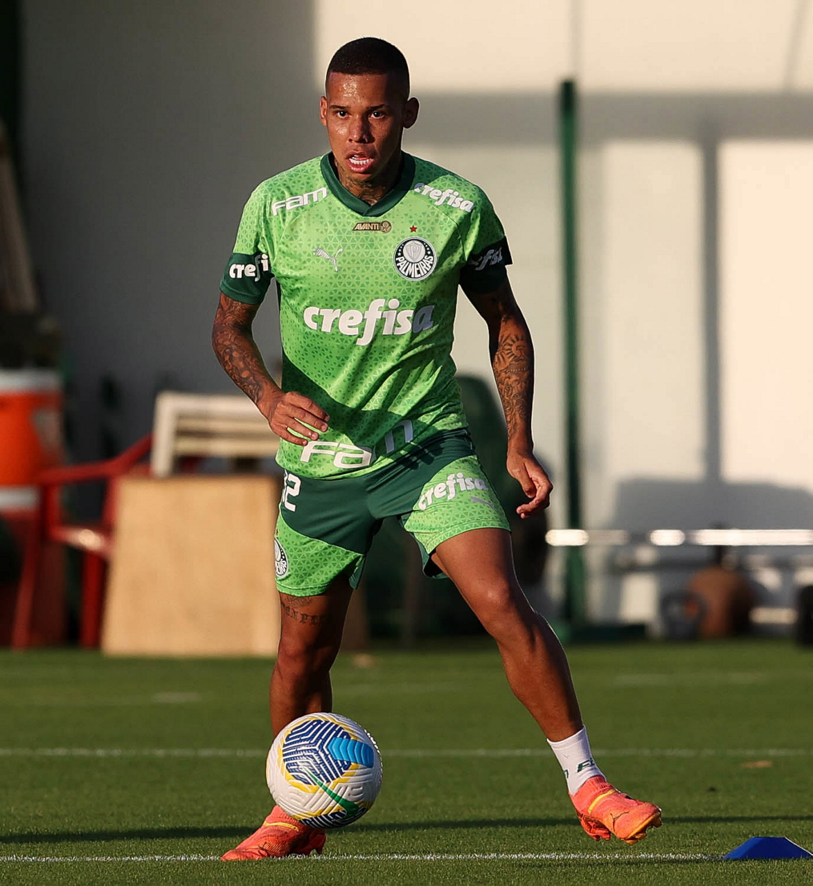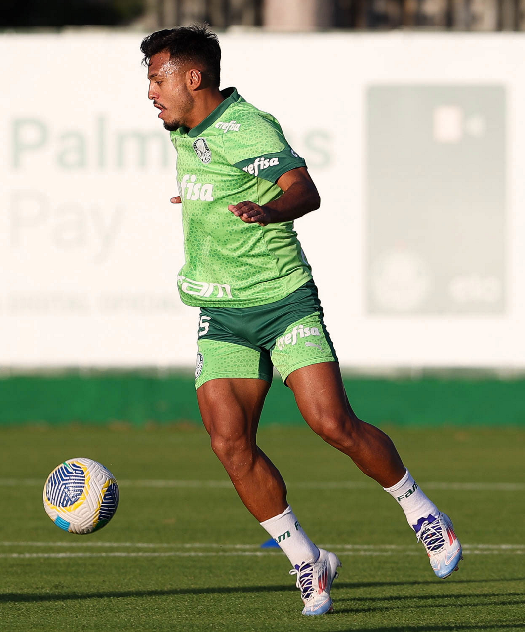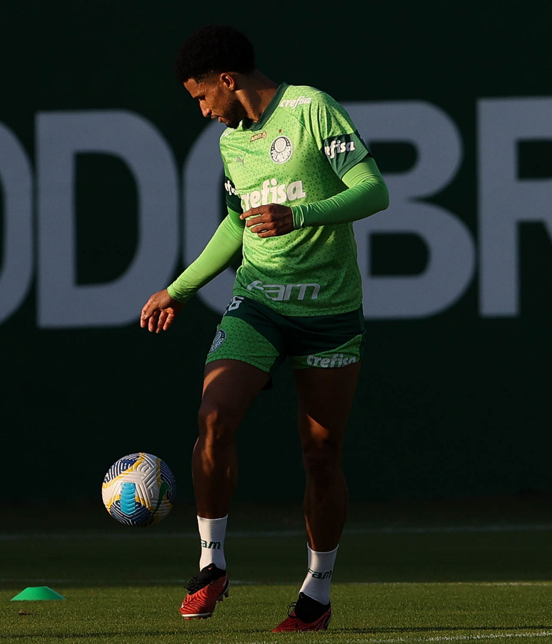 O jogador Fabinho, da SE Palmeiras, durante treinamento, na Academia de Futebol. (Foto: Cesar Greco/Palmeiras/by Canon)