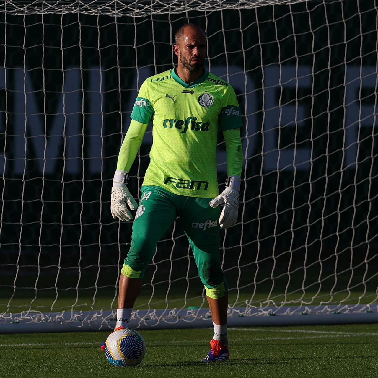 O goleiro Weverton, da SE Palmeiras, durante treinamento, na Academia de Futebol. (Foto: Cesar Greco/Palmeiras/by Canon)