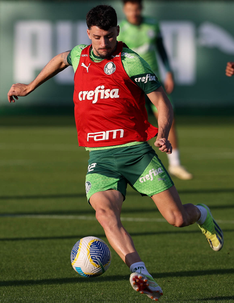 O jogador Raphael Veiga, da SE Palmeiras, durante treinamento, na Academia de Futebol. (Foto: Cesar Greco/Palmeiras/by Canon)