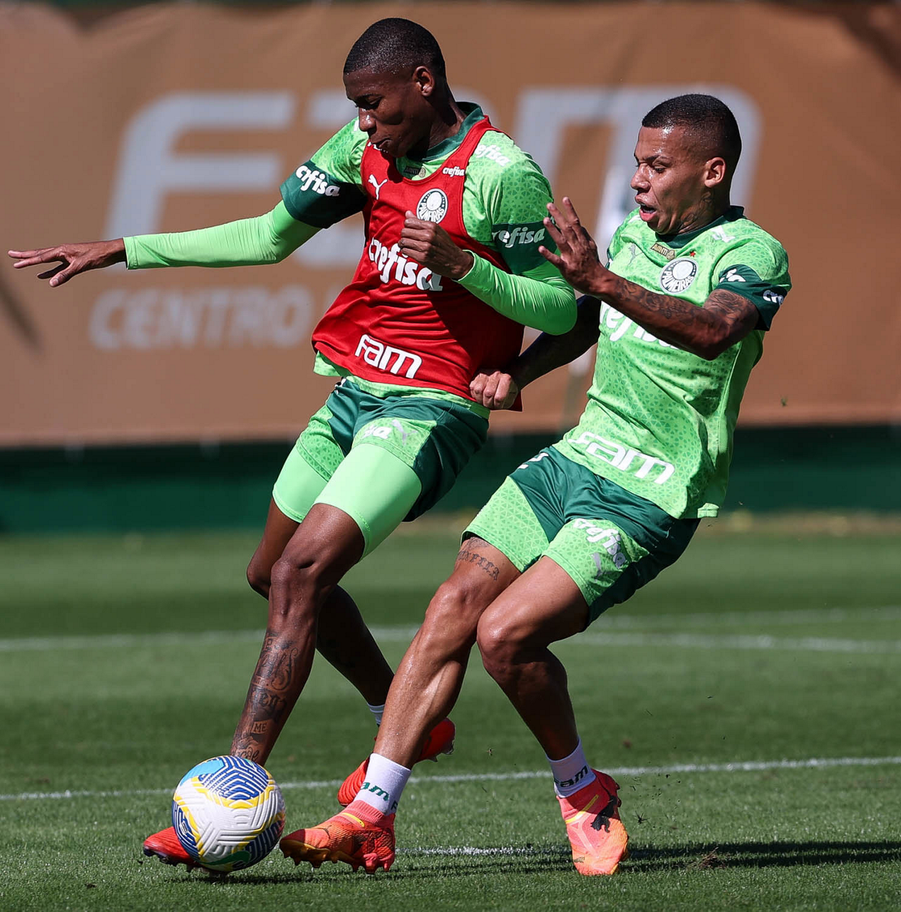 Os jogadores Mayke e Rony (D), da SE Palmeiras, durante treinamento, na Academia de Futebol. (Foto: Cesar Greco/Palmeiras/by Canon)