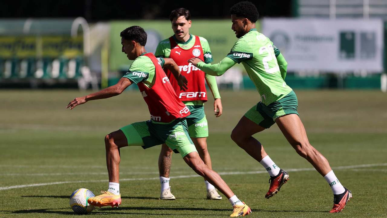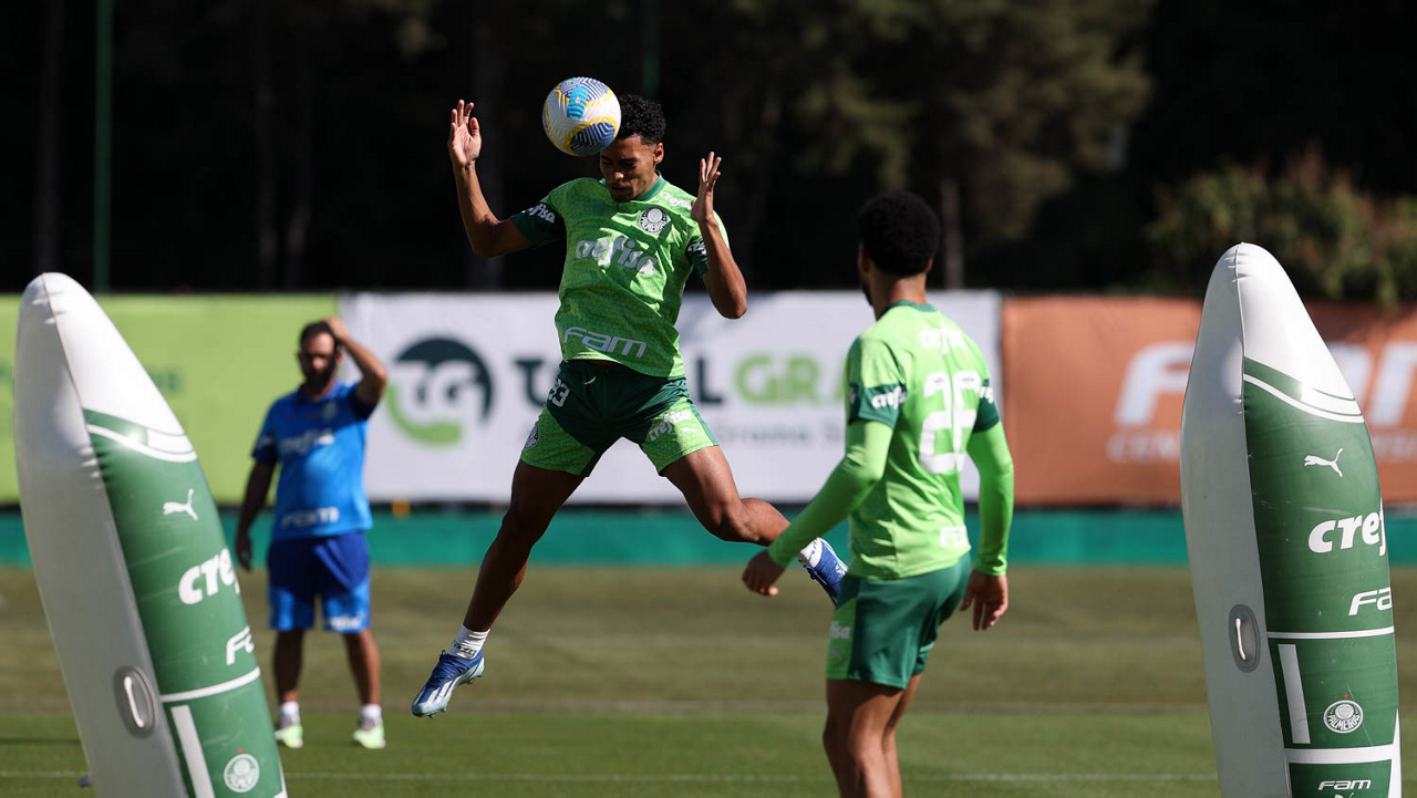 O jogador Gabriel Menino, da SE Palmeiras, durante treinamento, na Academia de Futebol. (Foto: Cesar Greco/Palmeiras/by Canon)