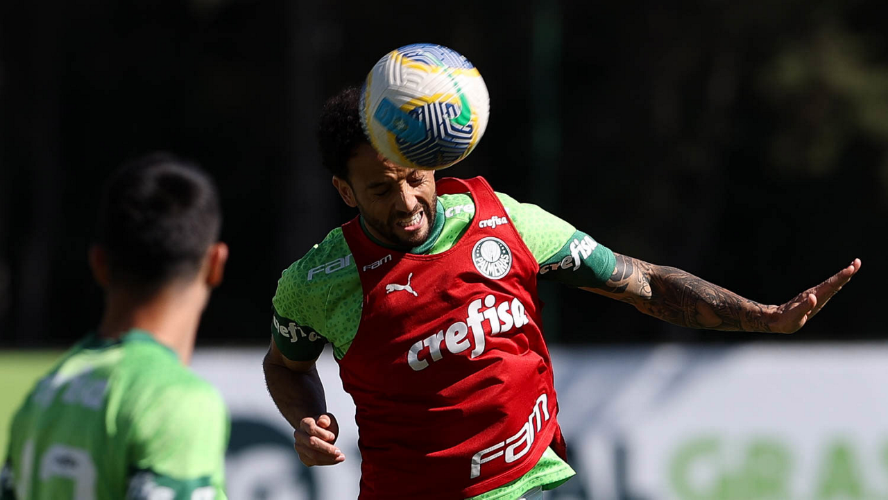 O jogador Felipe Anderson, da SE Palmeiras, durante treinamento, na Academia de Futebol. (Foto: Cesar Greco/Palmeiras/by Canon)