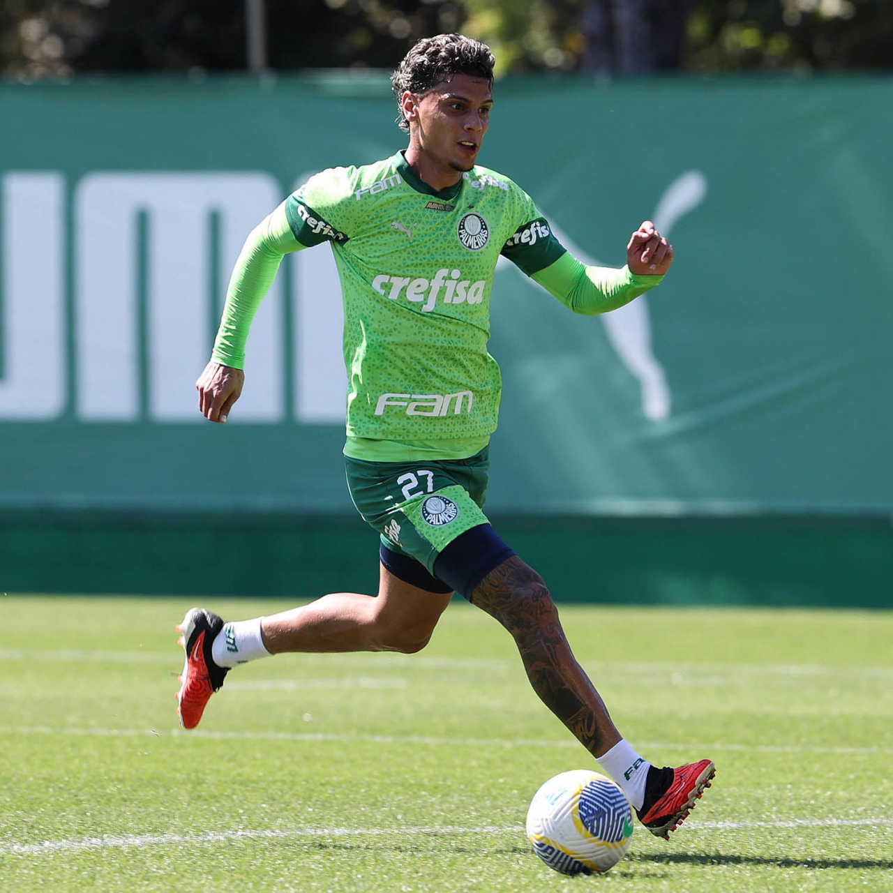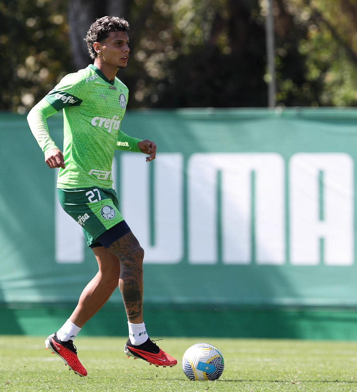 O jogador Richard Ríos, da SE Palmeiras, durante treinamento, na Academia de Futebol. (Foto: Cesar Greco/Palmeiras/by Canon)