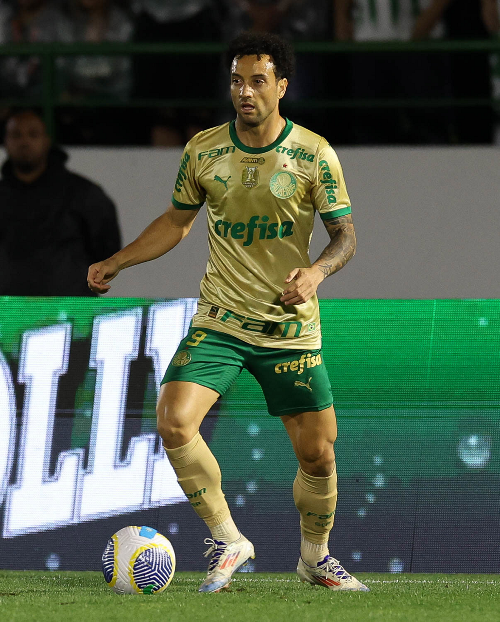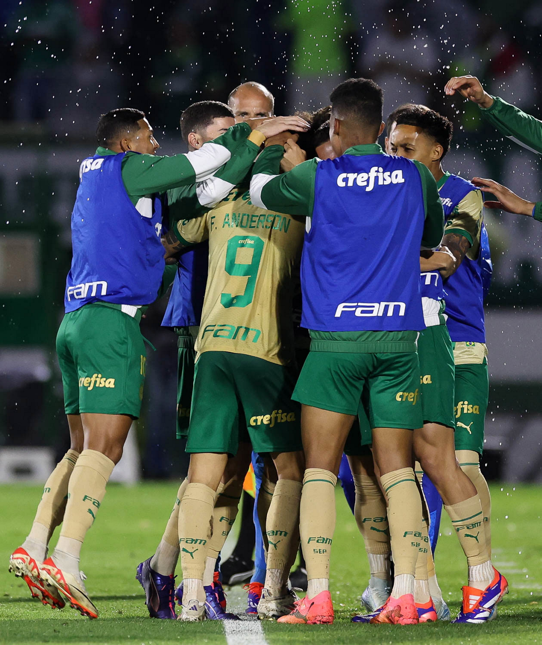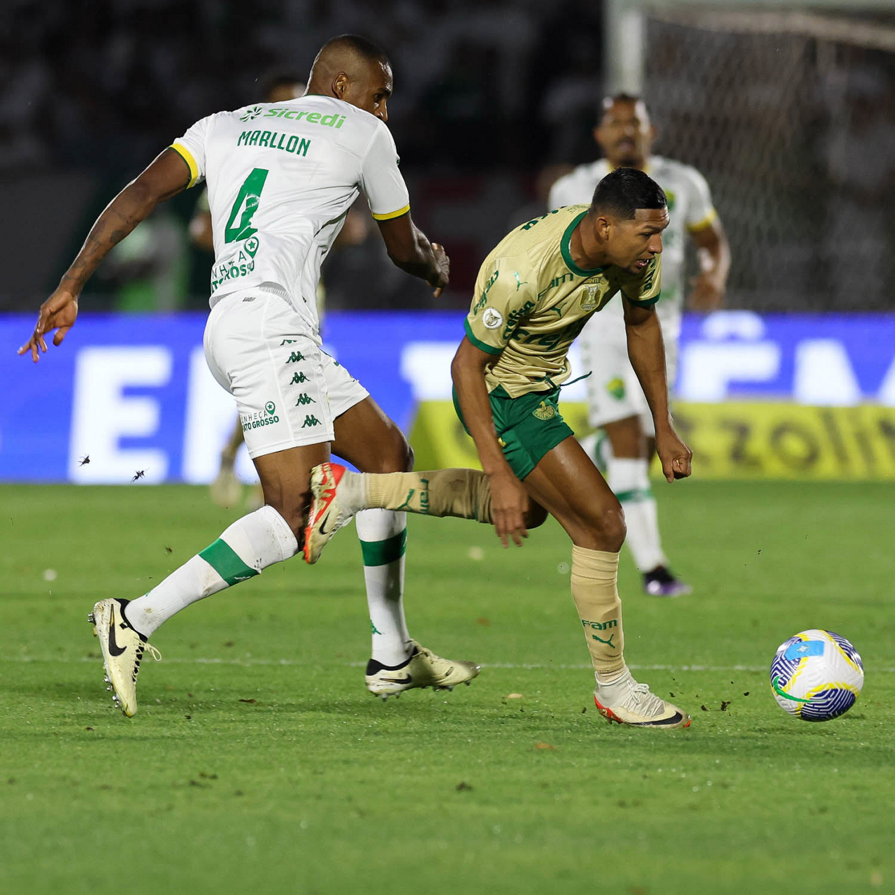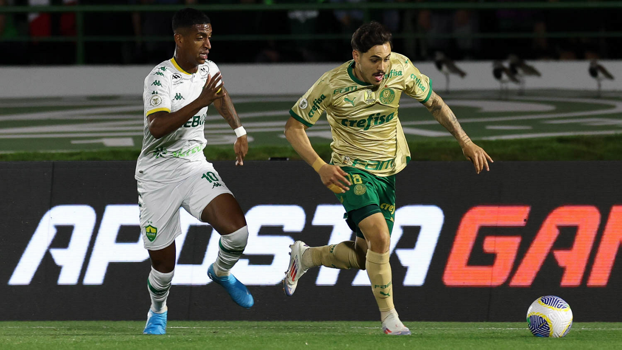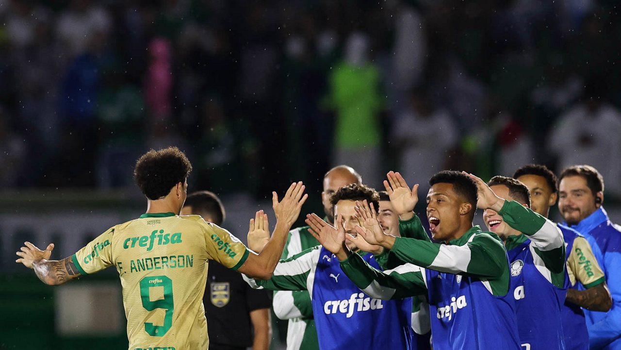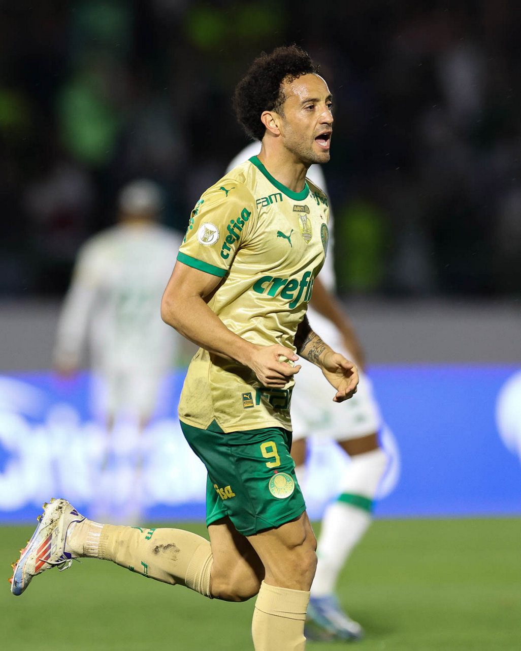 O técnico Abel Ferreira e o jogador Felipe Anderson (D), da SE Palmeiras, em jogo contra a equipe do Cuiabá EC, durante partida válida pela vigésima quarta rodada, do Campeonato Brasileiro, Série A, no Estádio Brinco de Ouro. (Foto: Cesar Greco/Palmeiras/by Canon)