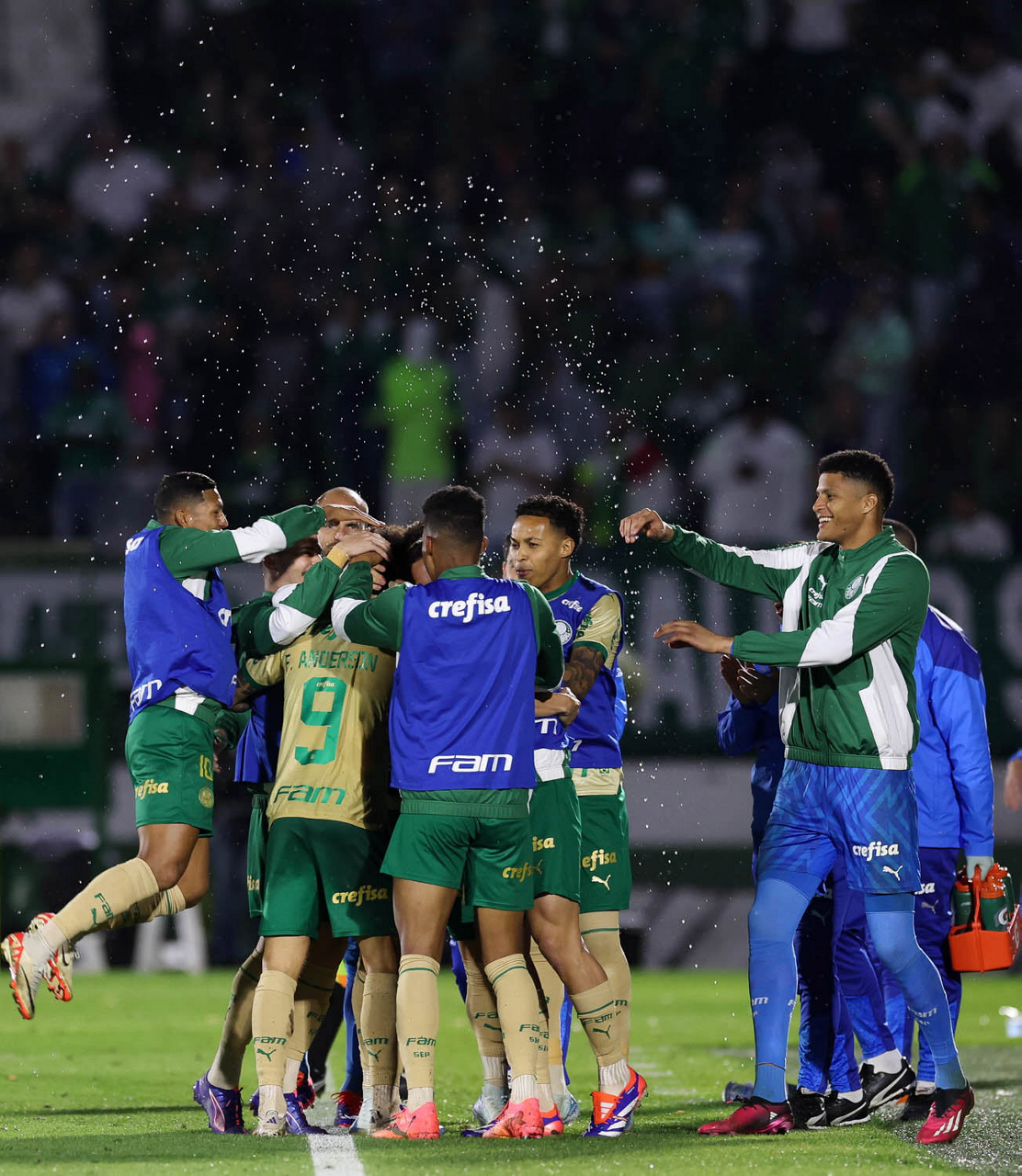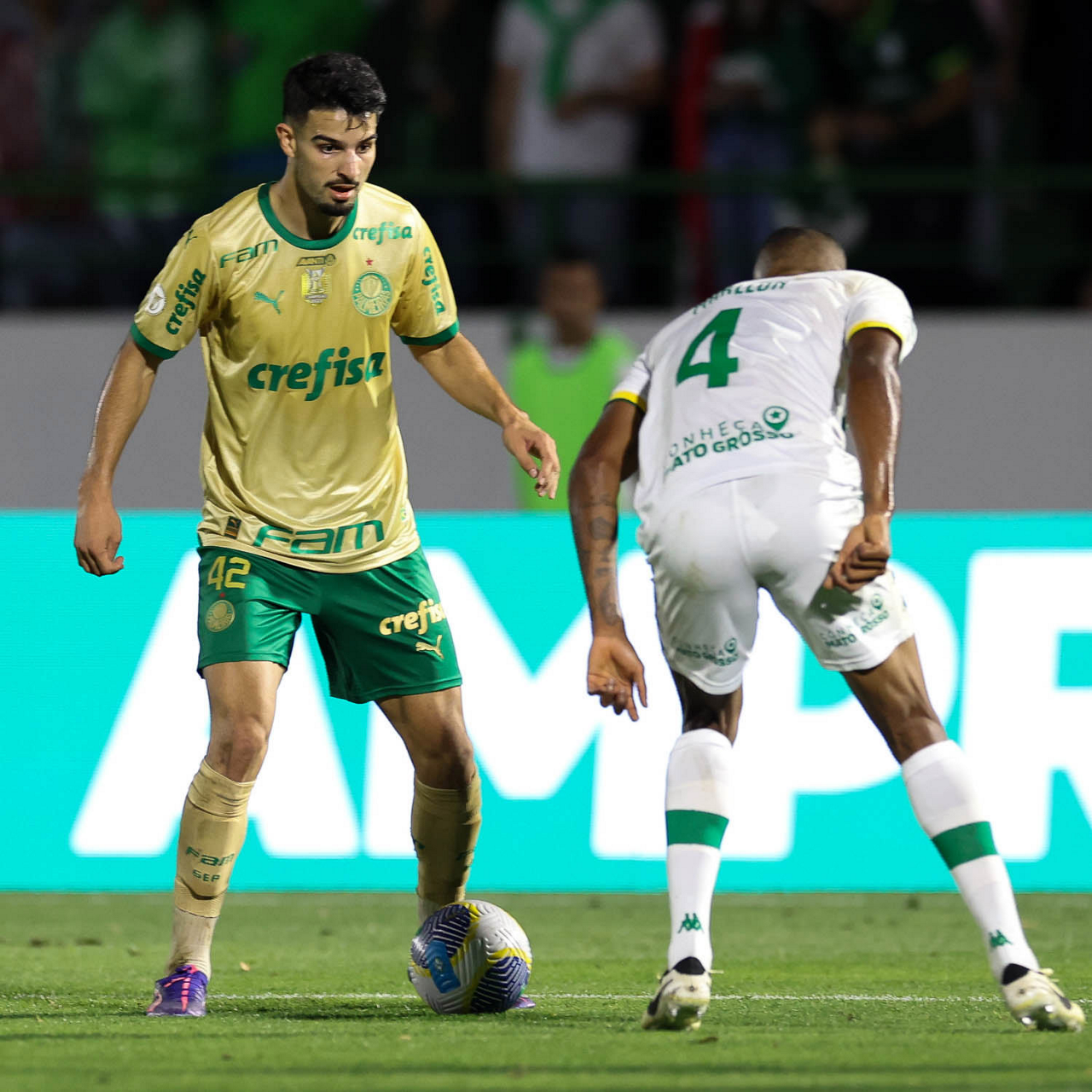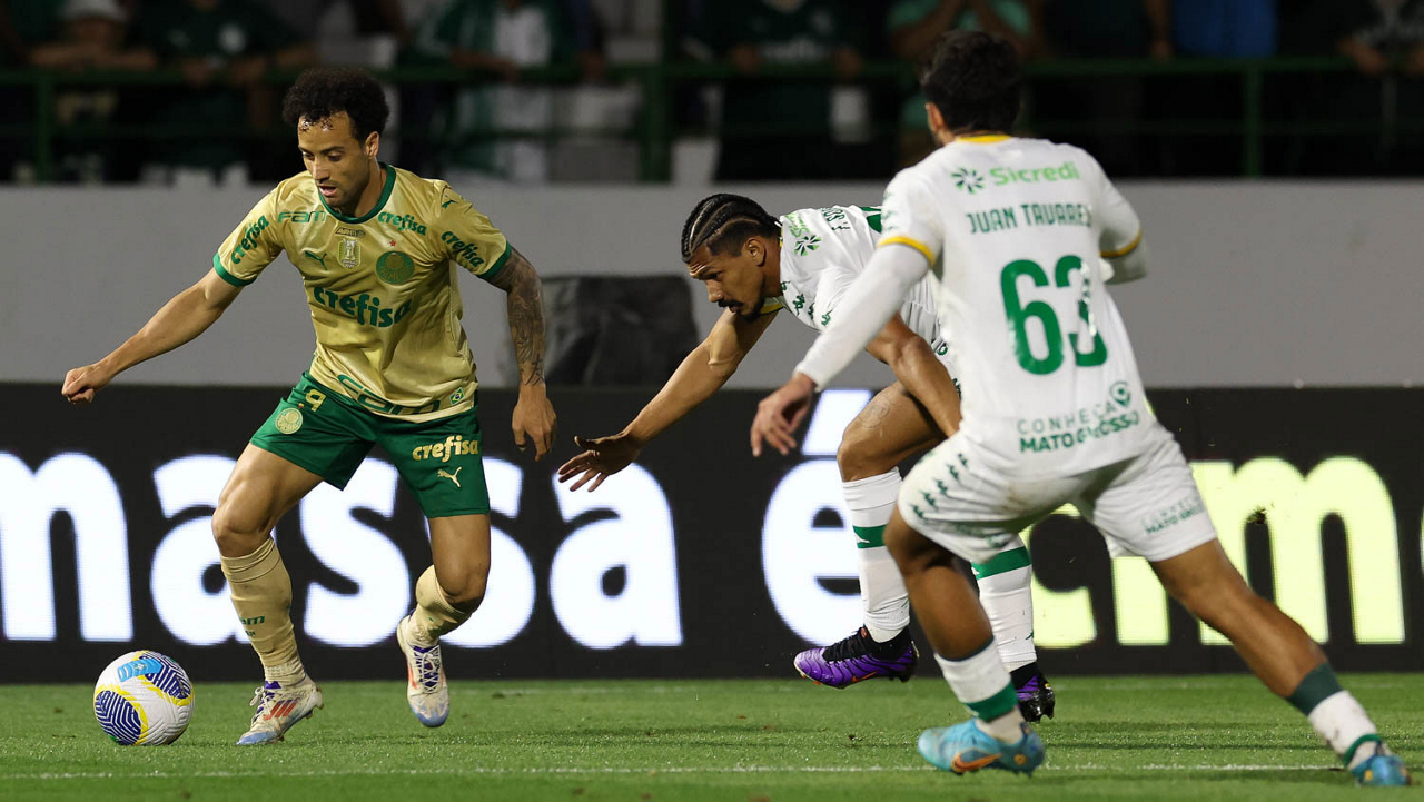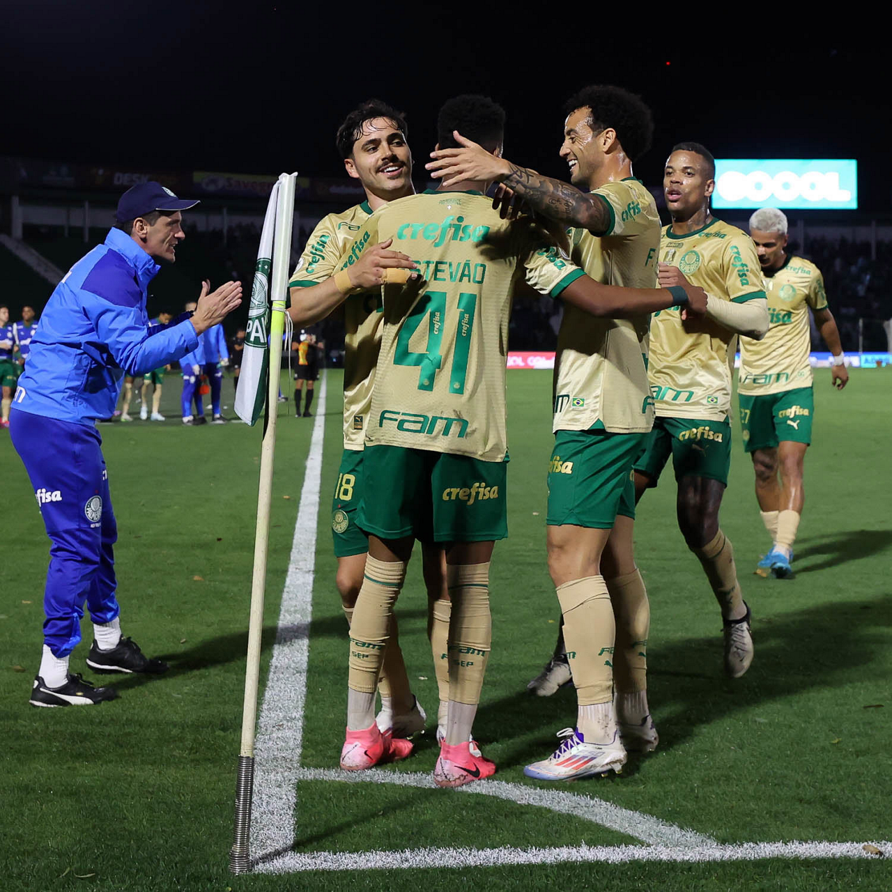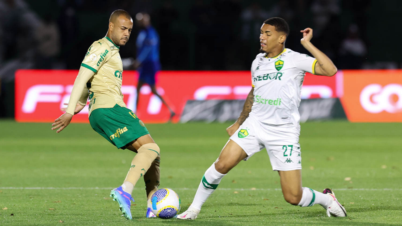 O técnico Abel Ferreira e o jogador Felipe Anderson (D), da SE Palmeiras, em jogo contra a equipe do Cuiabá EC, durante partida válida pela vigésima quarta rodada, do Campeonato Brasileiro, Série A, no Estádio Brinco de Ouro. (Foto: Cesar Greco/Palmeiras/by Canon)
