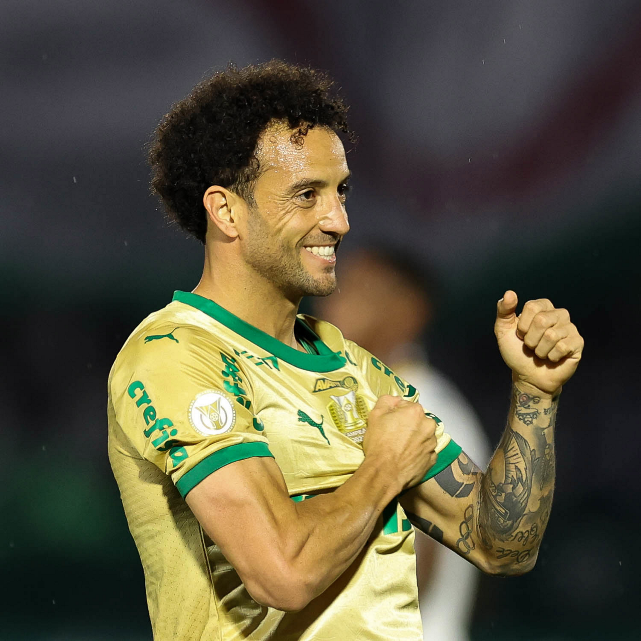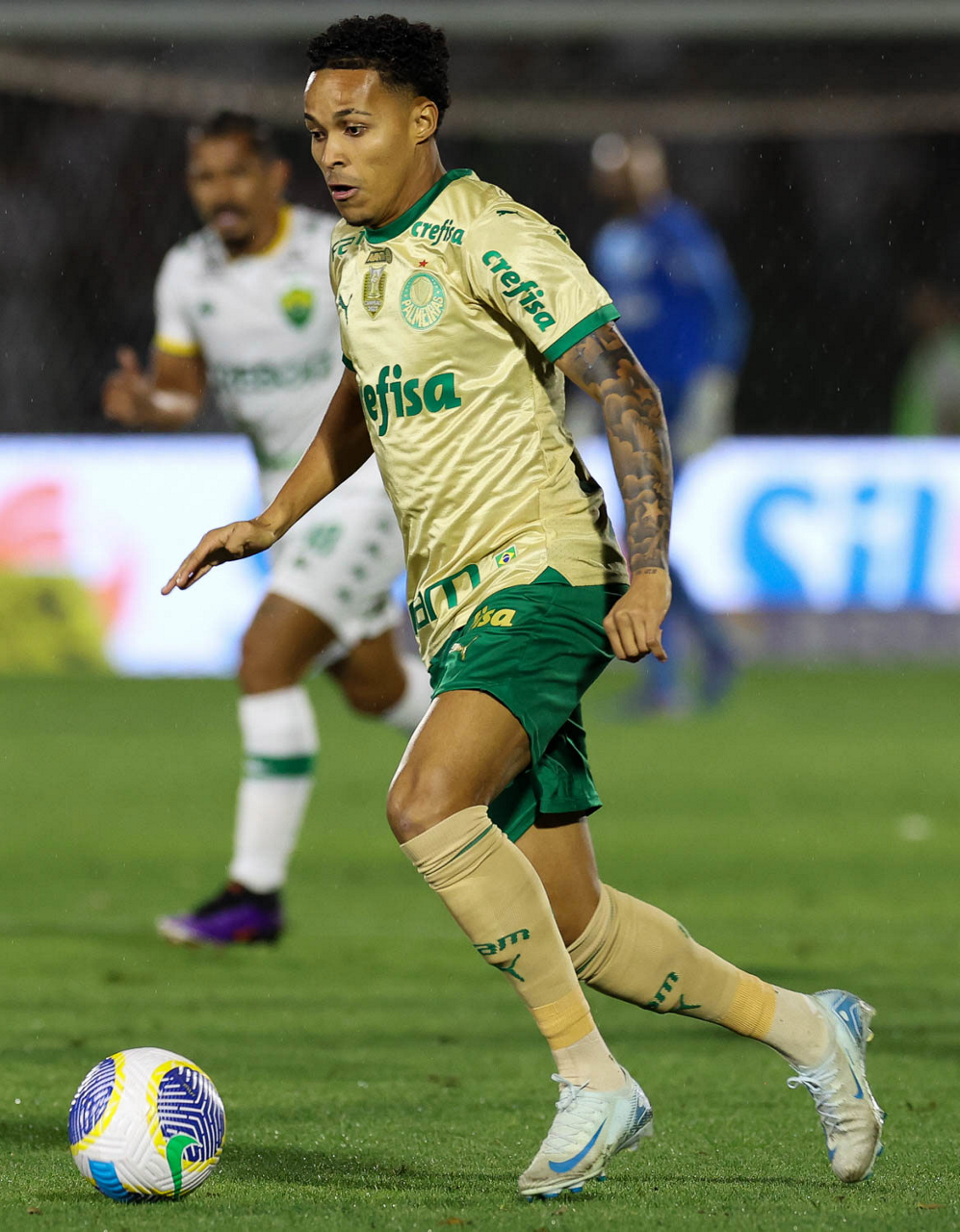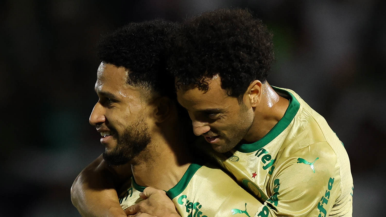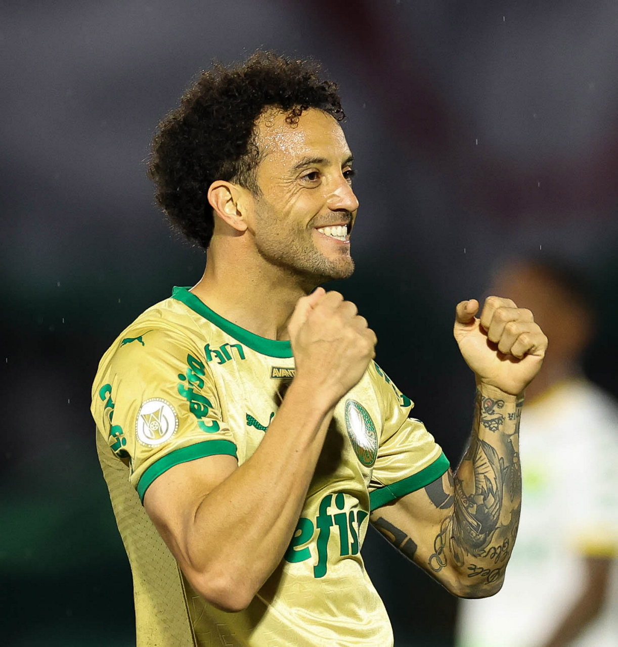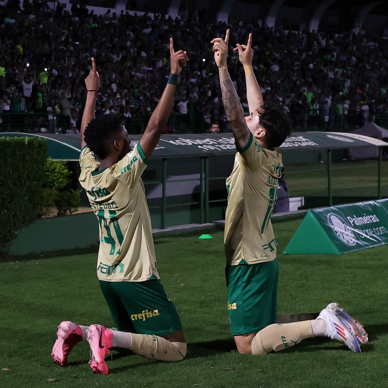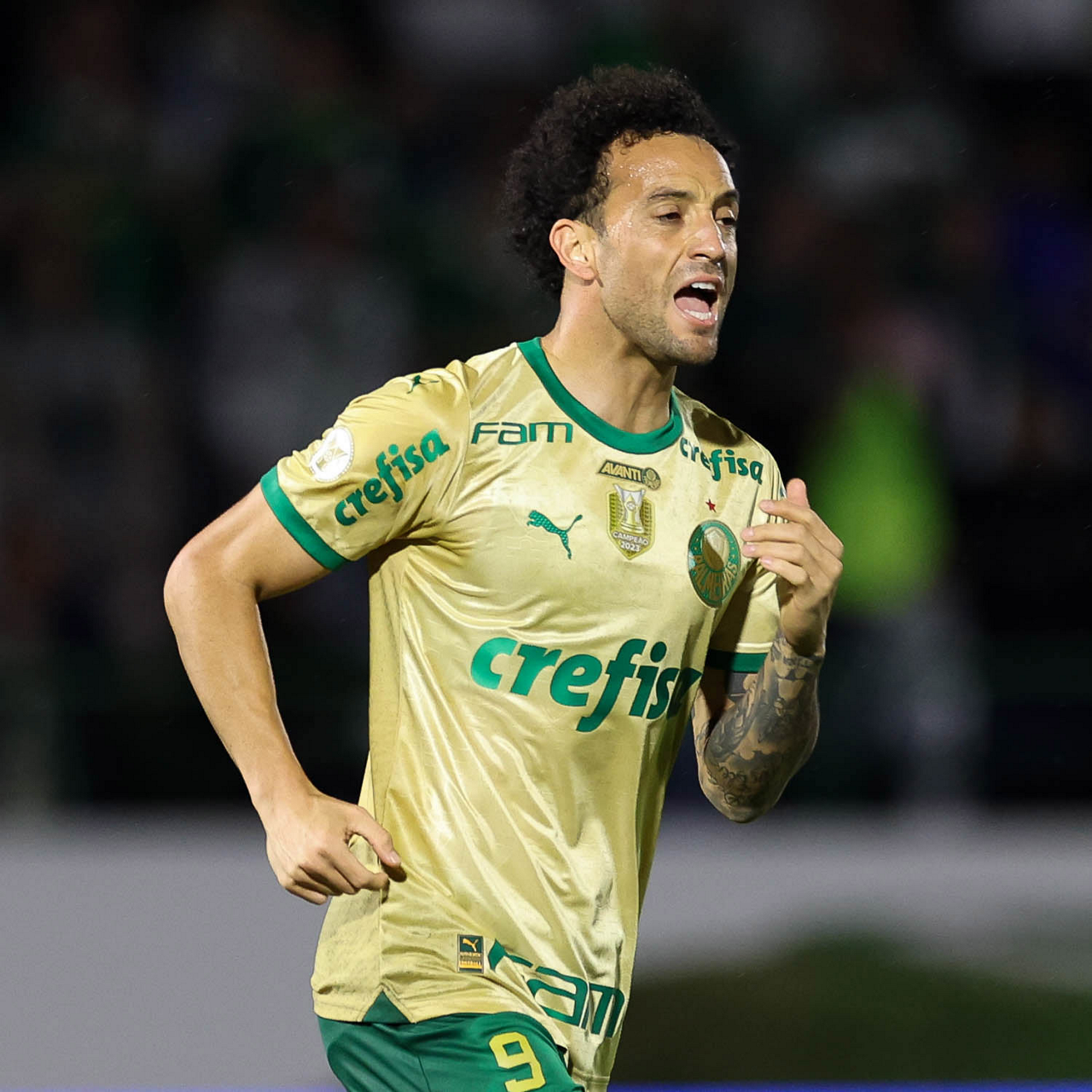 O técnico Abel Ferreira e o jogador Felipe Anderson (D), da SE Palmeiras, em jogo contra a equipe do Cuiabá EC, durante partida válida pela vigésima quarta rodada, do Campeonato Brasileiro, Série A, no Estádio Brinco de Ouro. (Foto: Cesar Greco/Palmeiras/by Canon)