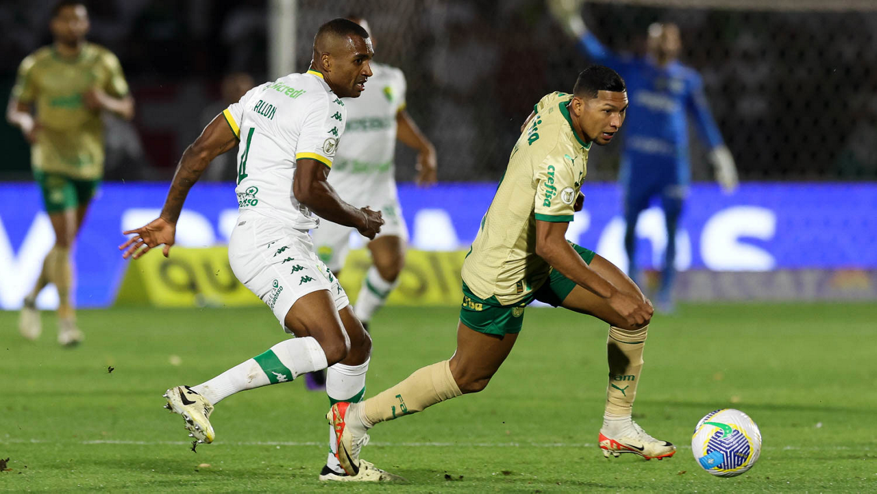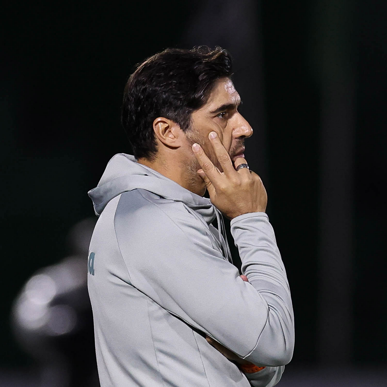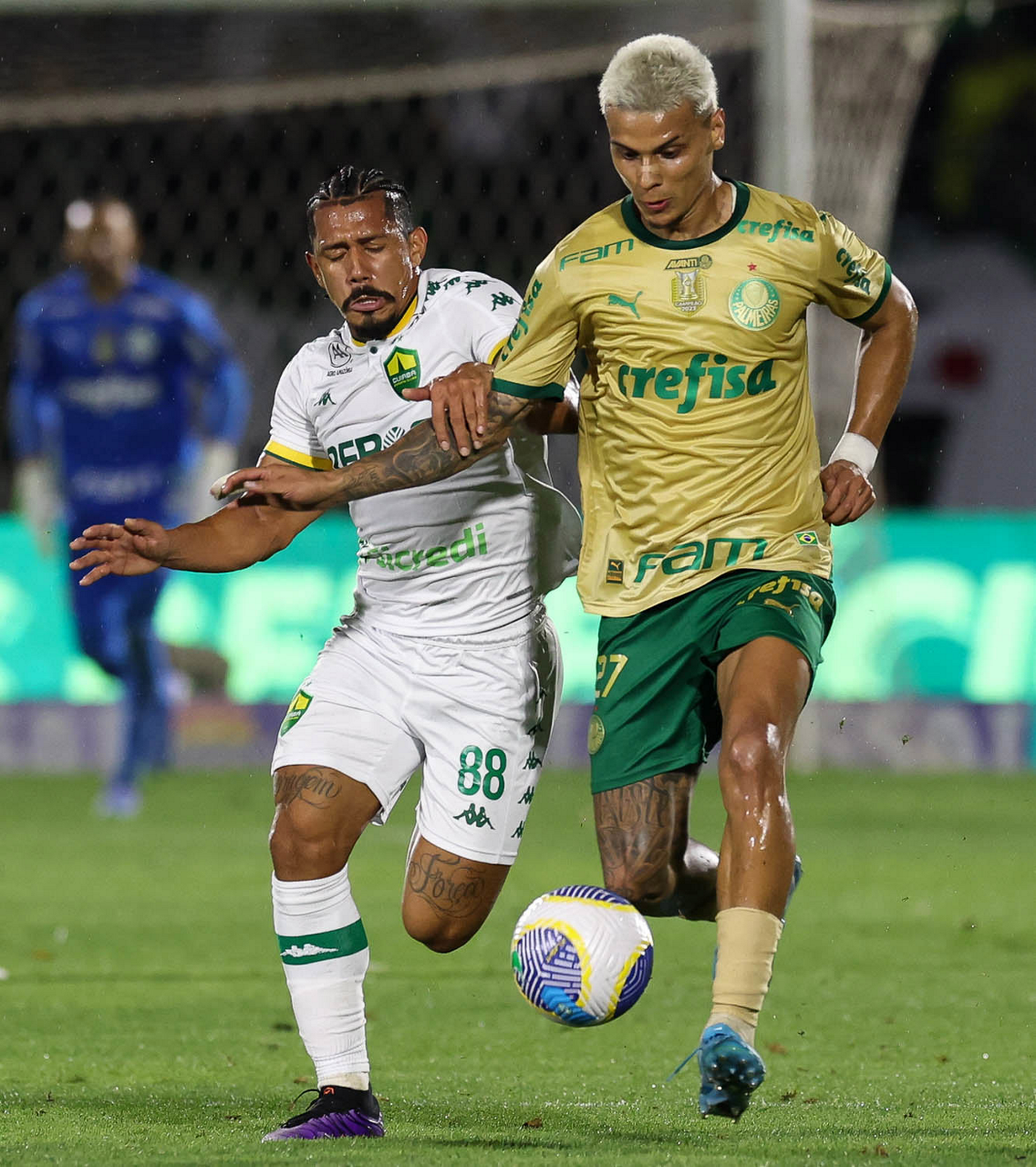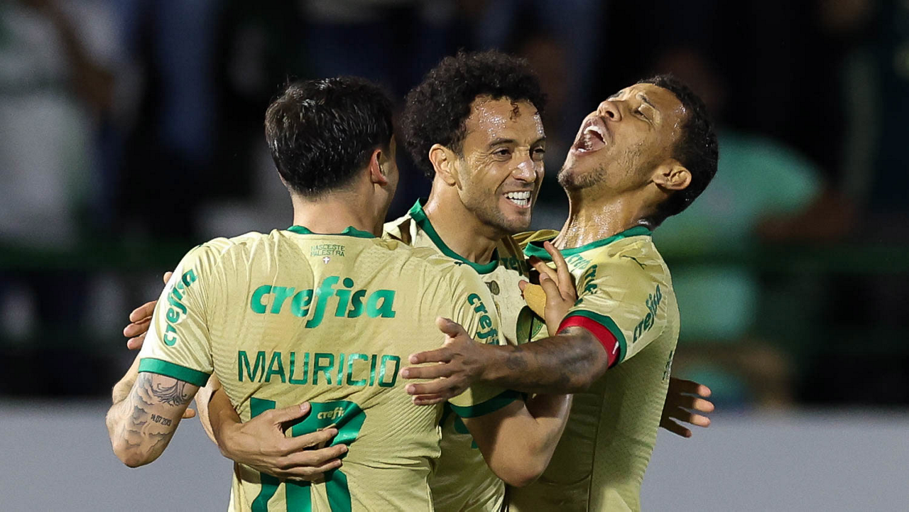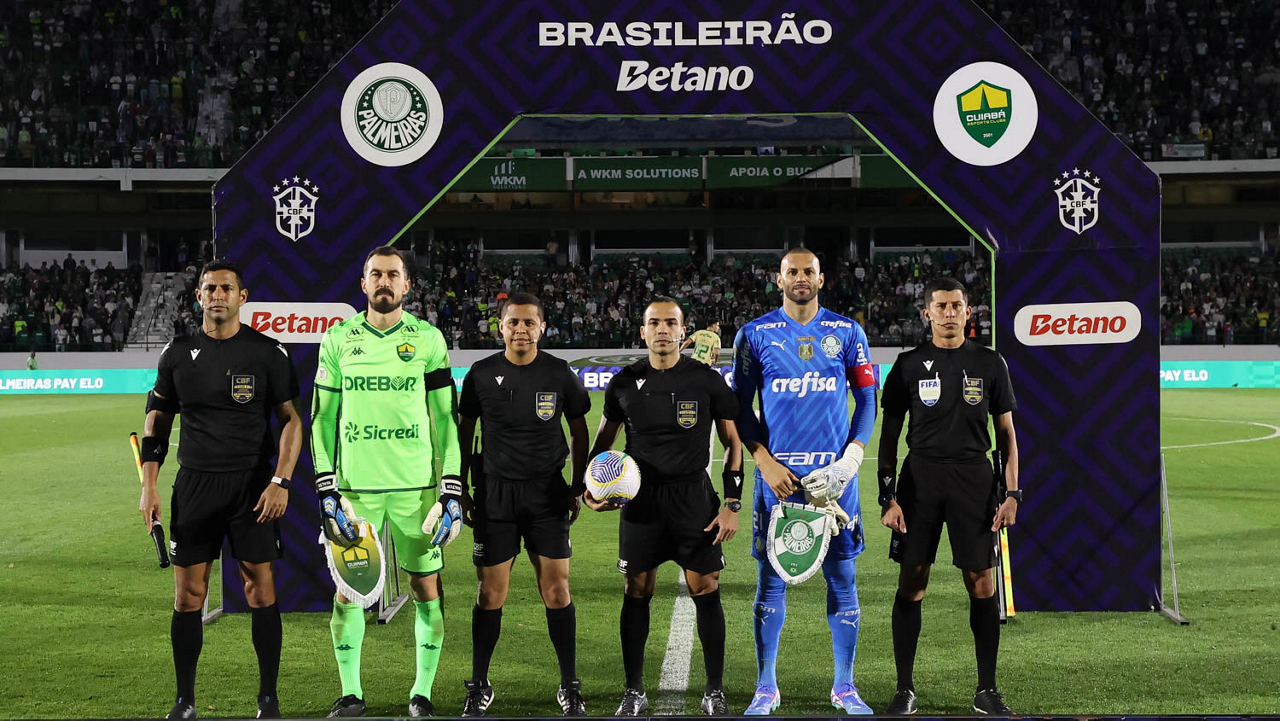 O técnico Abel Ferreira e o jogador Felipe Anderson (D), da SE Palmeiras, em jogo contra a equipe do Cuiabá EC, durante partida válida pela vigésima quarta rodada, do Campeonato Brasileiro, Série A, no Estádio Brinco de Ouro. (Foto: Cesar Greco/Palmeiras/by Canon)