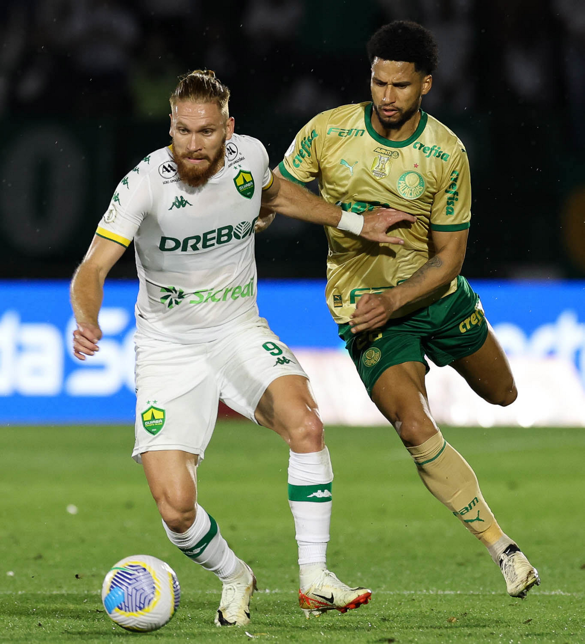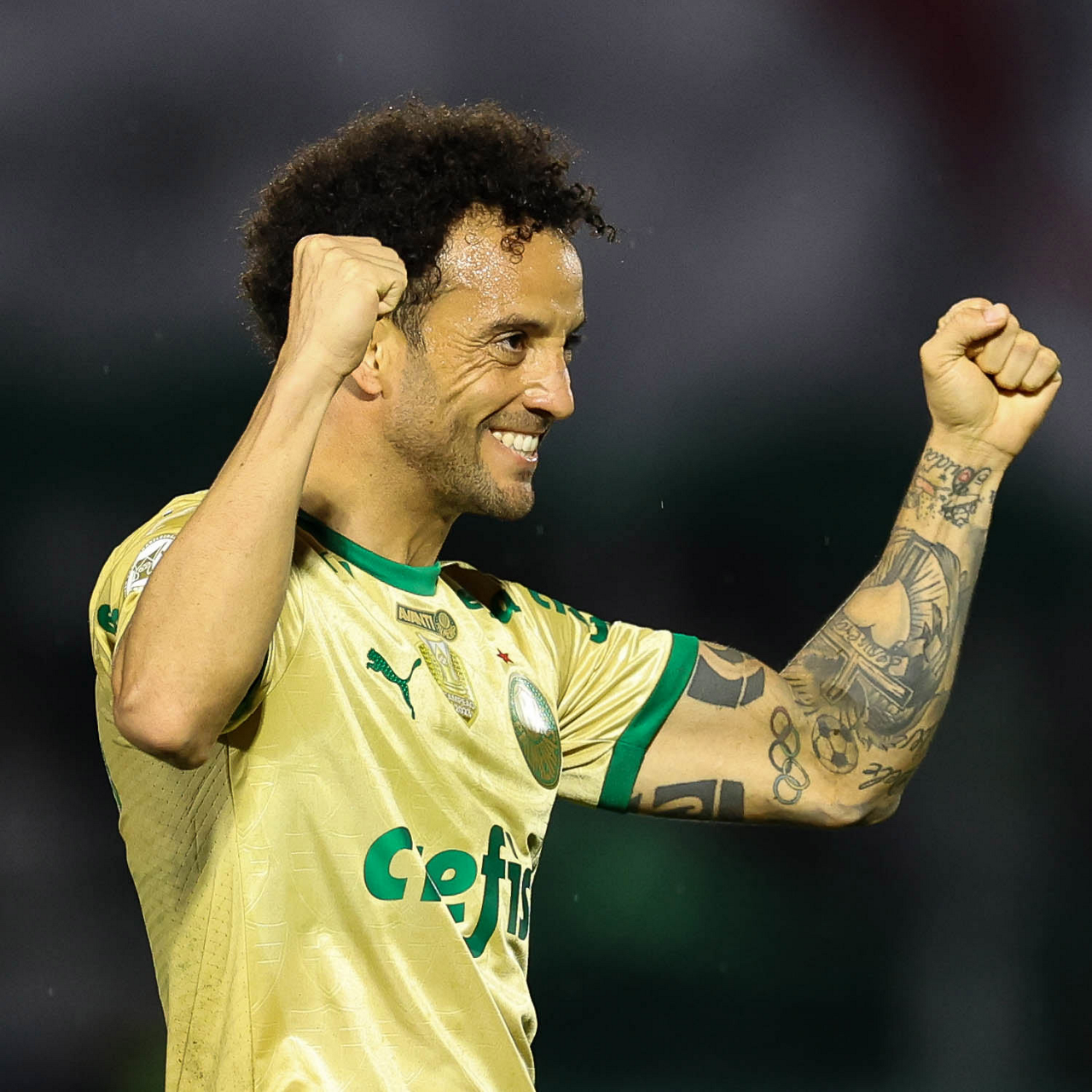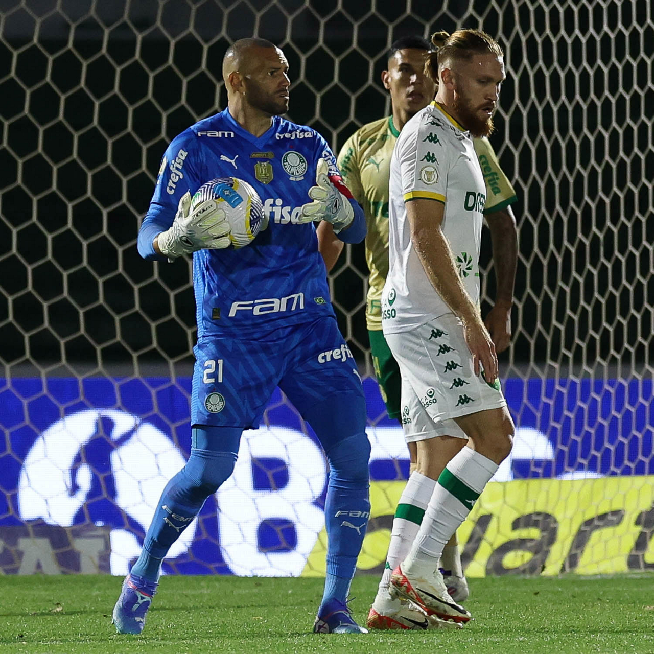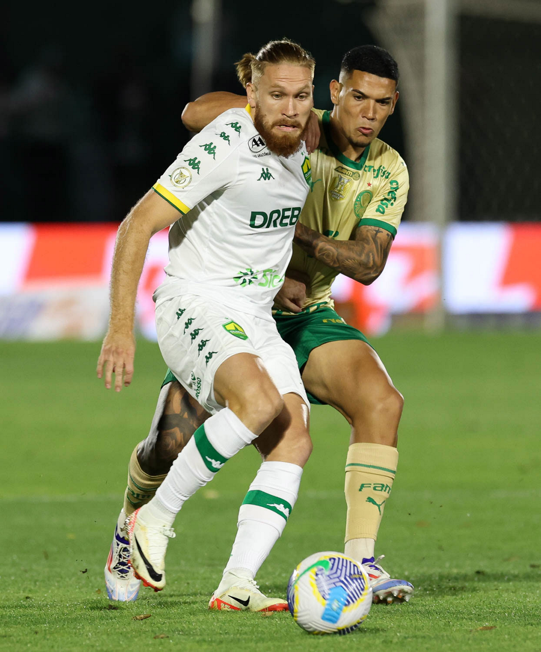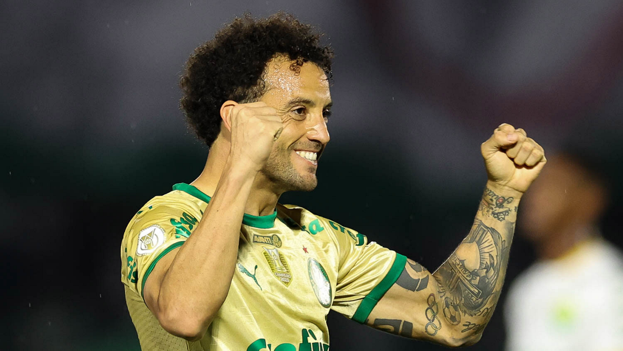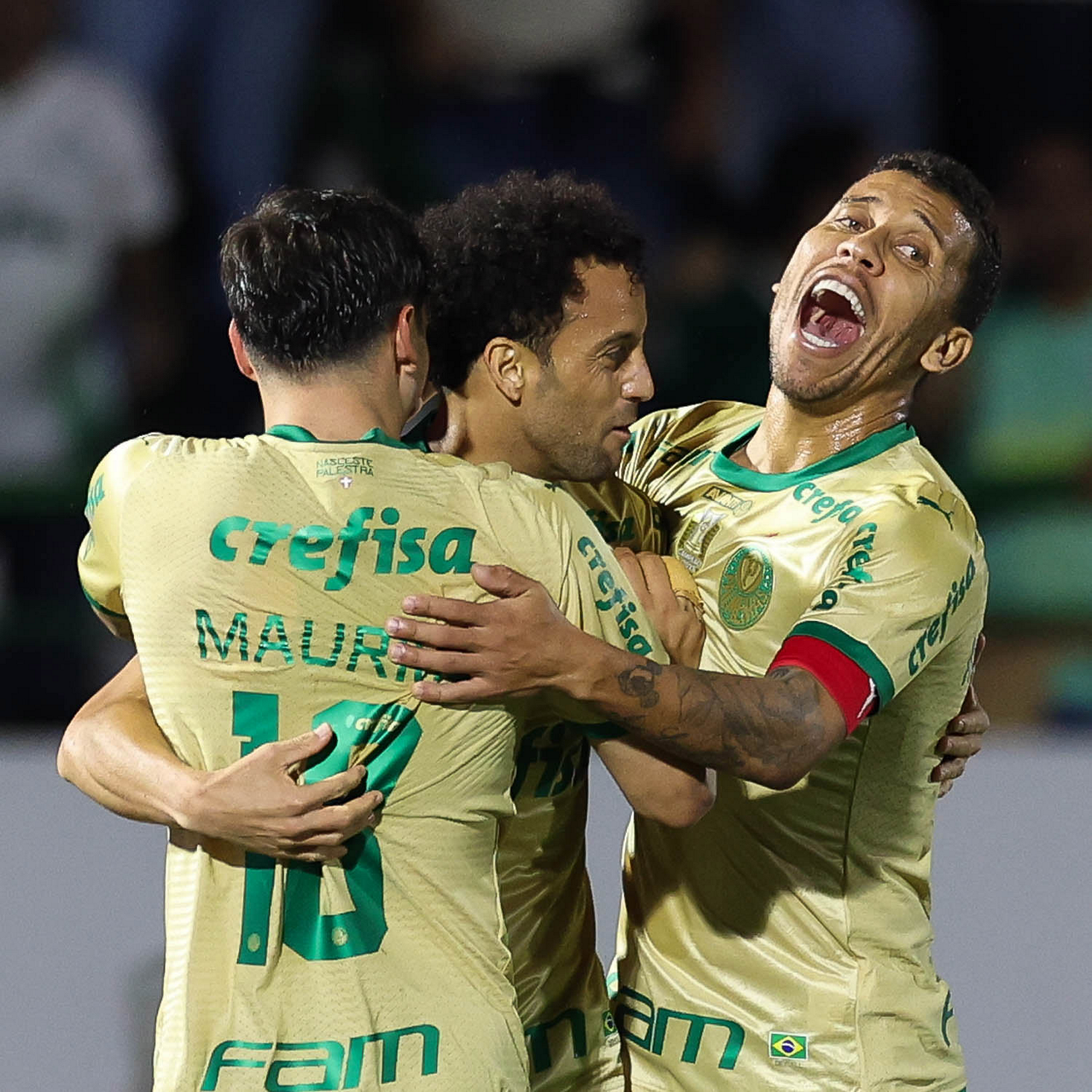 O técnico Abel Ferreira e o jogador Felipe Anderson (D), da SE Palmeiras, em jogo contra a equipe do Cuiabá EC, durante partida válida pela vigésima quarta rodada, do Campeonato Brasileiro, Série A, no Estádio Brinco de Ouro. (Foto: Cesar Greco/Palmeiras/by Canon)