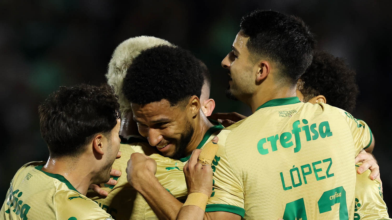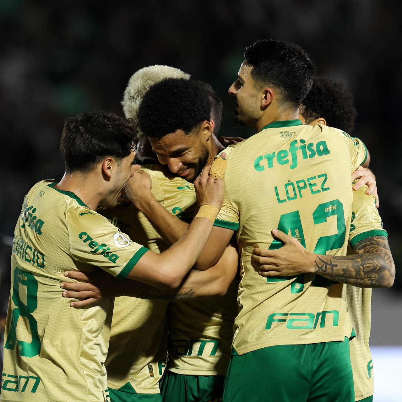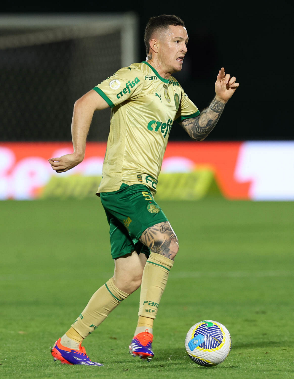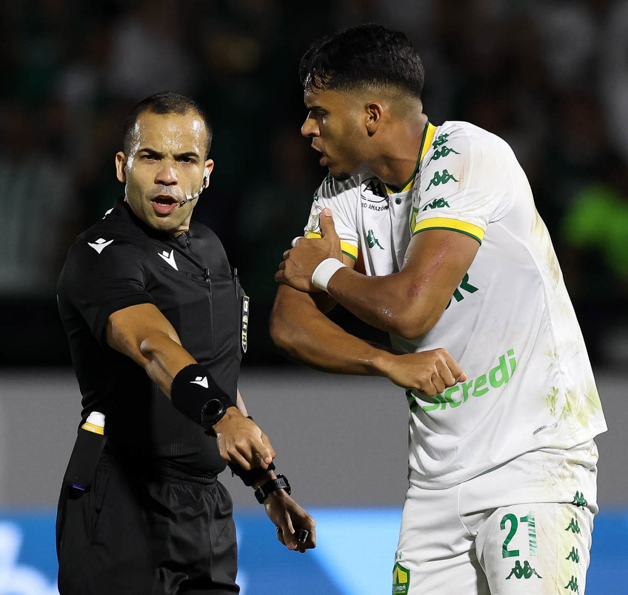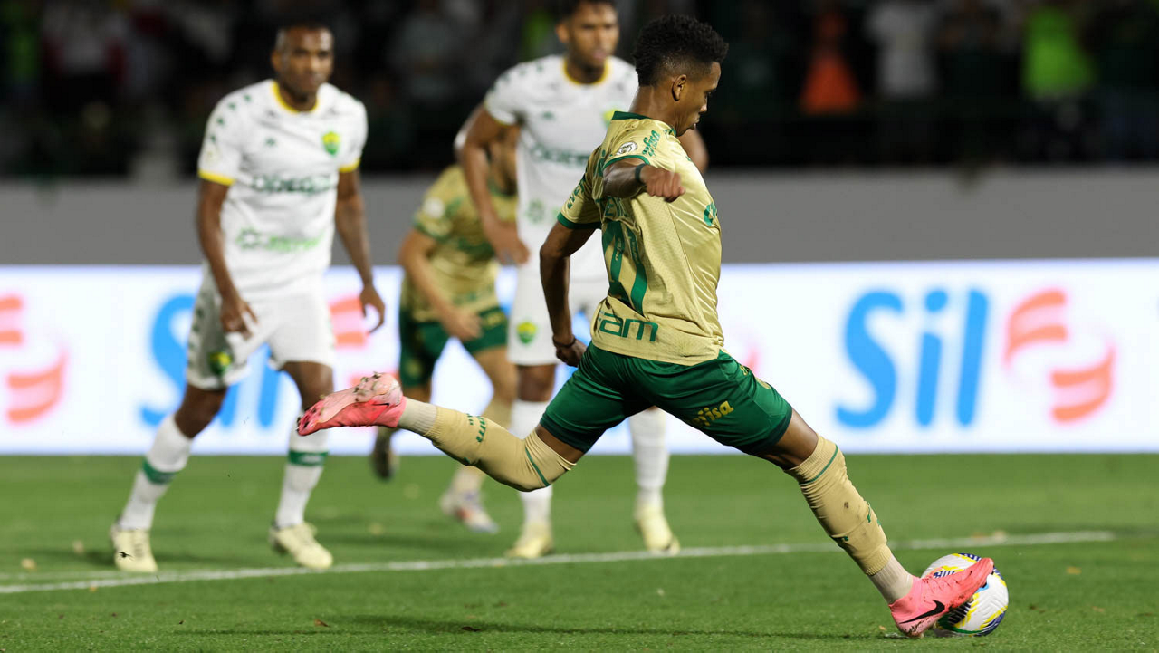 O técnico Abel Ferreira e o jogador Felipe Anderson (D), da SE Palmeiras, em jogo contra a equipe do Cuiabá EC, durante partida válida pela vigésima quarta rodada, do Campeonato Brasileiro, Série A, no Estádio Brinco de Ouro. (Foto: Cesar Greco/Palmeiras/by Canon)