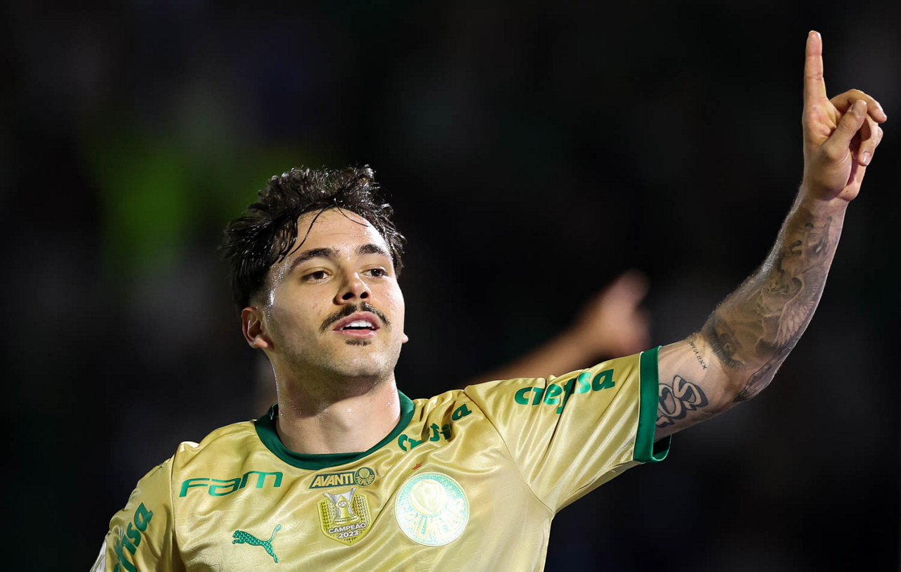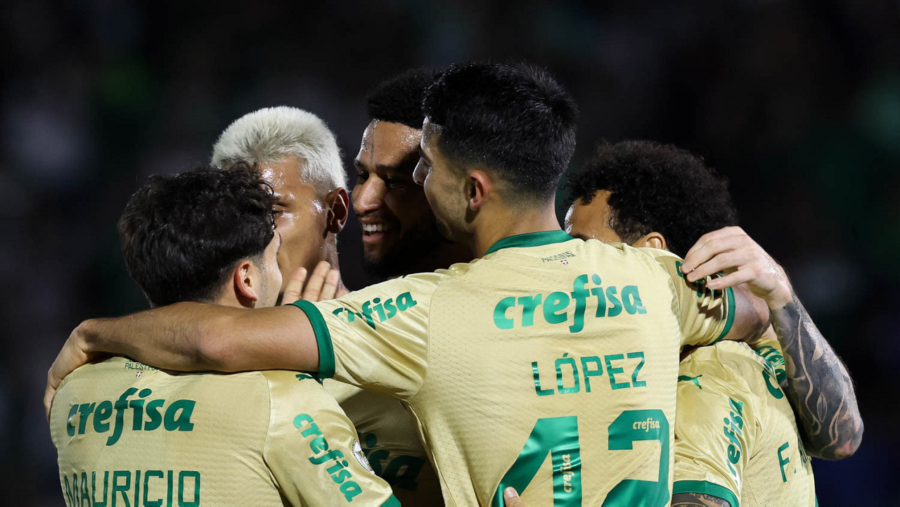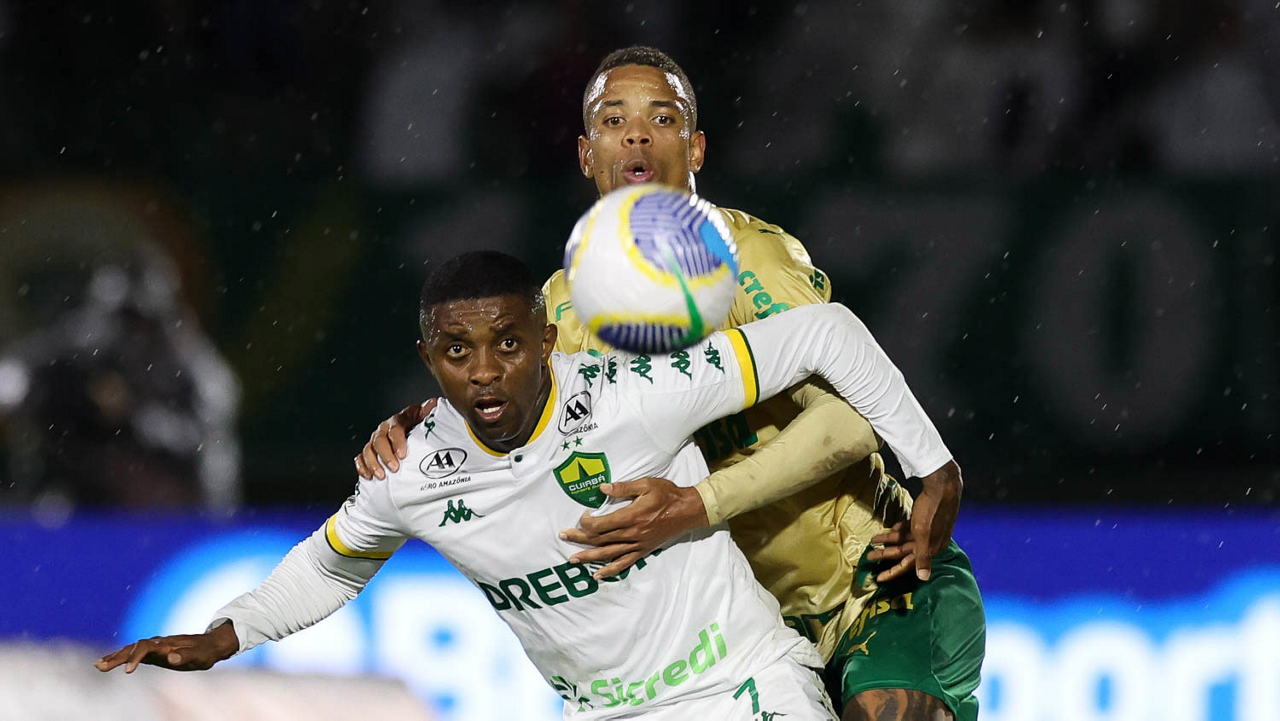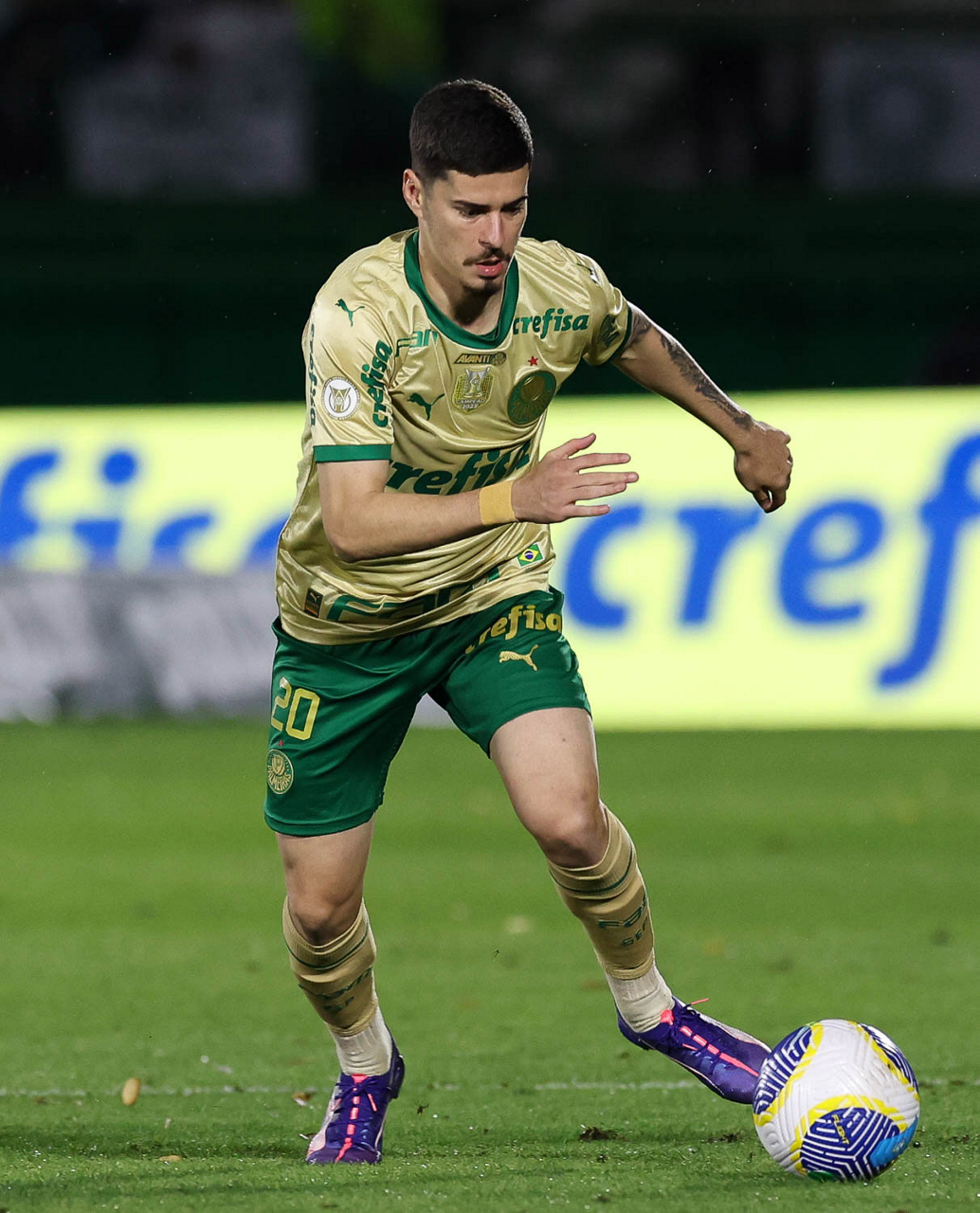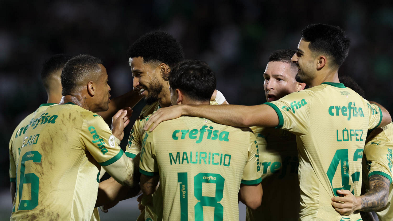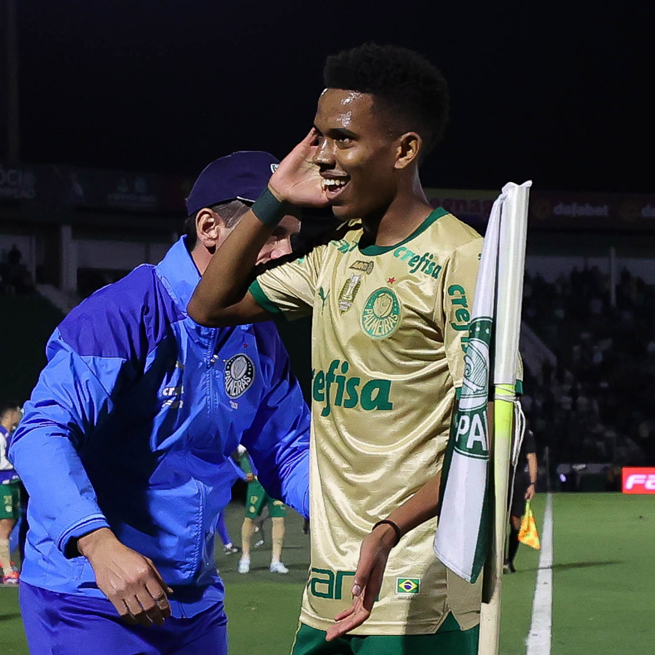 O técnico Abel Ferreira e o jogador Felipe Anderson (D), da SE Palmeiras, em jogo contra a equipe do Cuiabá EC, durante partida válida pela vigésima quarta rodada, do Campeonato Brasileiro, Série A, no Estádio Brinco de Ouro. (Foto: Cesar Greco/Palmeiras/by Canon)