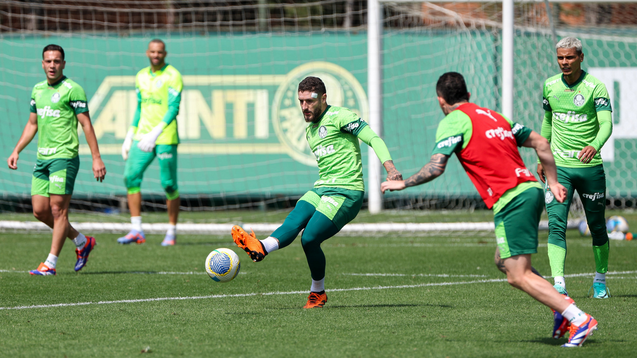 Os atletas da SE Palmeiras, durante treinamento na Academia de Futebol, em São Paulo-SP. (Foto: Fabio Menotti/Palmeiras/by Canon)