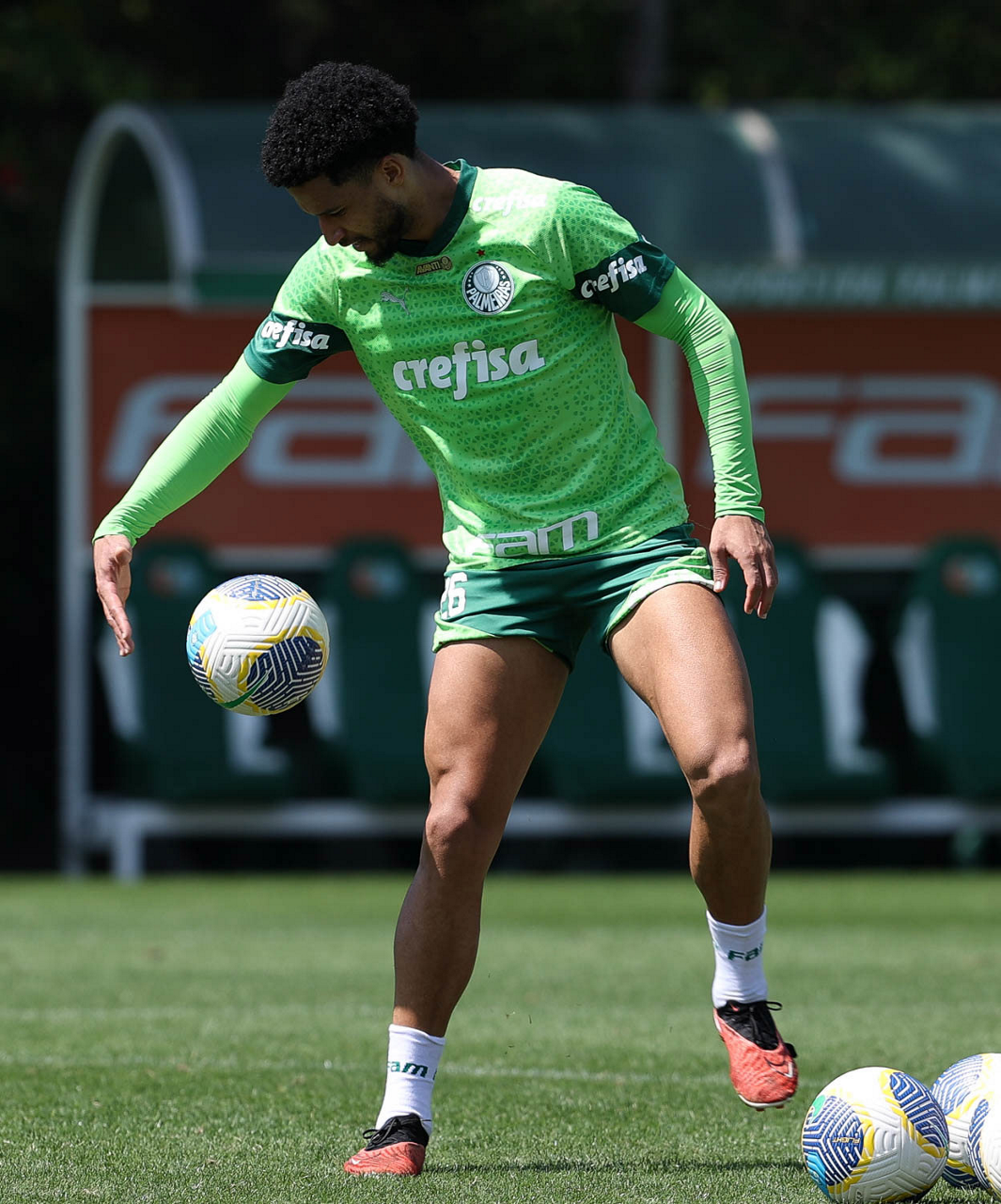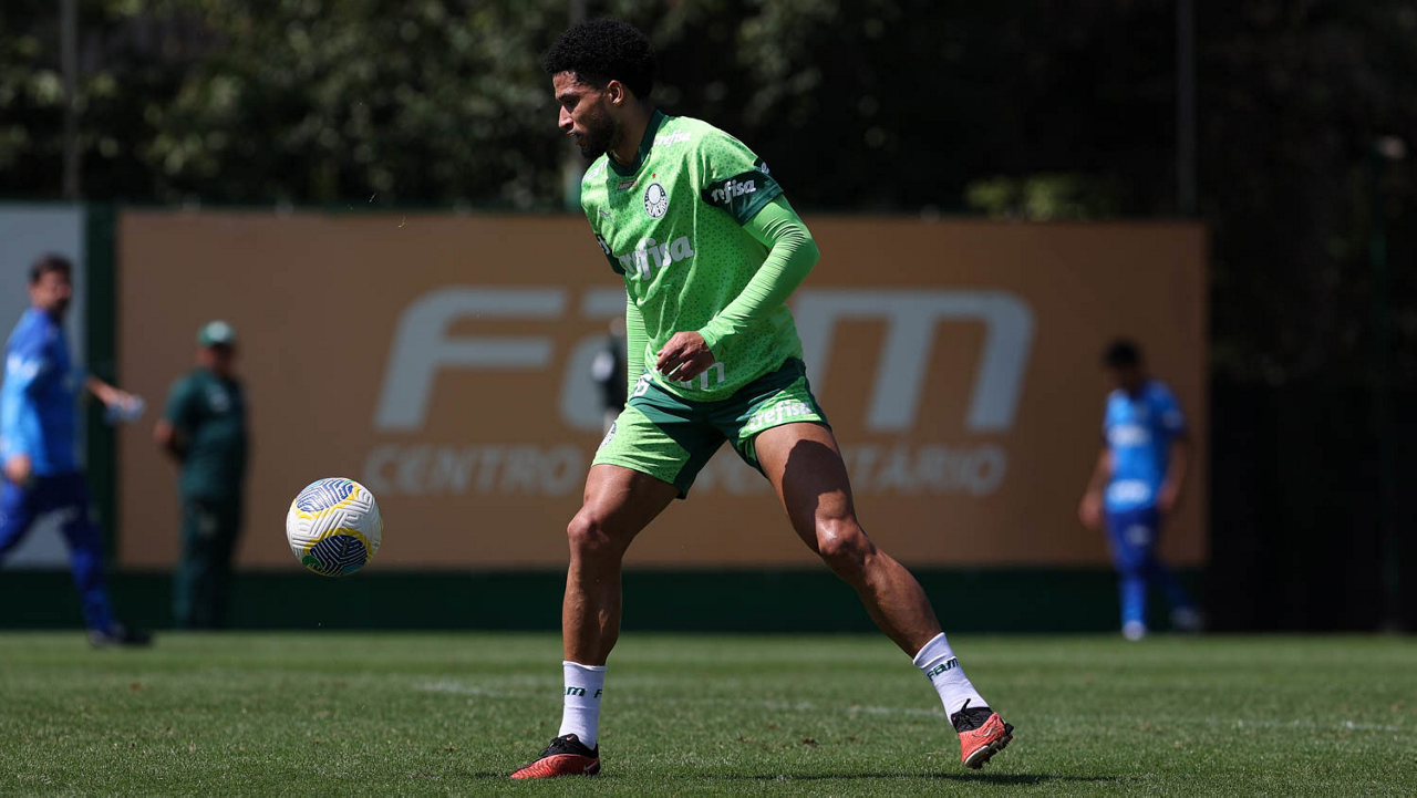 O jogador Fabinho, da SE Palmeiras, durante treinamento, na Academia de Futebol. (Foto: Cesar Greco/Palmeiras/by Canon)