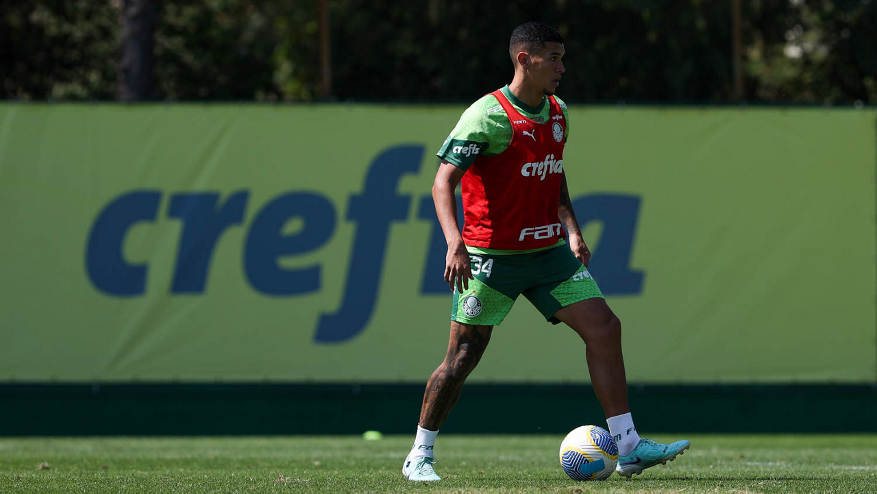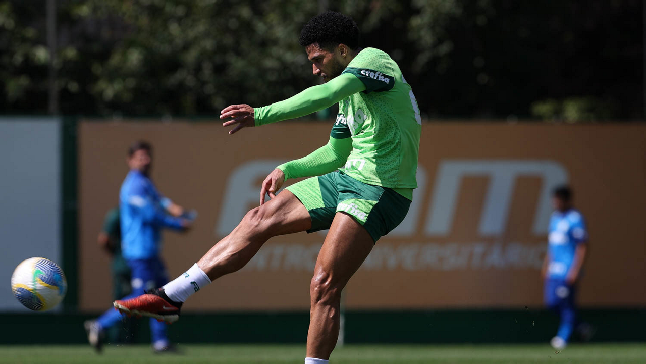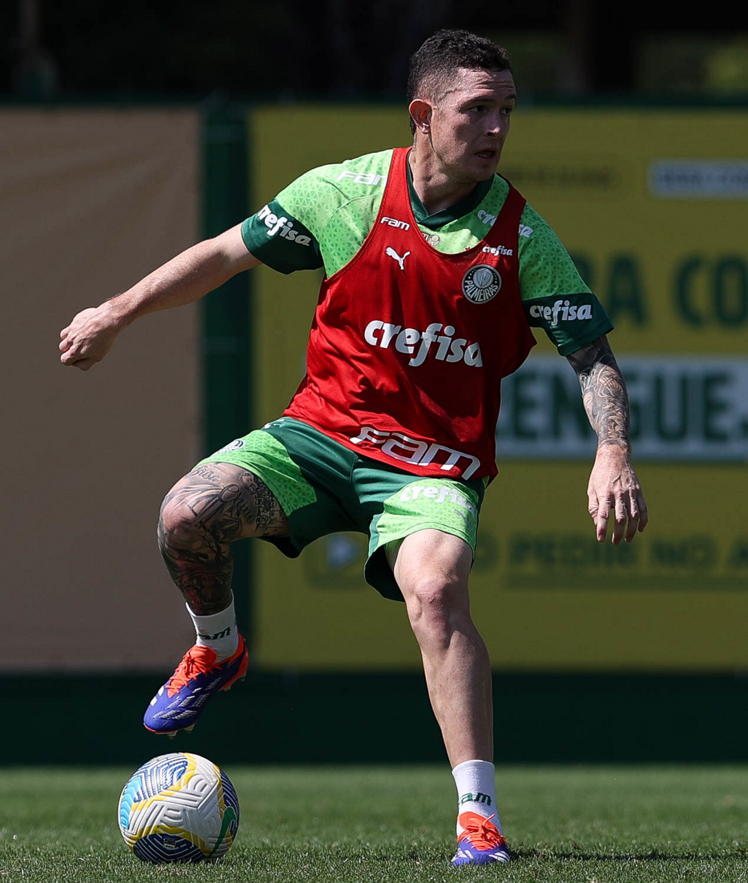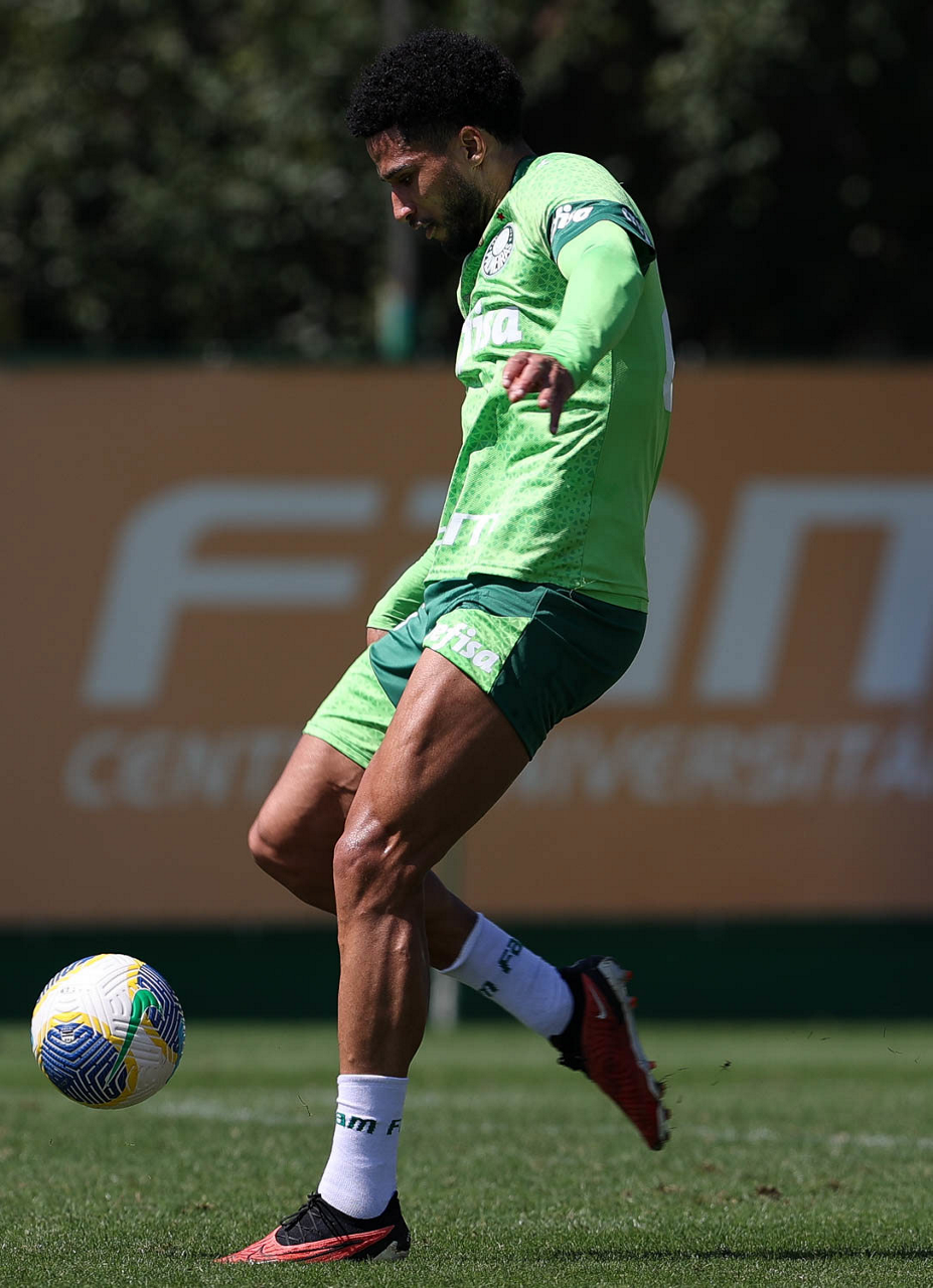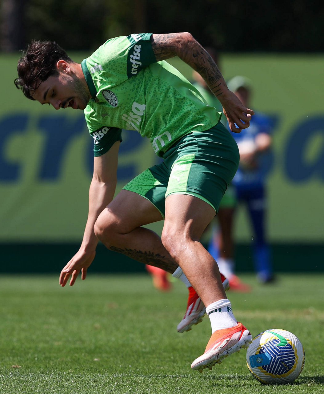 O jogador Richard Ríos, da SE Palmeiras, durante treinamento, na Academia de Futebol. (Foto: Cesar Greco/Palmeiras/by Canon)