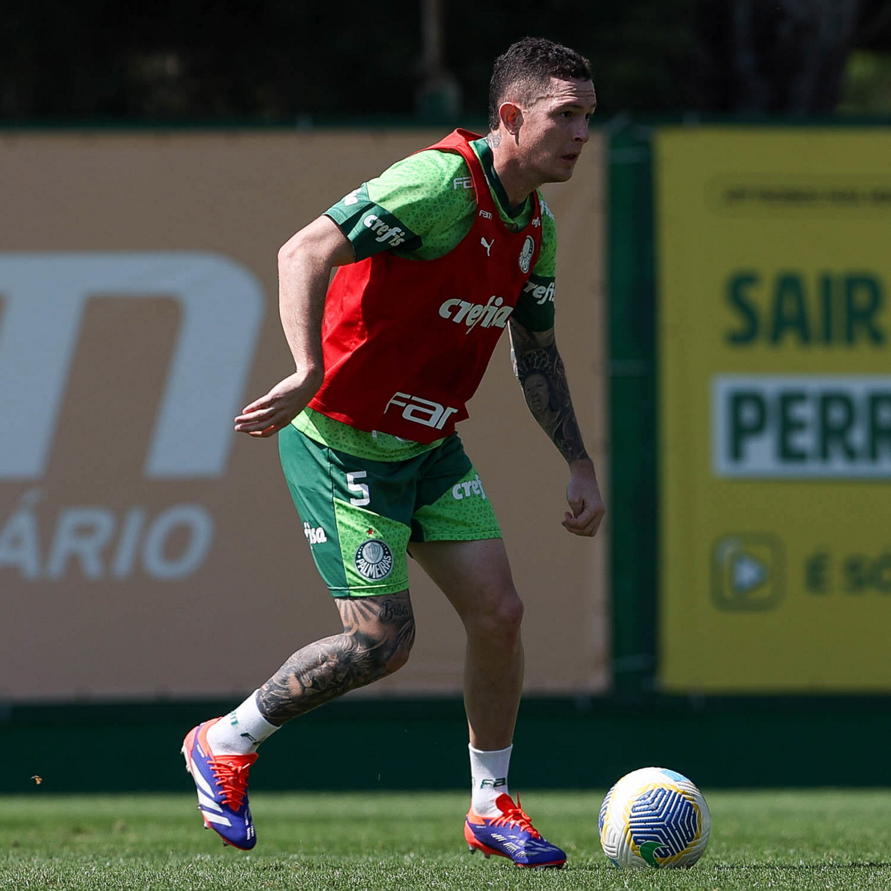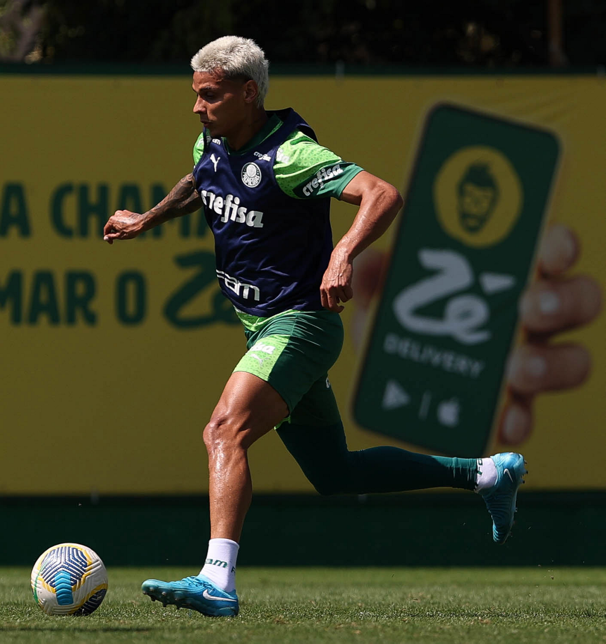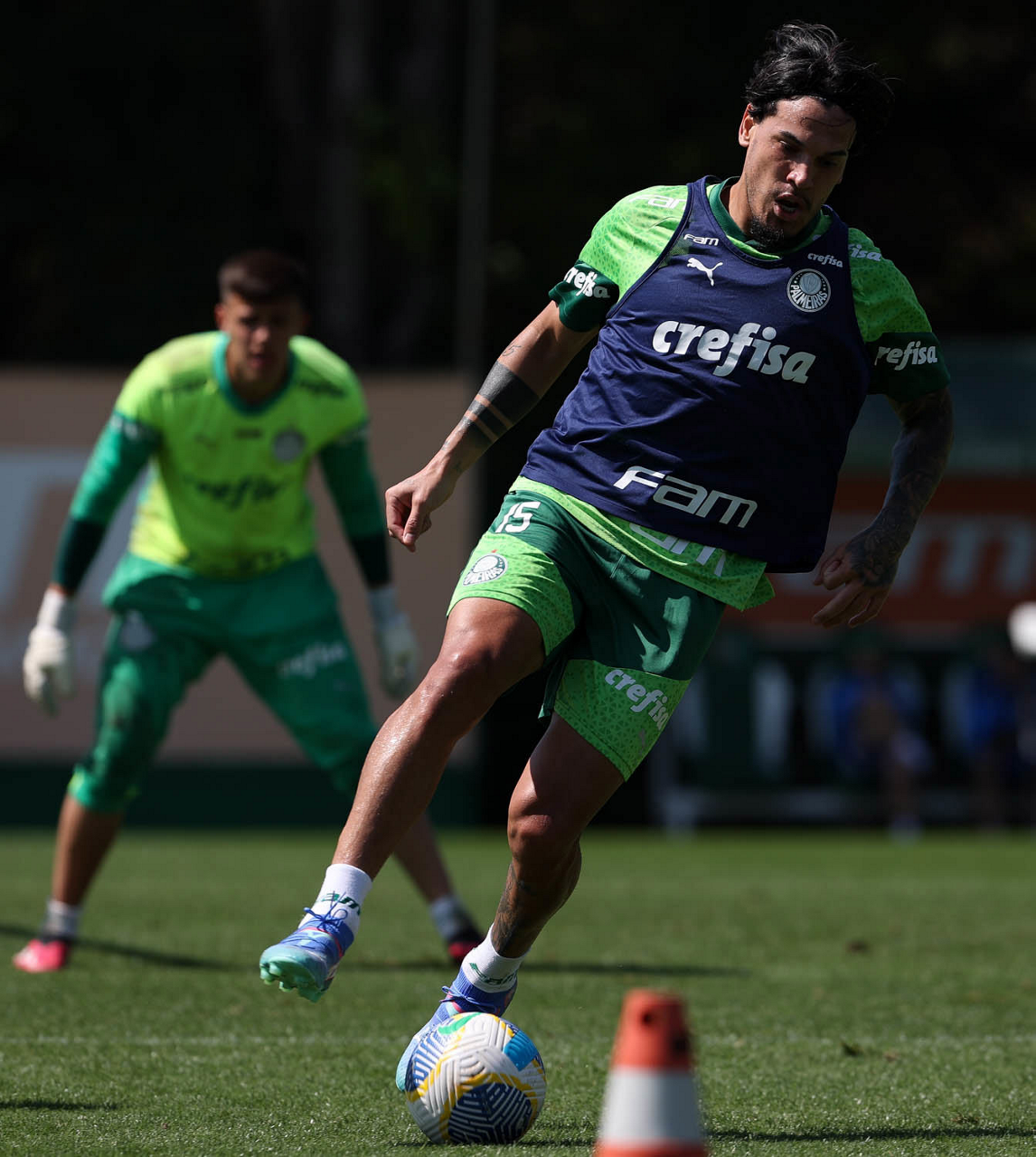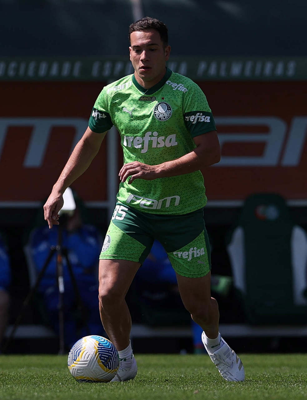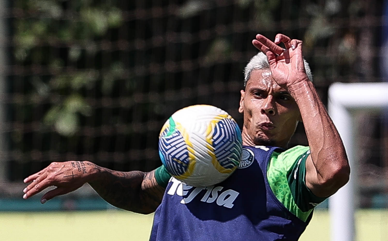 O jogador Richard Ríos, da SE Palmeiras, durante treinamento, na Academia de Futebol. (Foto: Cesar Greco/Palmeiras/by Canon)