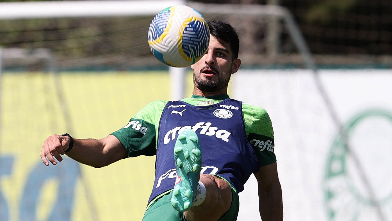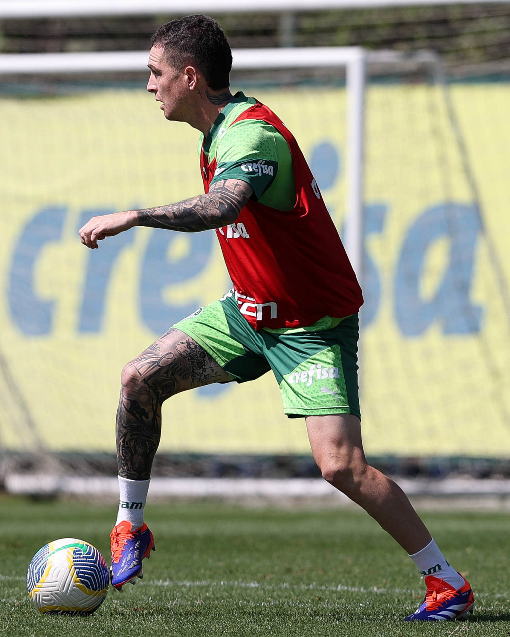 O jogador Agustín Giay, da SE Palmeiras, durante treinamento, na Academia de Futebol. (Foto: Cesar Greco/Palmeiras/by Canon)