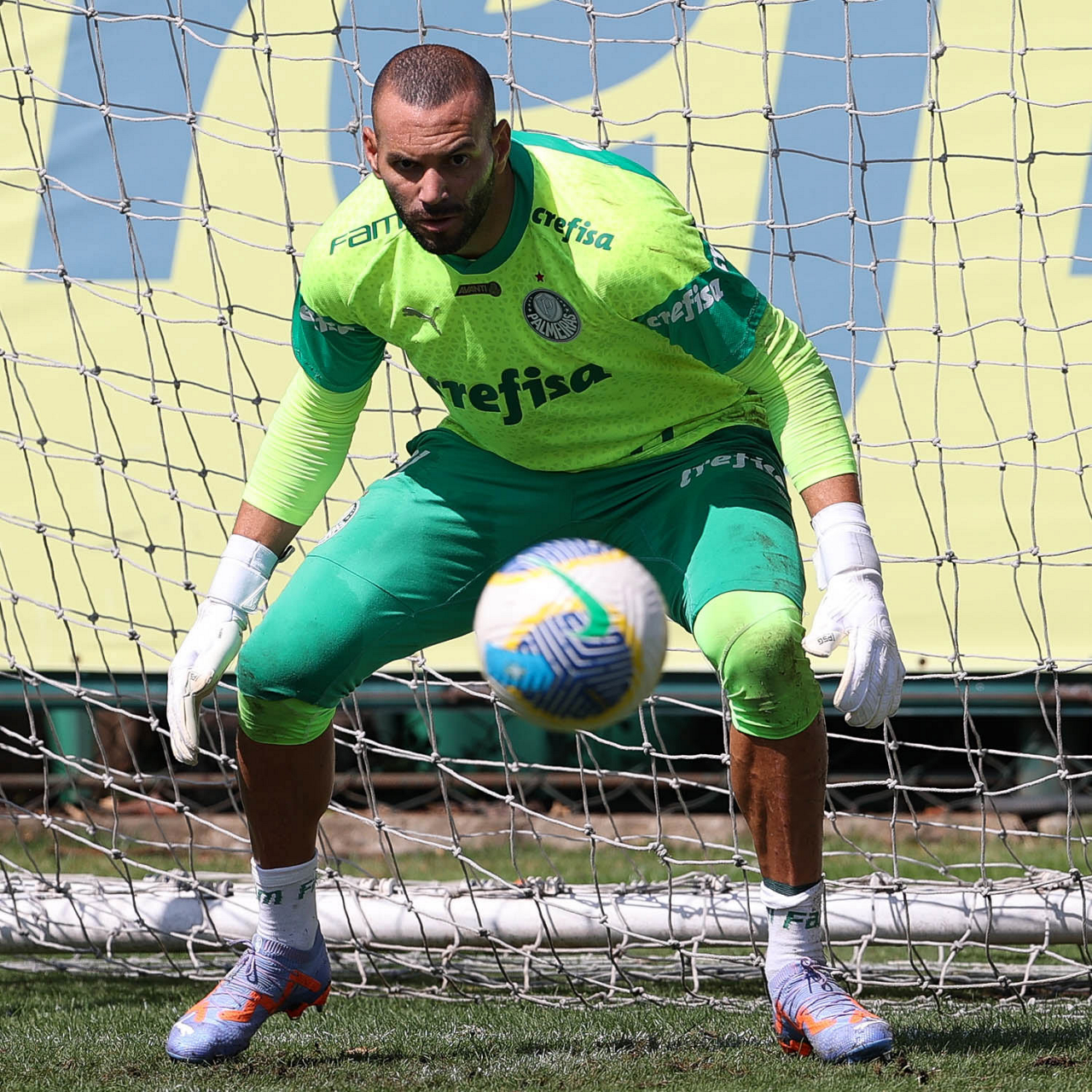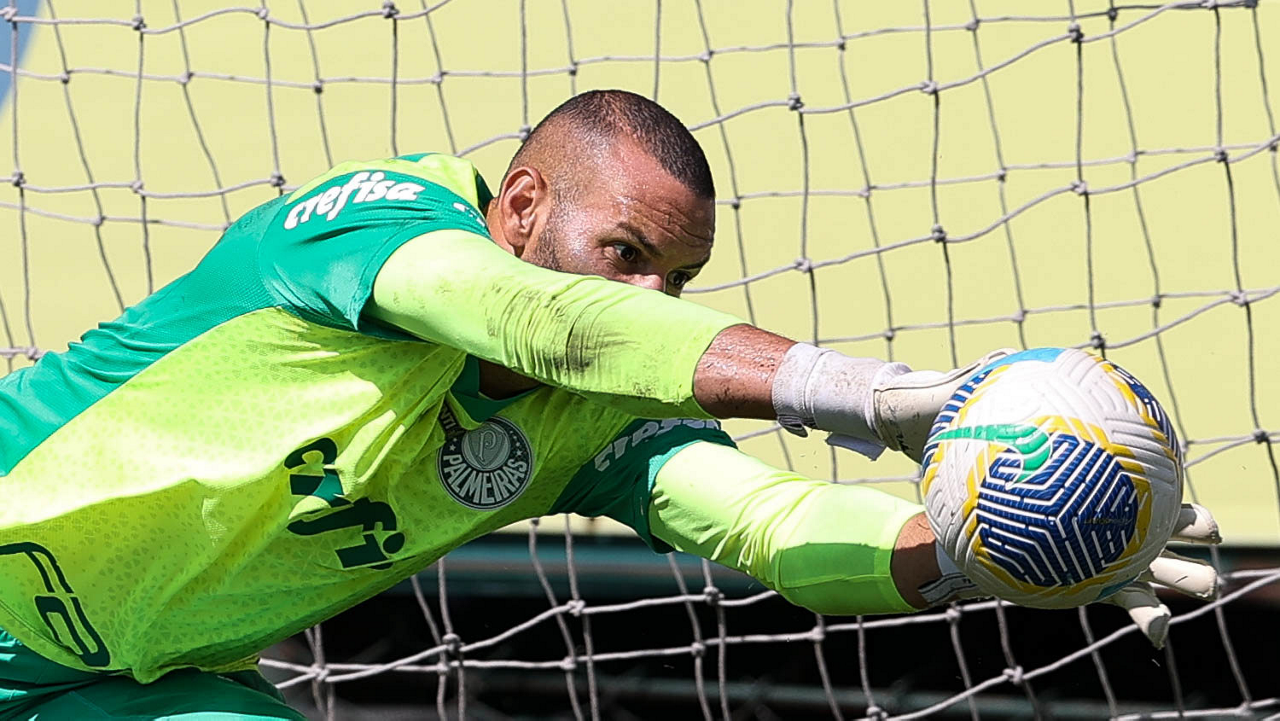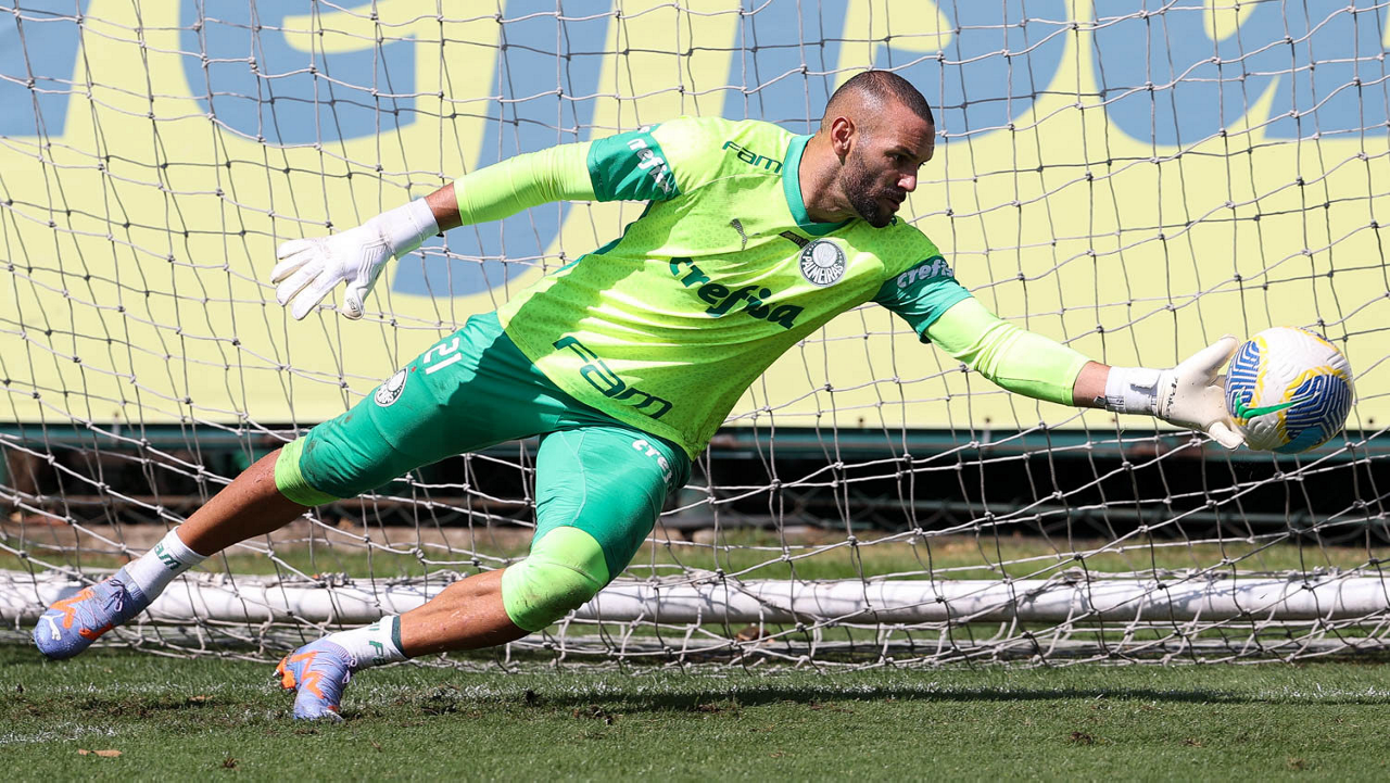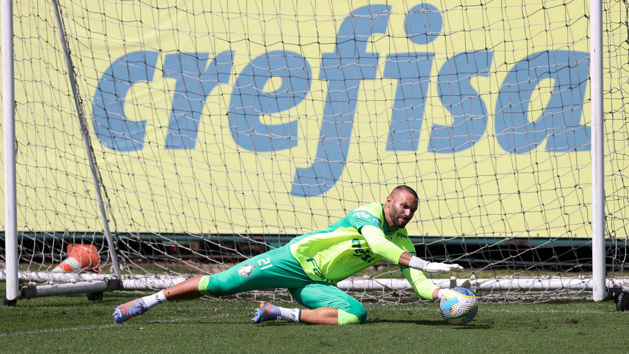 O goleiro Weverton, da SE Palmeiras, durante treinamento, na Academia de Futebol. (Foto: Cesar Greco/Palmeiras/by Canon)