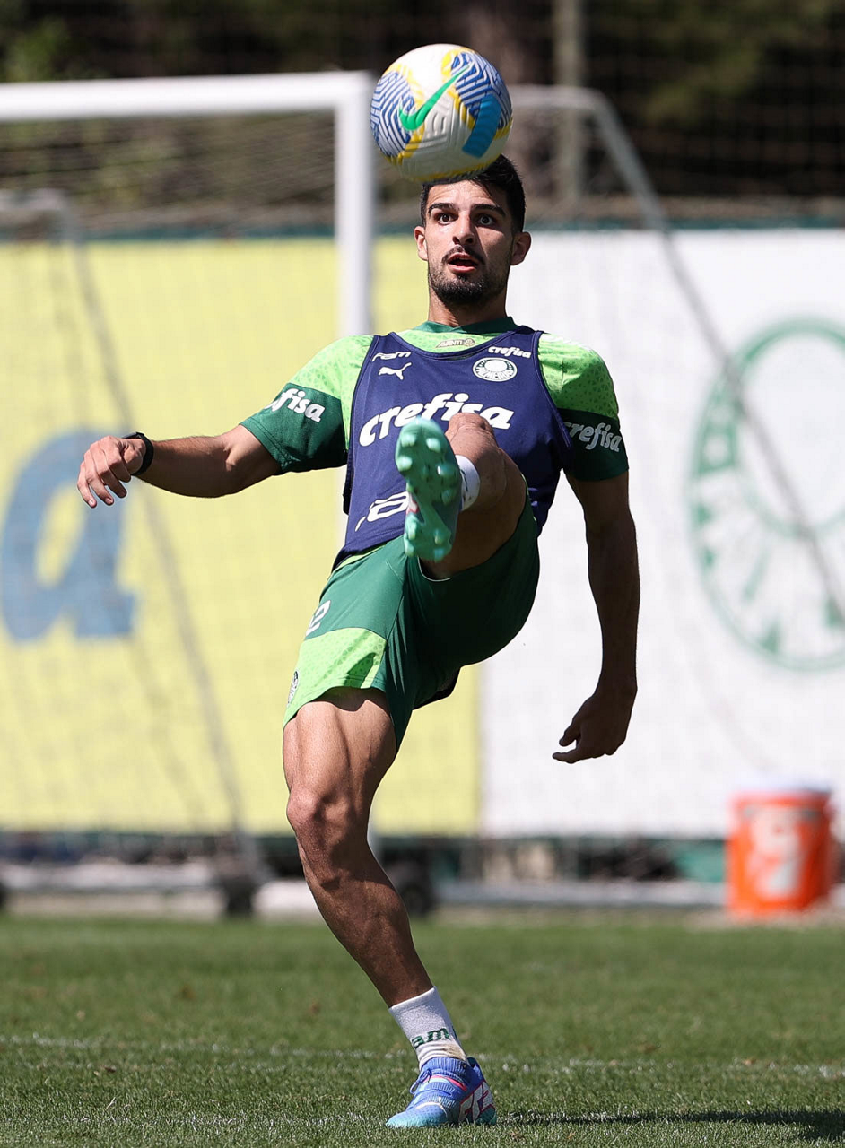 O jogador Raphael Veiga, da SE Palmeiras, durante treinamento, na Academia de Futebol. (Foto: Cesar Greco/Palmeiras/by Canon)