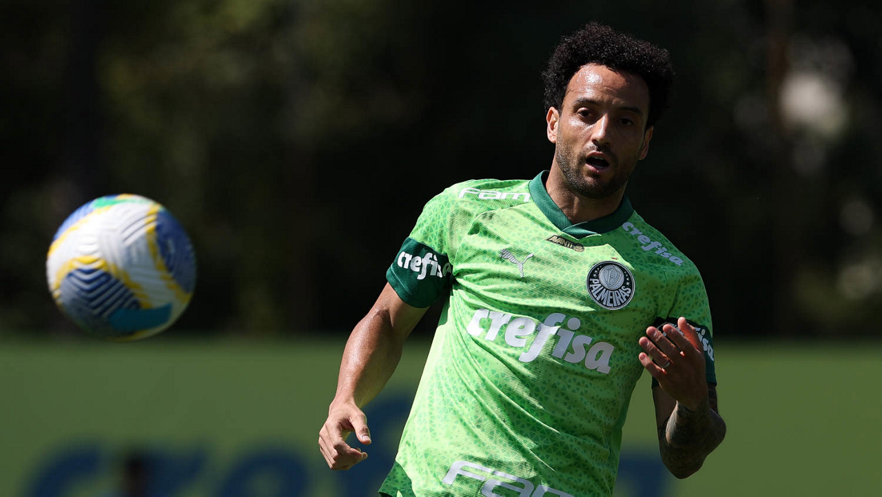 O jogador Felipe Anderson, da SE Palmeiras, durante treinamento, na Academia de Futebol. (Foto: Cesar Greco/Palmeiras/by Canon)