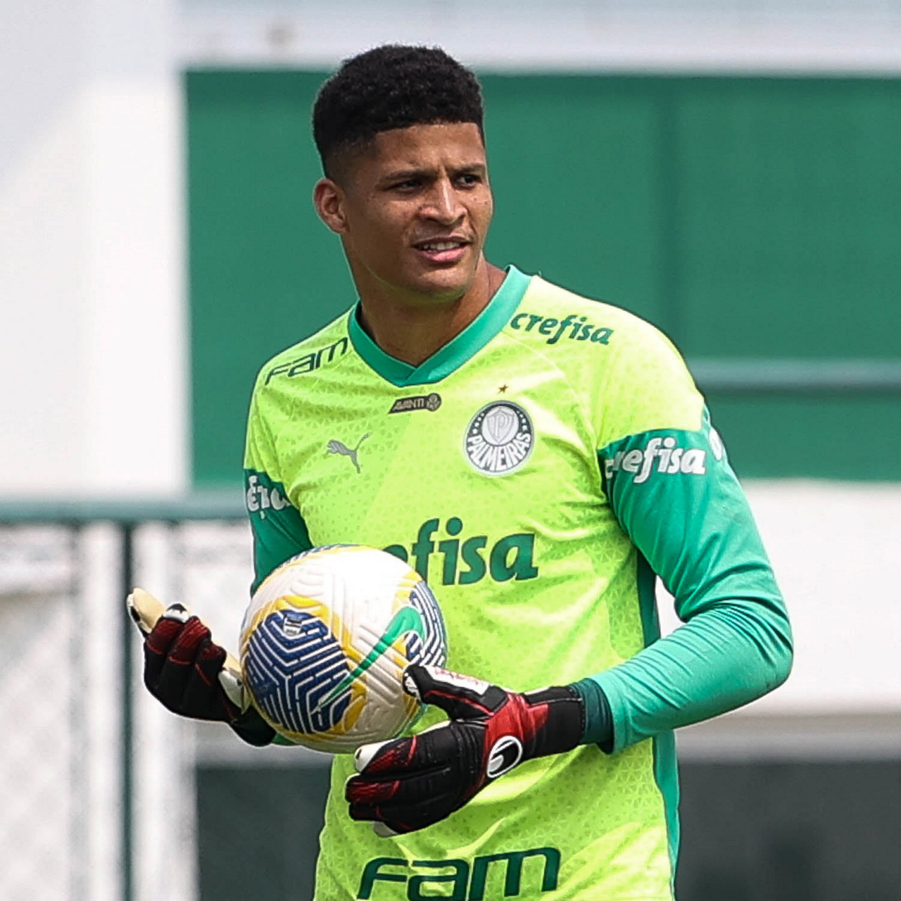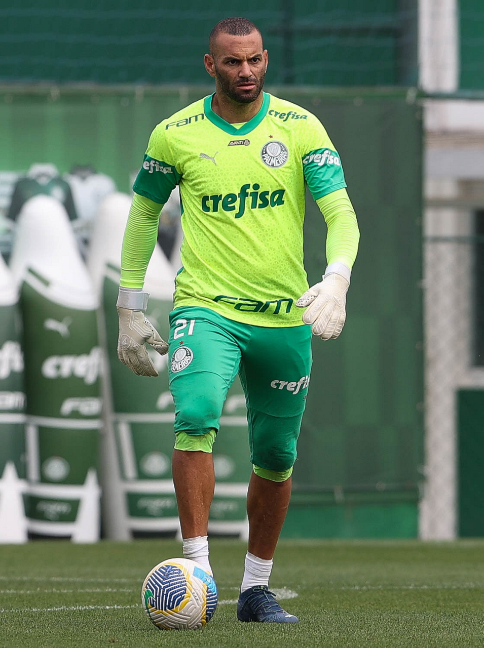 O goleiro Weverton, da SE Palmeiras, durante treinamento, na Academia de Futebol. (Foto: Cesar Greco/Palmeiras/by Canon)