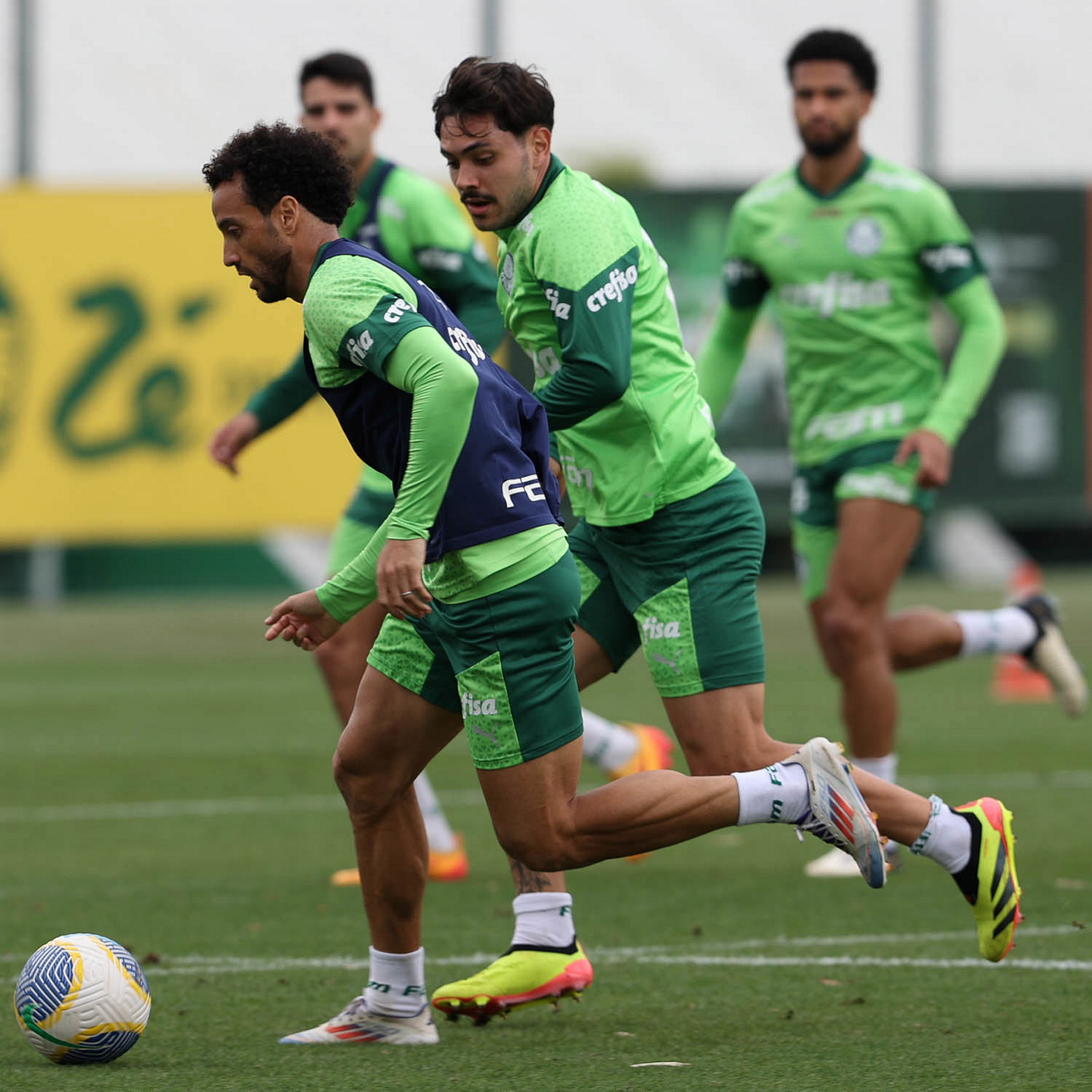 Os jogadores Rony, Fabinho e Anibal Moreno (E/D), da SE Palmeiras, durante treinamento, na Academia de Futebol. (Foto: Cesar Greco/Palmeiras/by Canon)