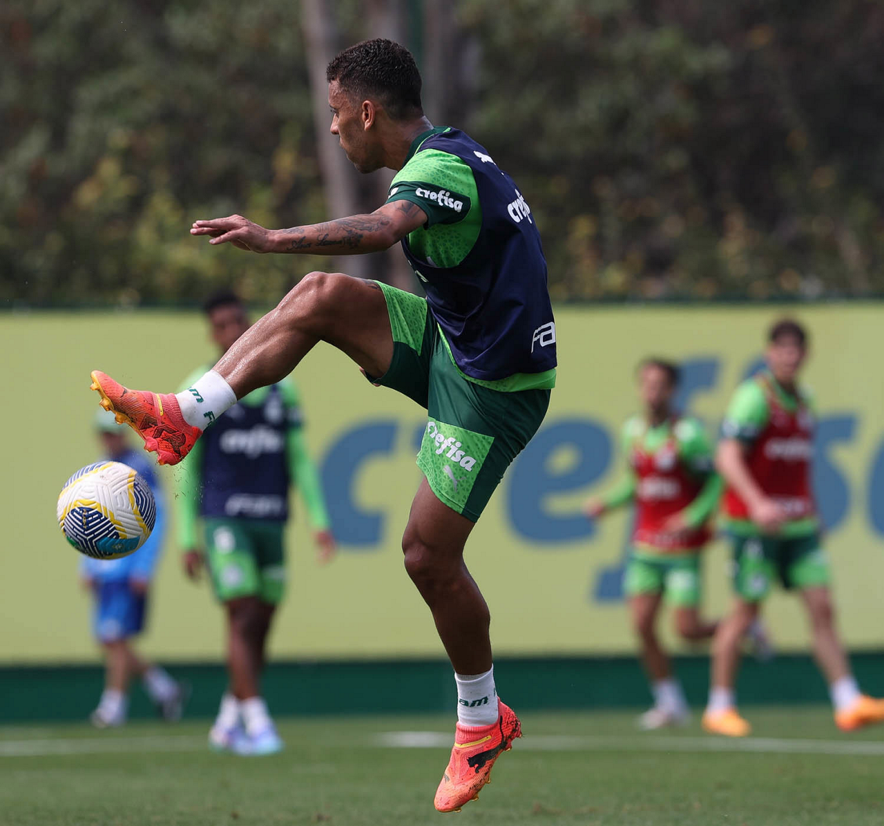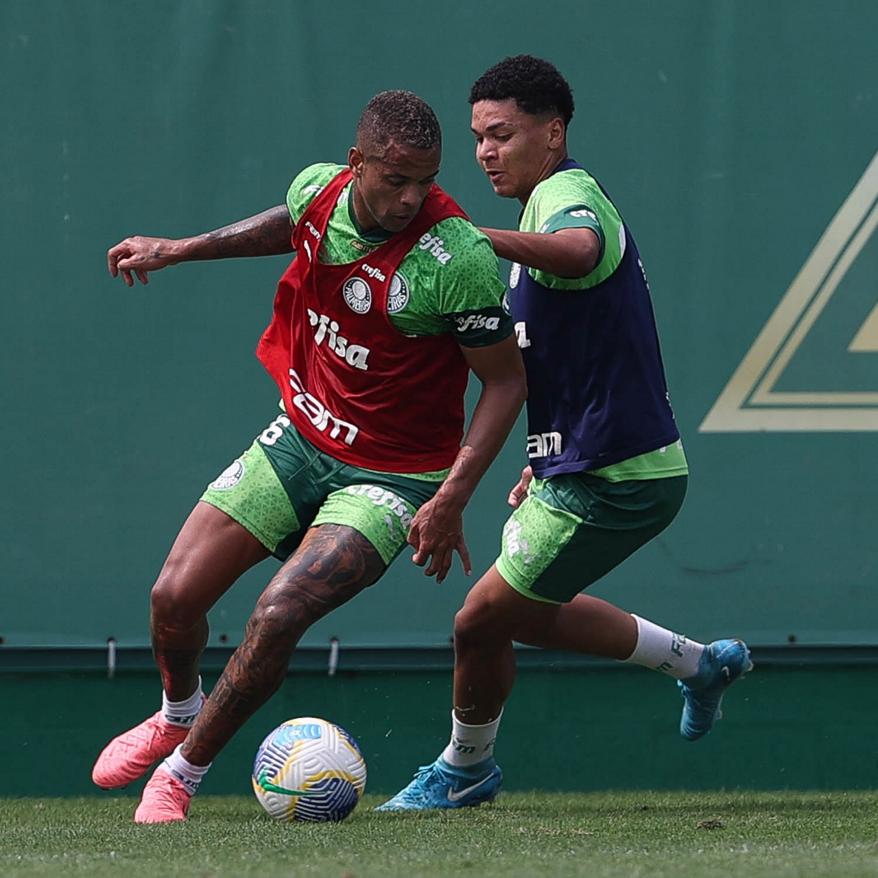 Os jogadores Lenadro, Naves, Marcos Rocha, Pedro, Fabinho, Agner e Isaac (E/D em pé) e Flaco López, Dudu, Weverton, Vanderlan, Mauricio e Rikelme (E/D agachados), da SE Palmeiras, durante treinamento, na Academia de Futebol. (Foto: Cesar Greco/Palmeiras/by Canon)