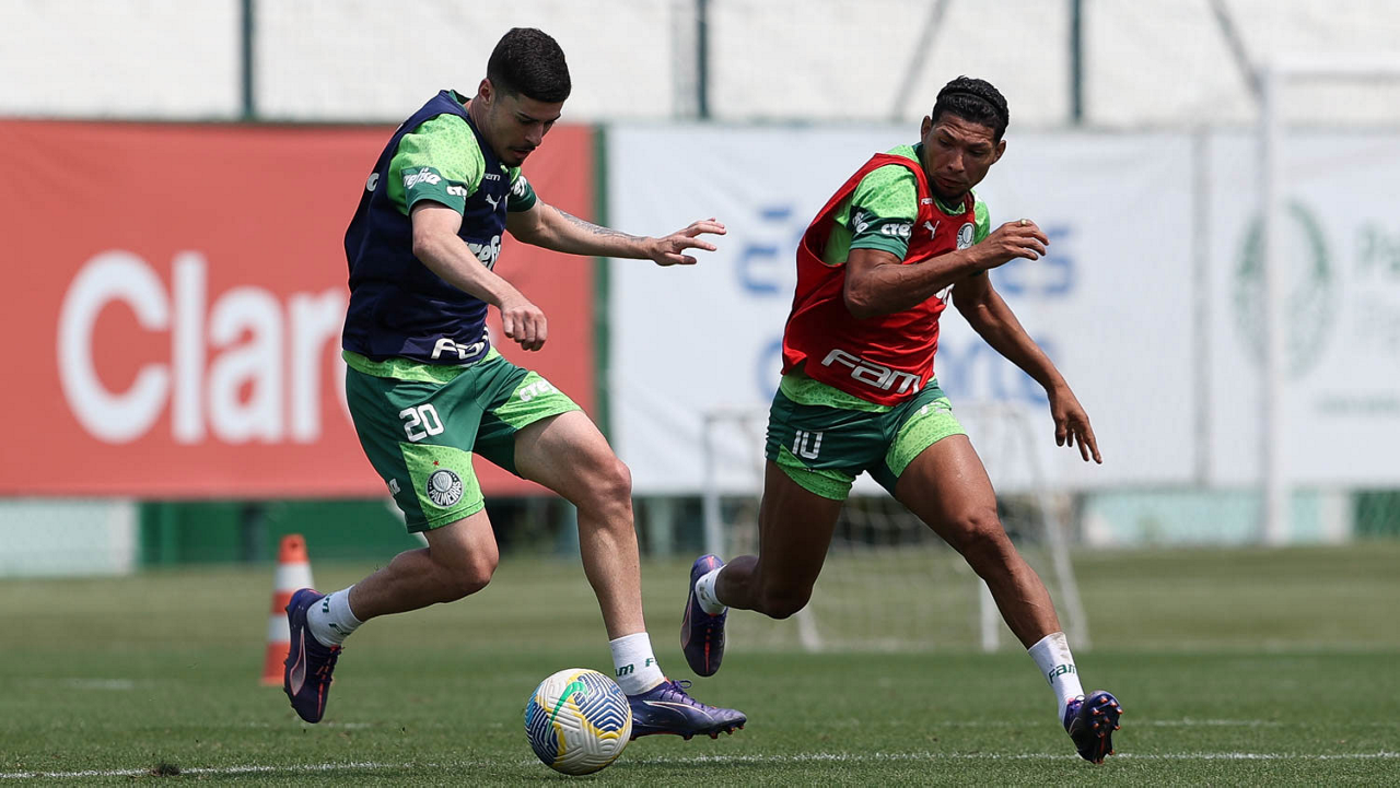 Os jogadores Rony e Fabinho (D), da SE Palmeiras, durante treinamento, na Academia de Futebol. (Foto: Cesar Greco/Palmeiras/by Canon)