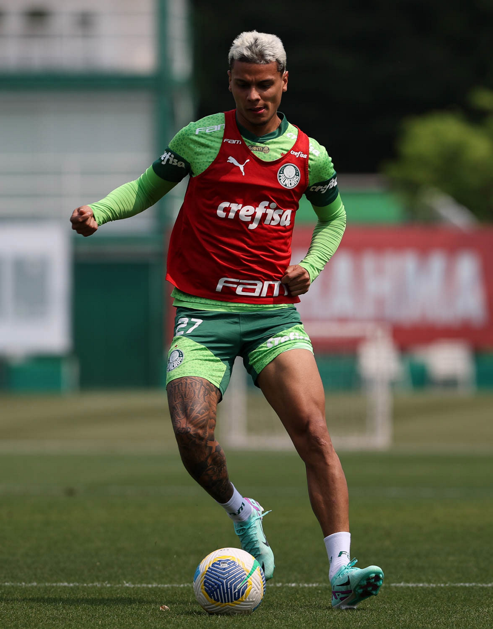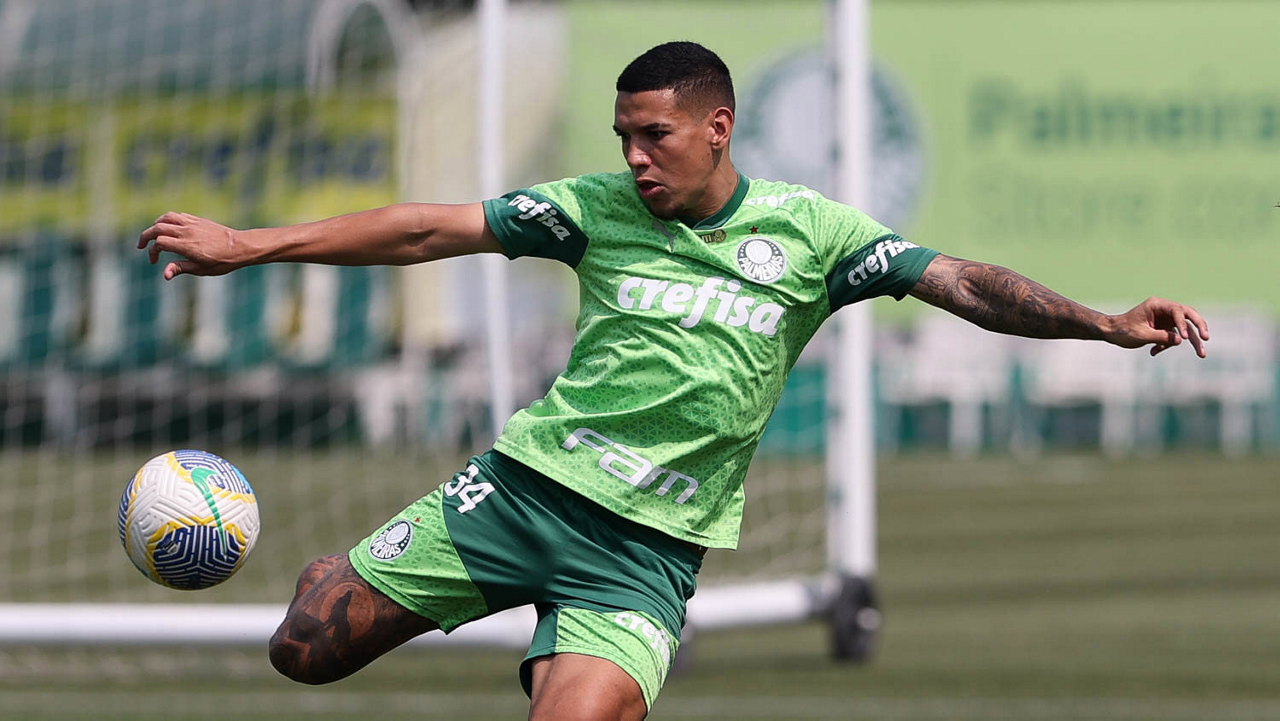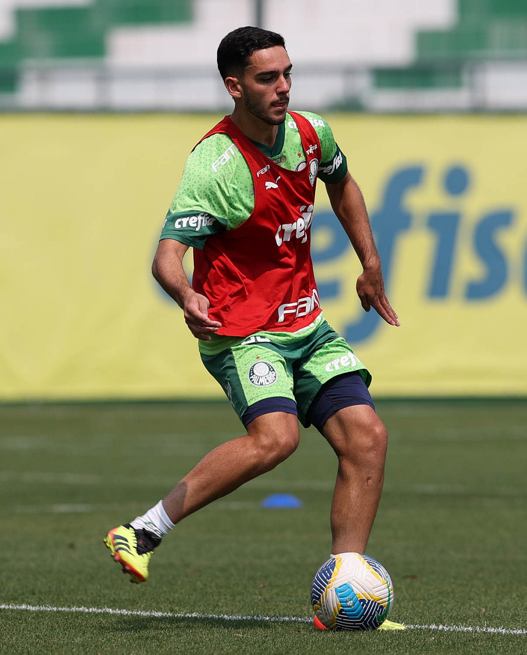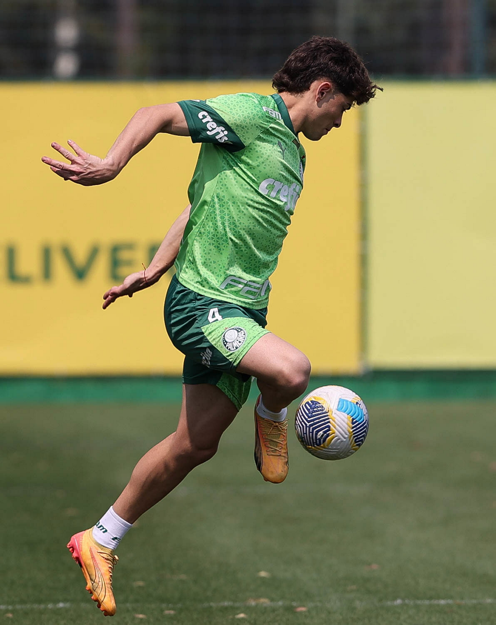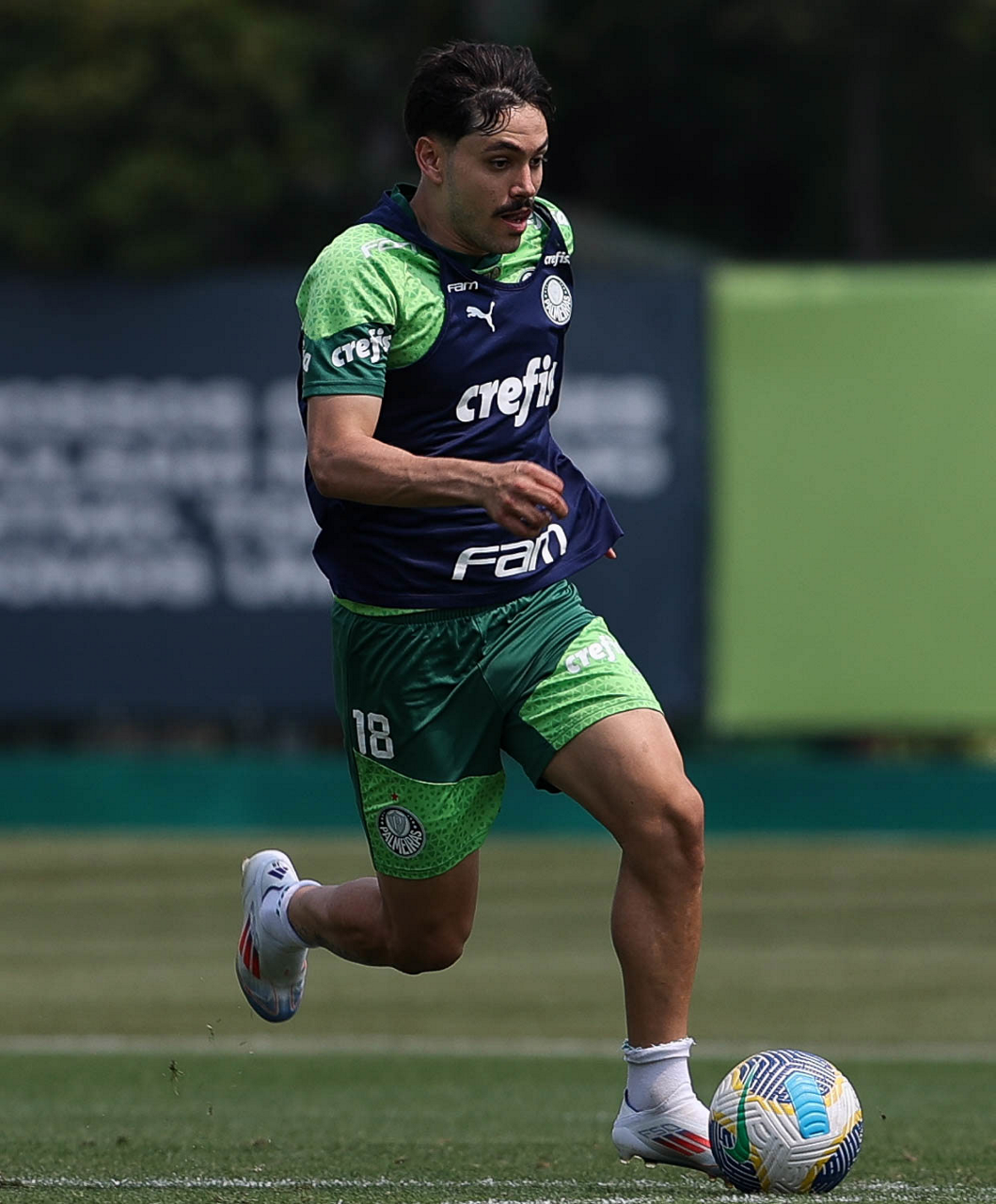 O jogador Richard Ríos, da SE Palmeiras, durante treinamento, na Academia de Futebol. (Foto: Cesar Greco/Palmeiras/by Canon)