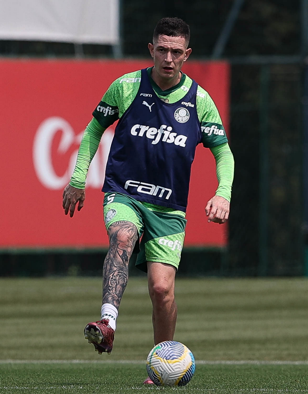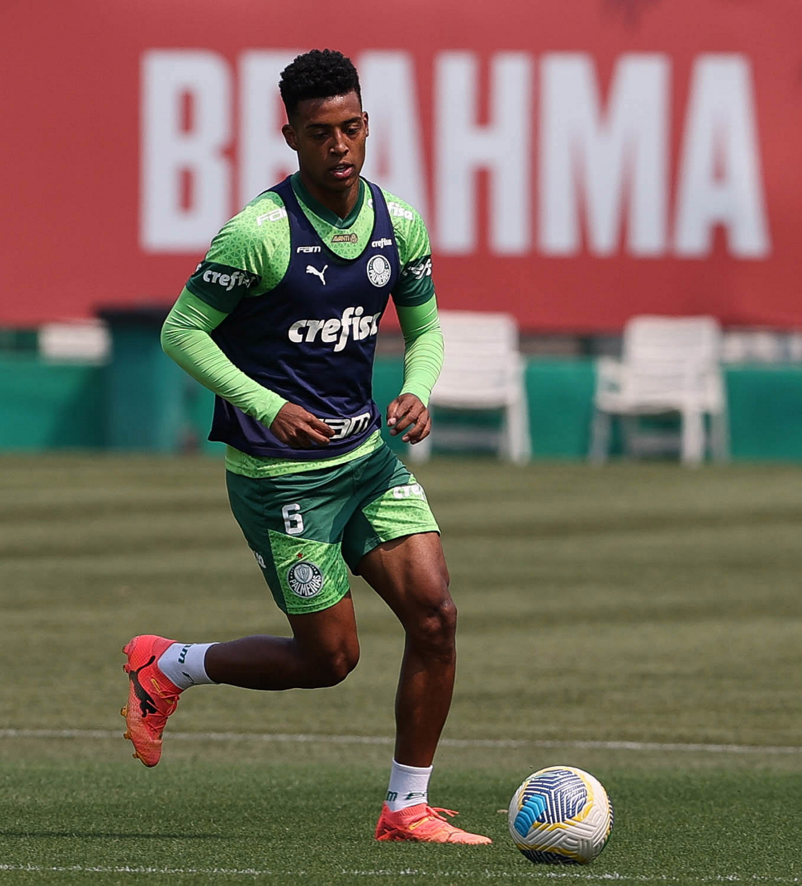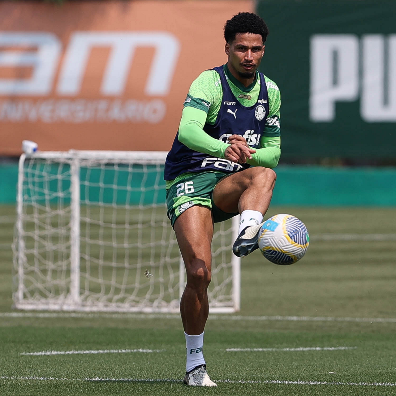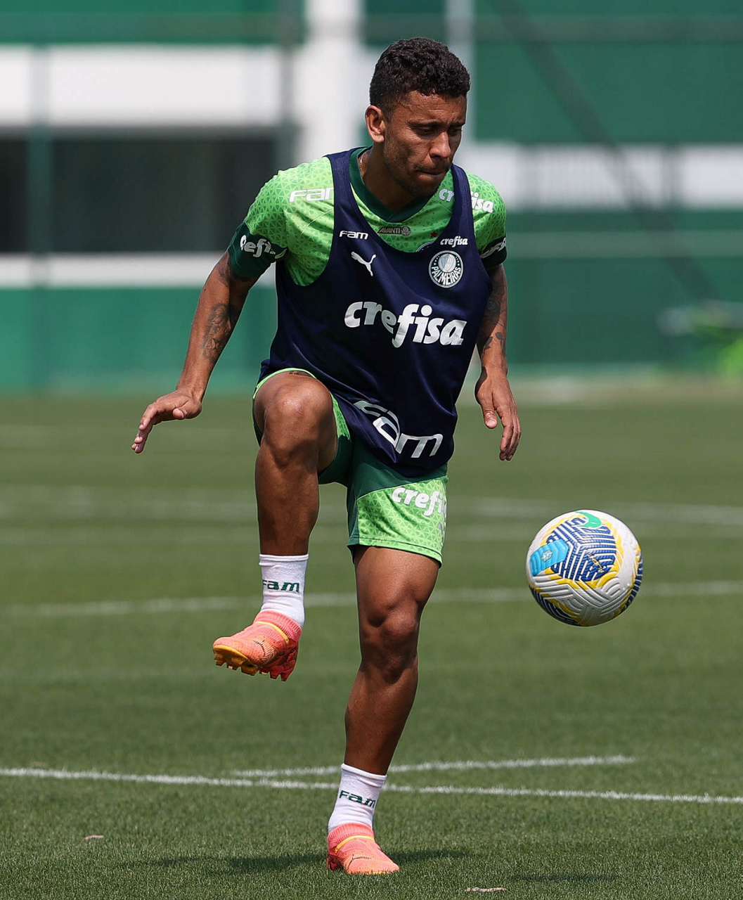 O jogador Richard Ríos, da SE Palmeiras, durante treinamento, na Academia de Futebol. (Foto: Cesar Greco/Palmeiras/by Canon)