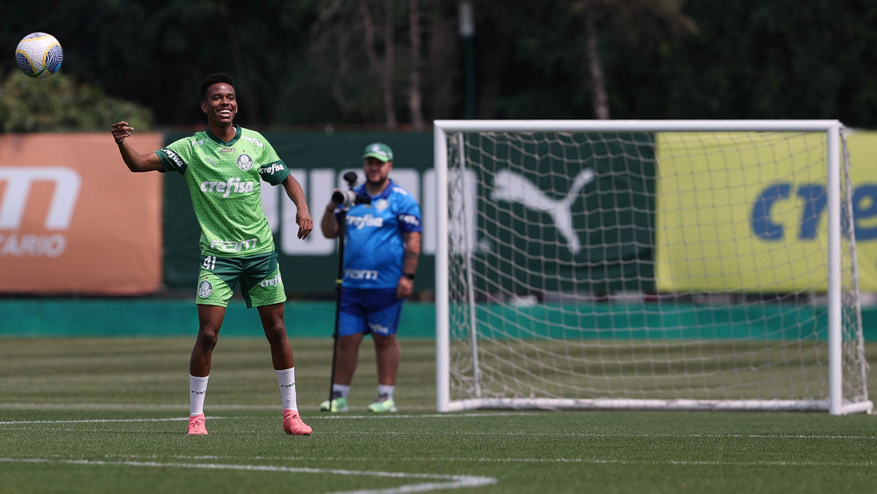 O jogador Estêvão, da SE Palmeiras, durante treinamento, na Academia de Futebol. (Foto: Cesar Greco/Palmeiras/by Canon)