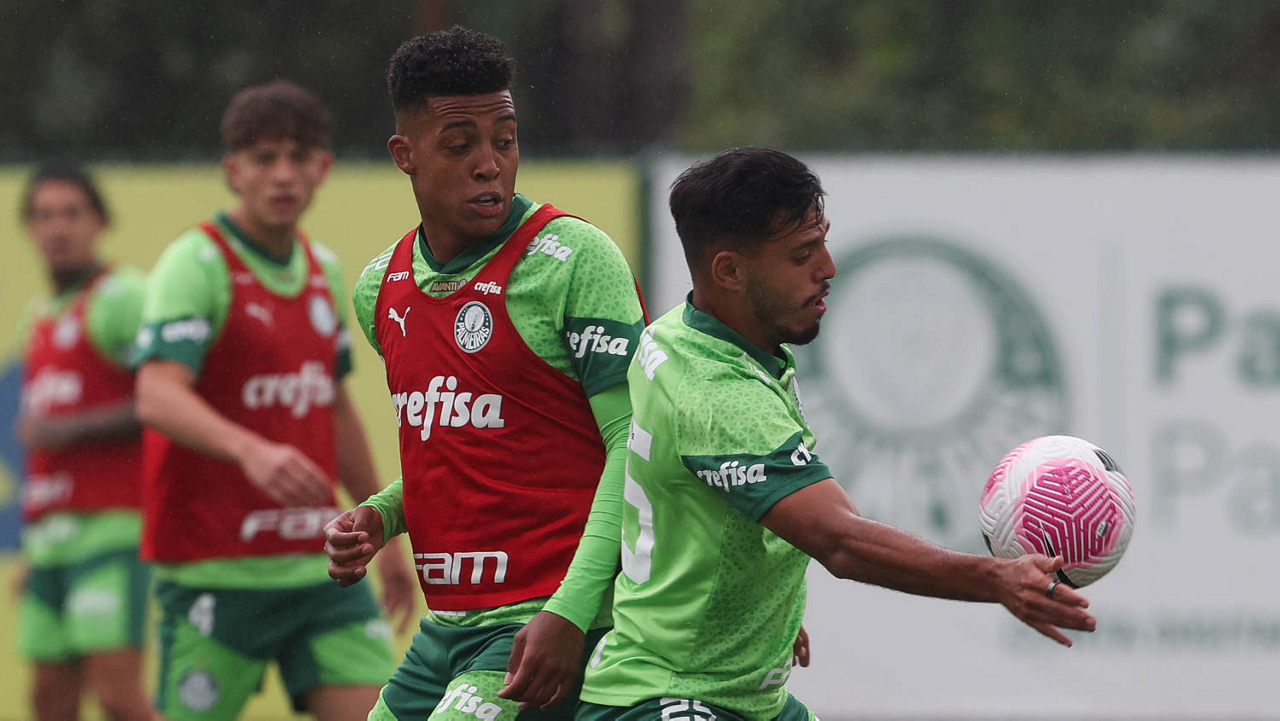 O jogador Gabriel Menino, da SE Palmeiras, durante treinamento, na Academia de Futebol. (Foto: Cesar Greco/Palmeiras/by Canon)