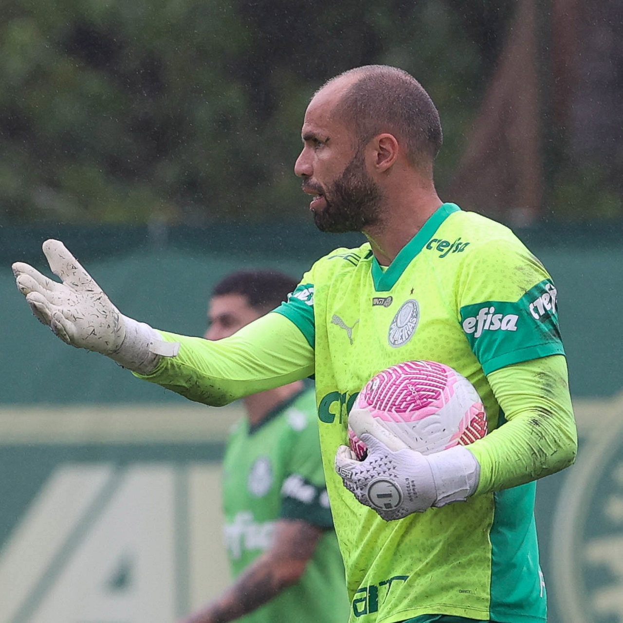 O goleiro Weverton, da SE Palmeiras, durante treinamento, na Academia de Futebol. (Foto: Cesar Greco/Palmeiras/by Canon)