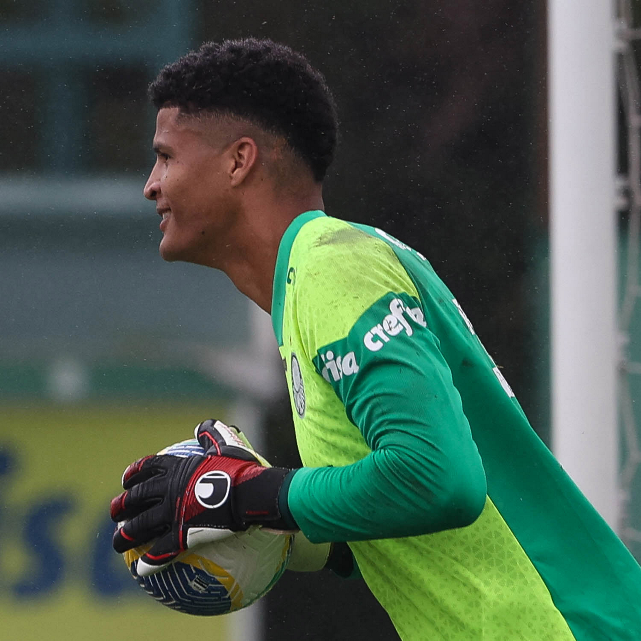 O goleiro Mateus, da SE Palmeiras, durante treinamento, na Academia de Futebol. (Foto: Cesar Greco/Palmeiras/by Canon)