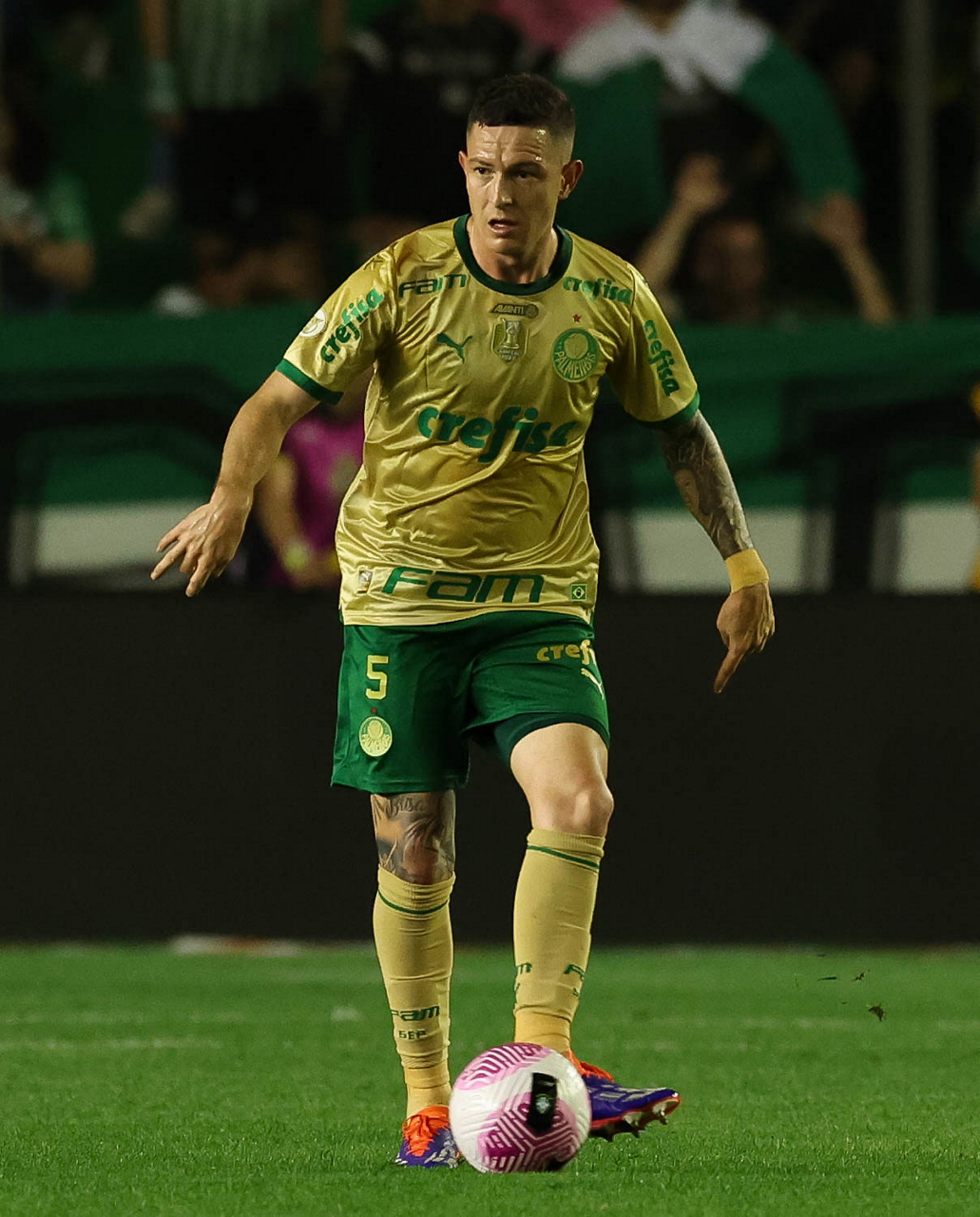 O jogador Richard Ríos, da SE Palmeiras, em jogo contra a equipe do EC Juventude, durante partida válida pela trigésima rodada, do Campeonato Brasileiro, Série A, no Estádio Alfredo Jaconi. (Foto: Cesar Greco/Palmeiras/by Canon)