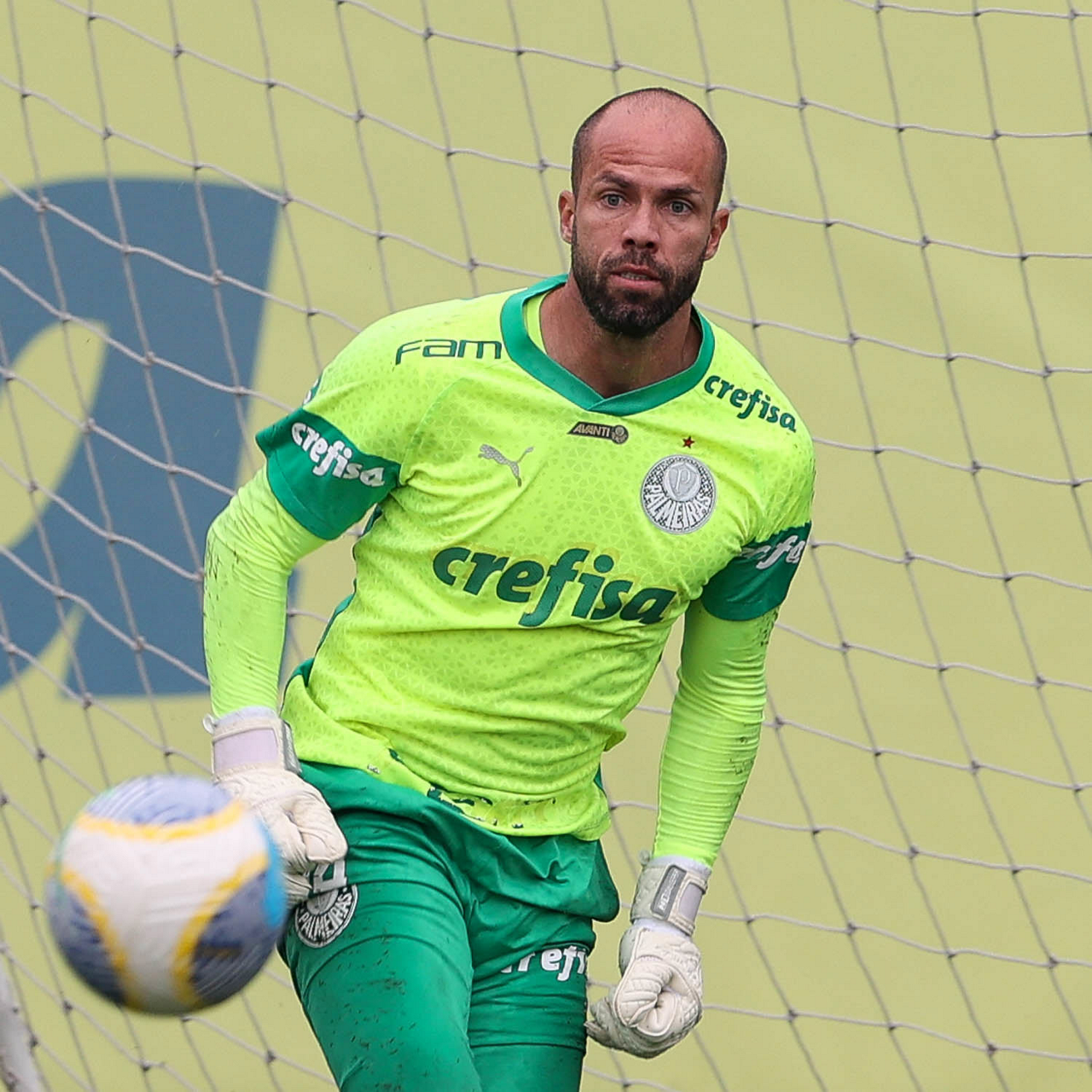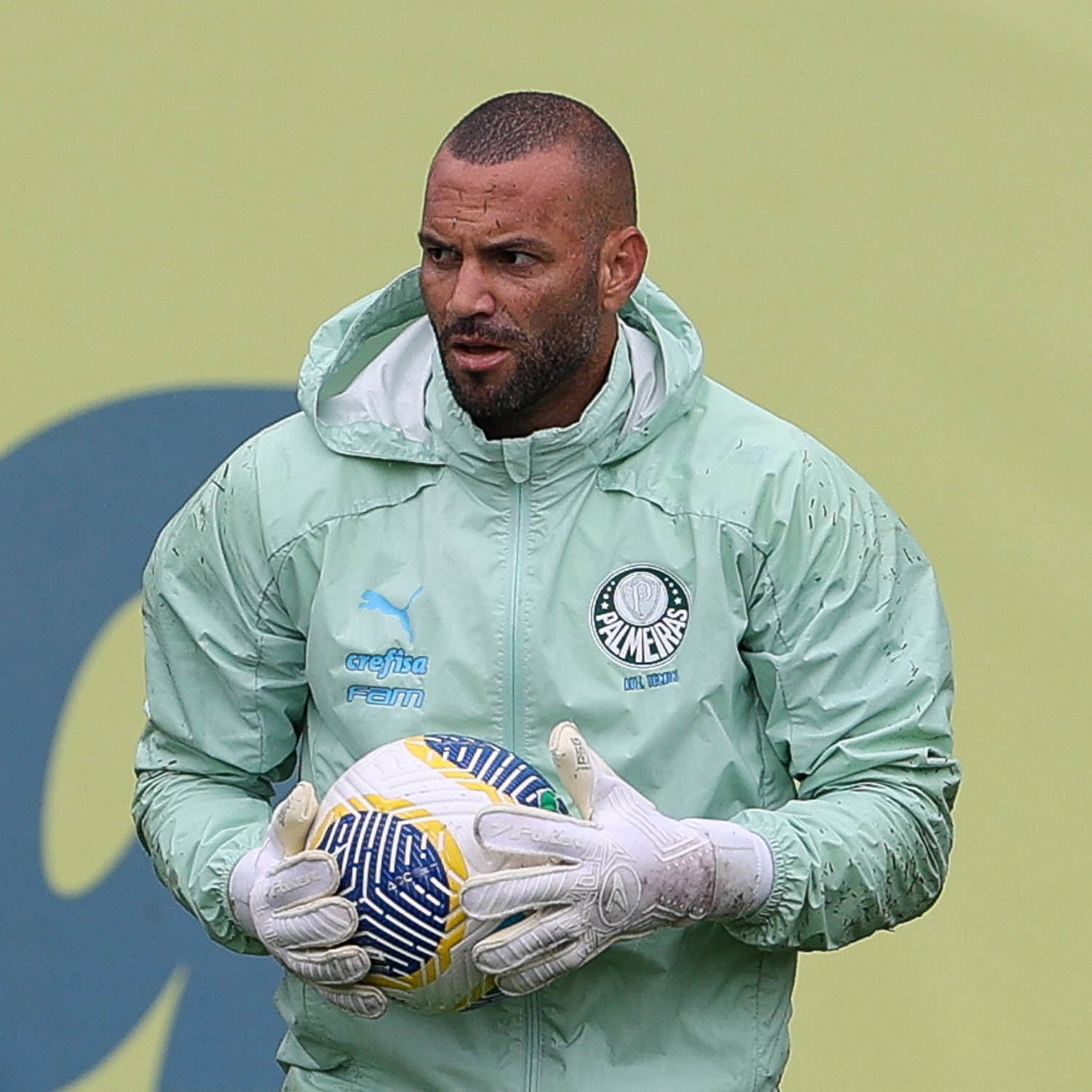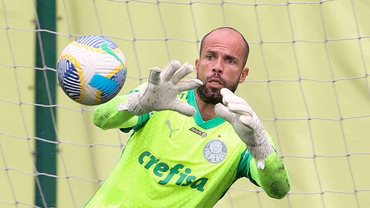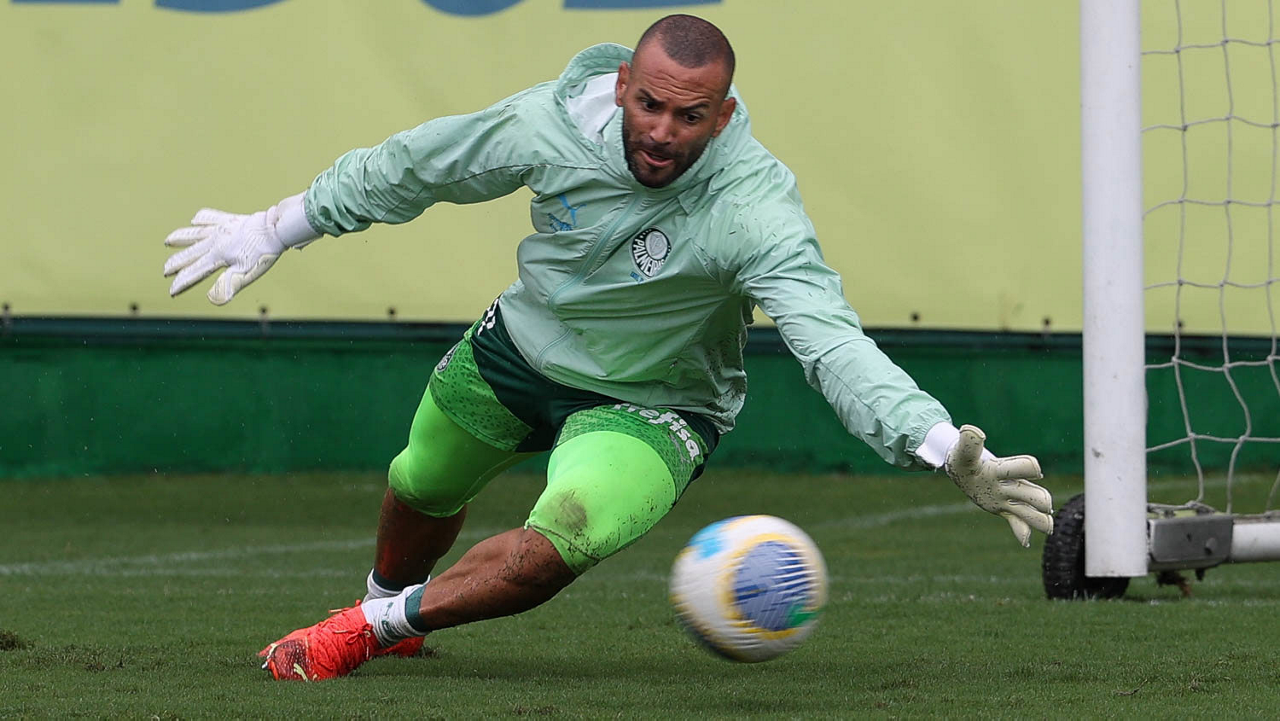 O goleiro Weverton, da SE Palmeiras, durante treinamento, na Academia de Futebol. (Foto: Cesar Greco/Palmeiras/by Canon)