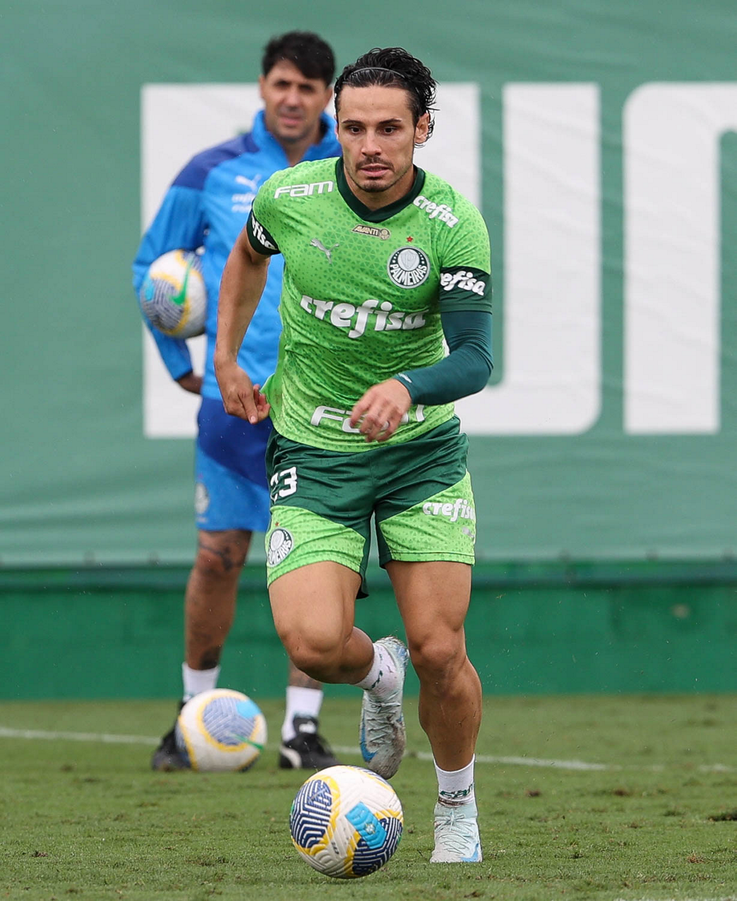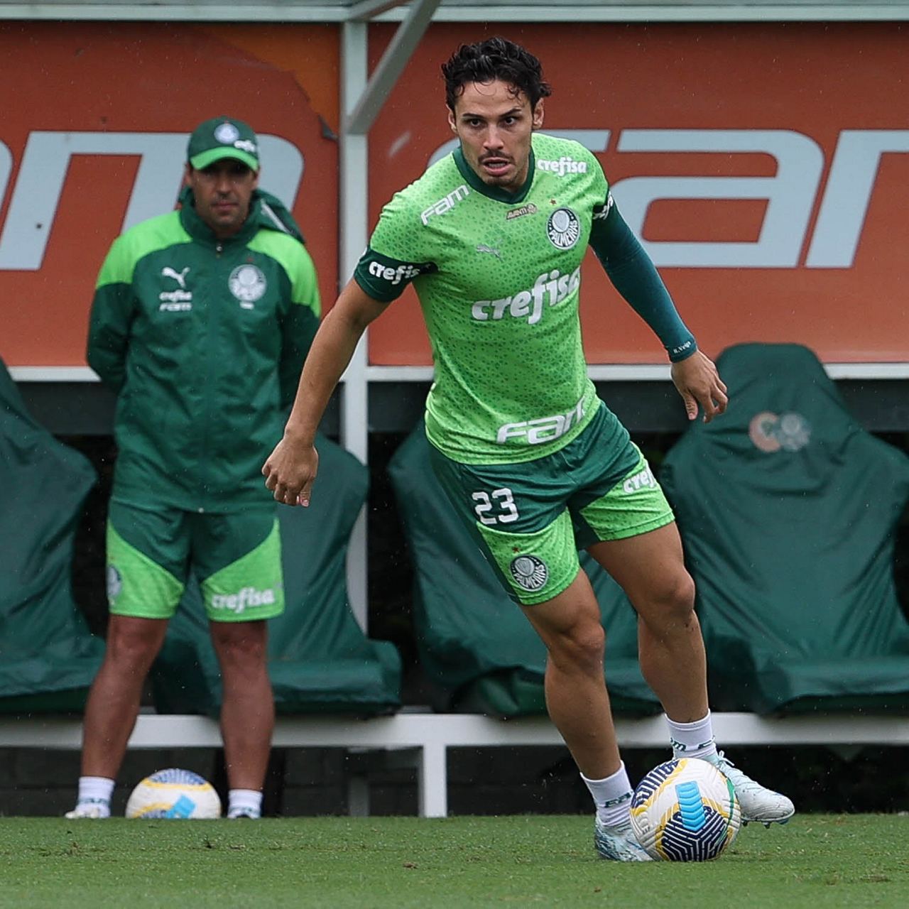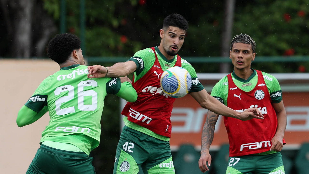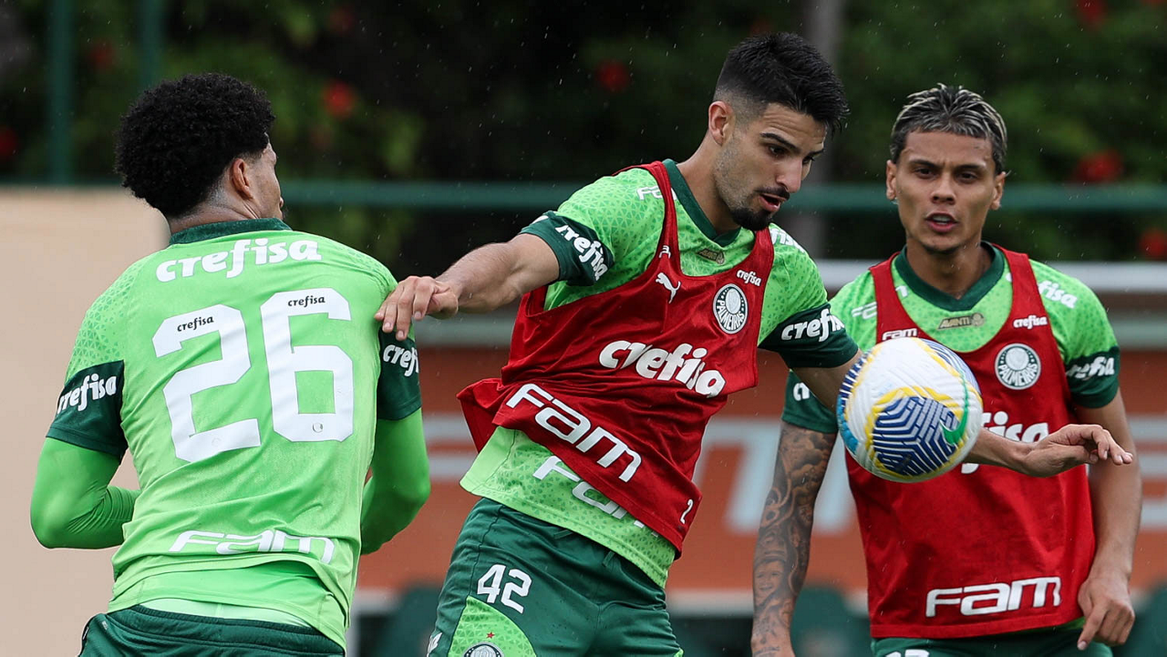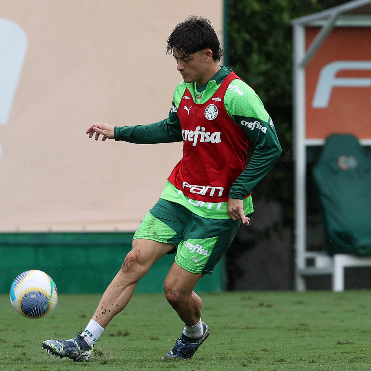 O jogador Richard Ríos, da SE Palmeiras, durante treinamento, na Academia de Futebol. (Foto: Cesar Greco/Palmeiras/by Canon)