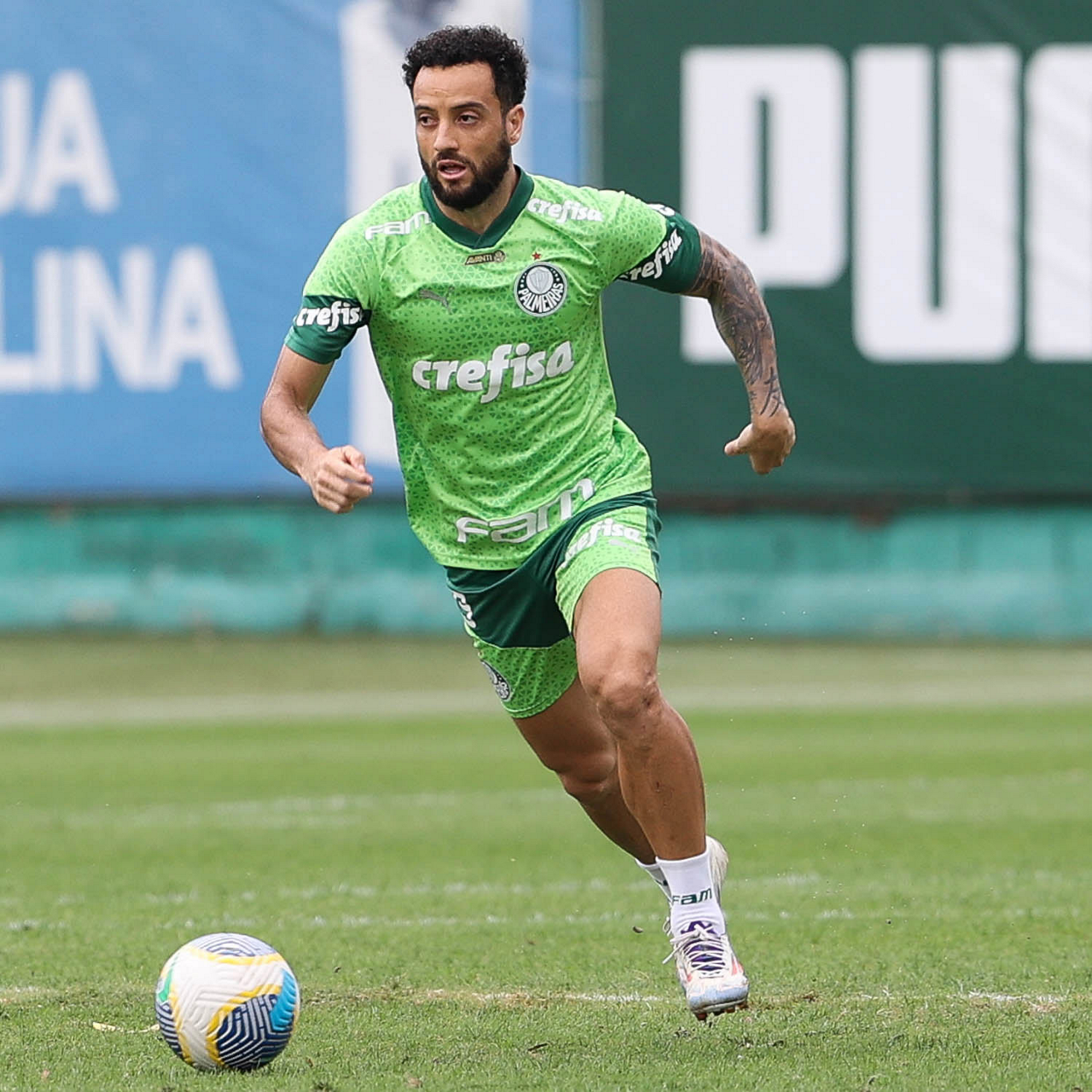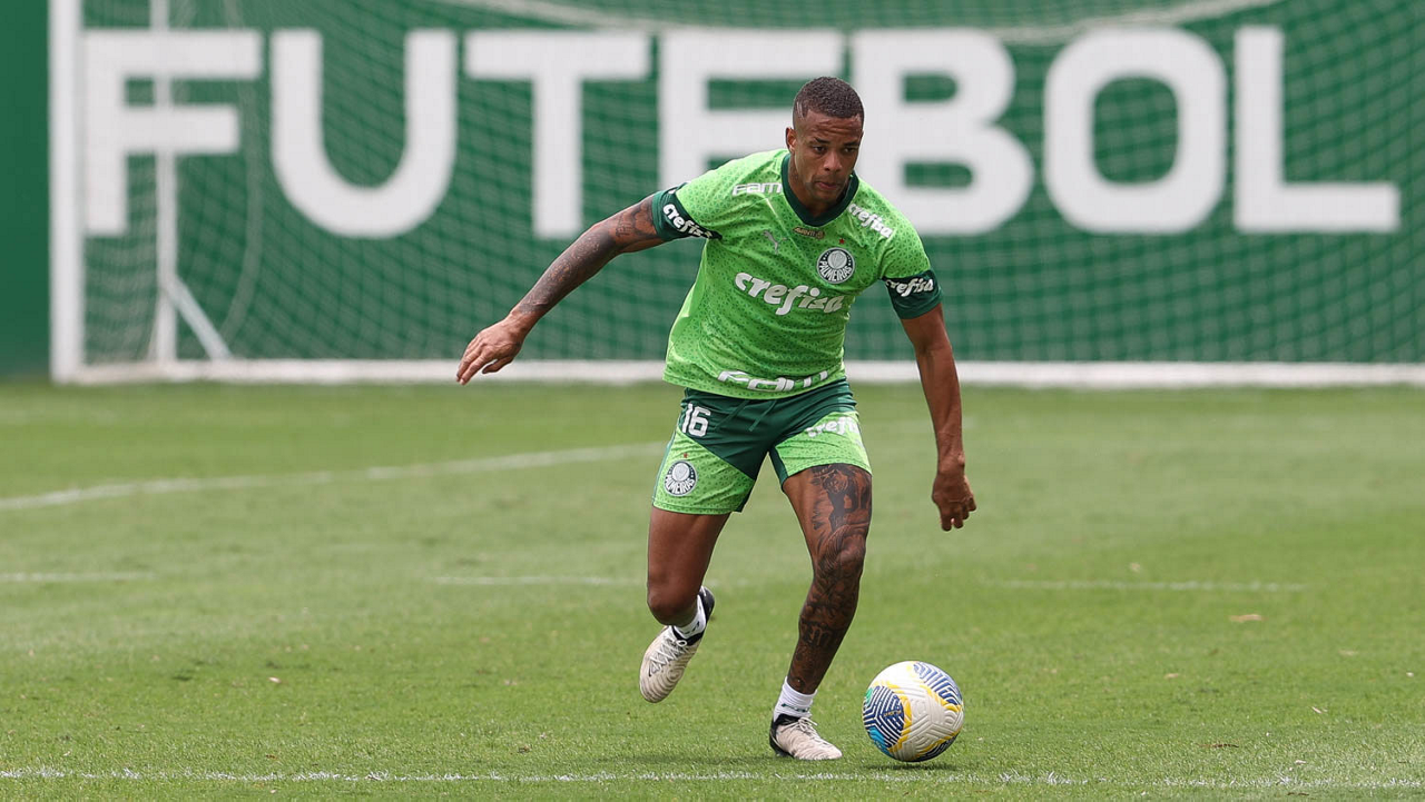 O jogador Fabinho, da SE Palmeiras, durante treinamento, na Academia de Futebol. (Foto: Cesar Greco/Palmeiras/by Canon)
