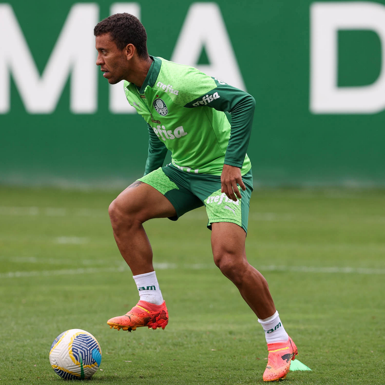 O jogador Figueiredo, da SE Palmeiras, durante treinamento, na Academia de Futebol. (Foto: Cesar Greco/Palmeiras/by Canon)