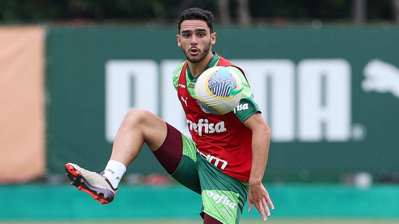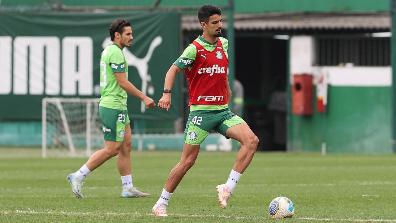O jogador Gabriel Menino, da SE Palmeiras, durante treinamento, na Academia de Futebol. (Foto: Cesar Greco/Palmeiras/by Canon)