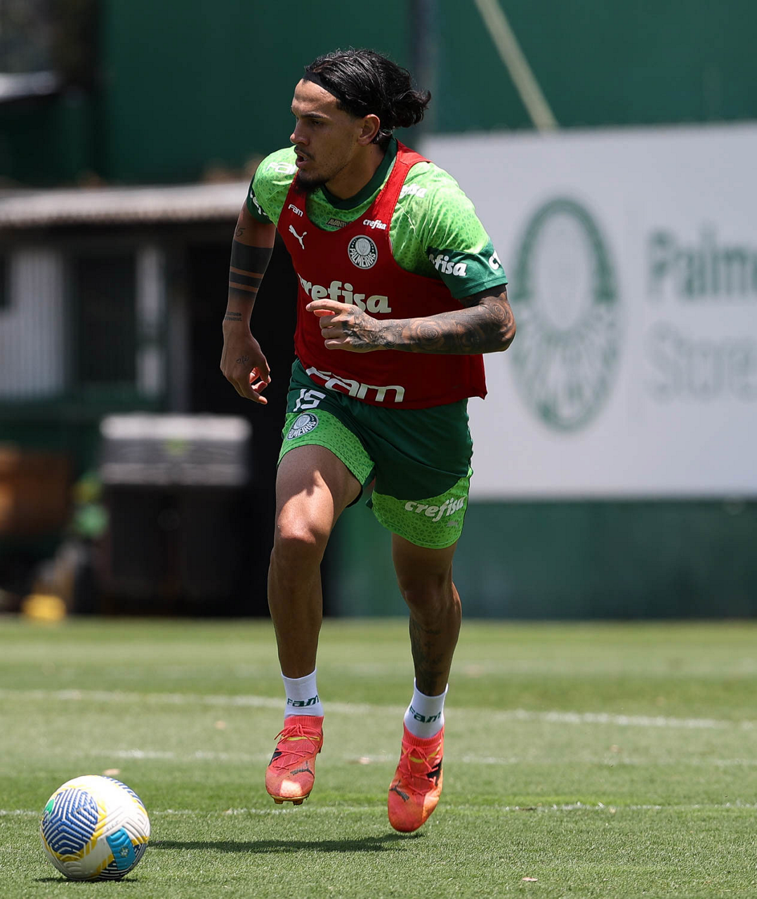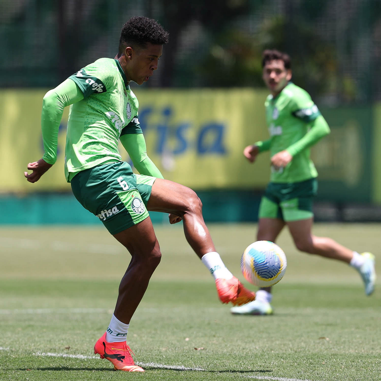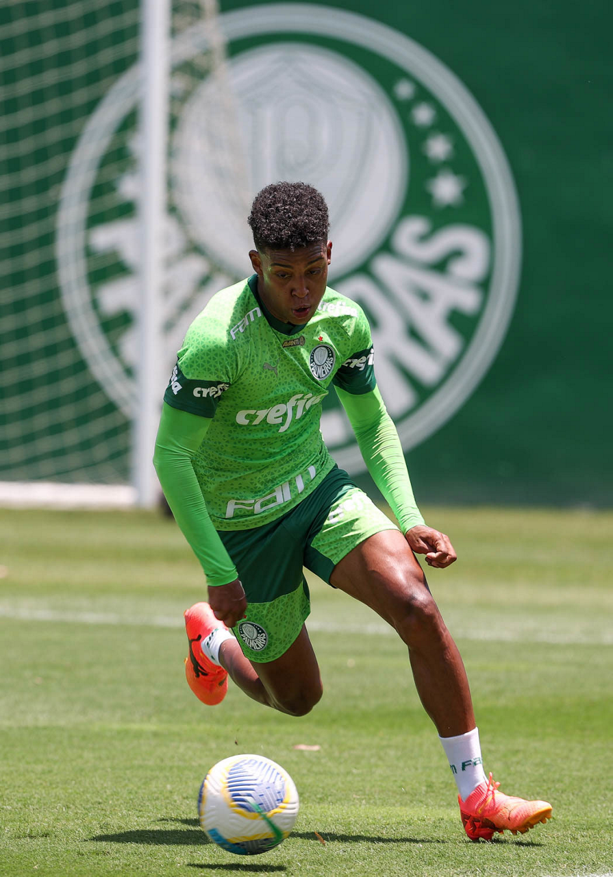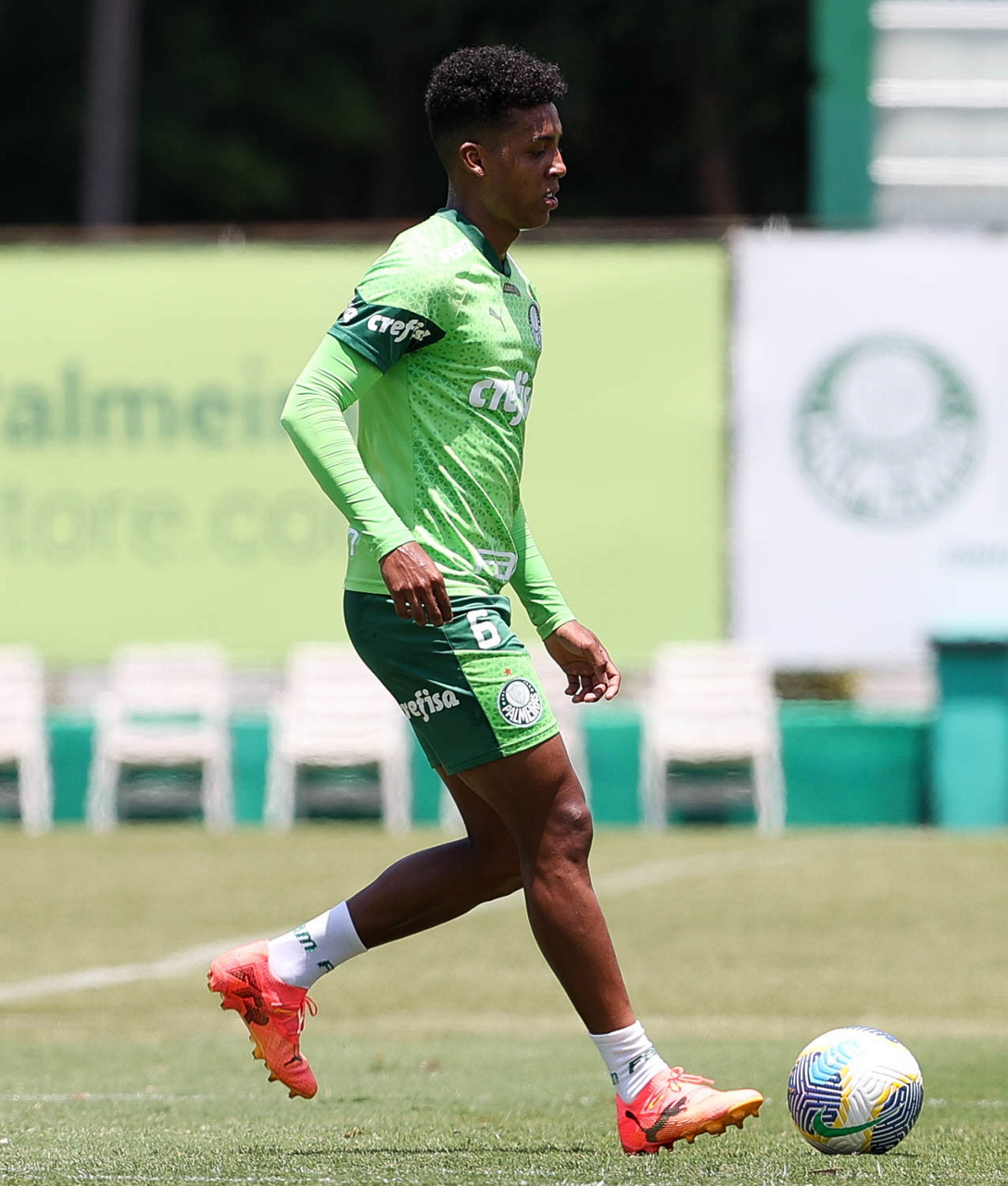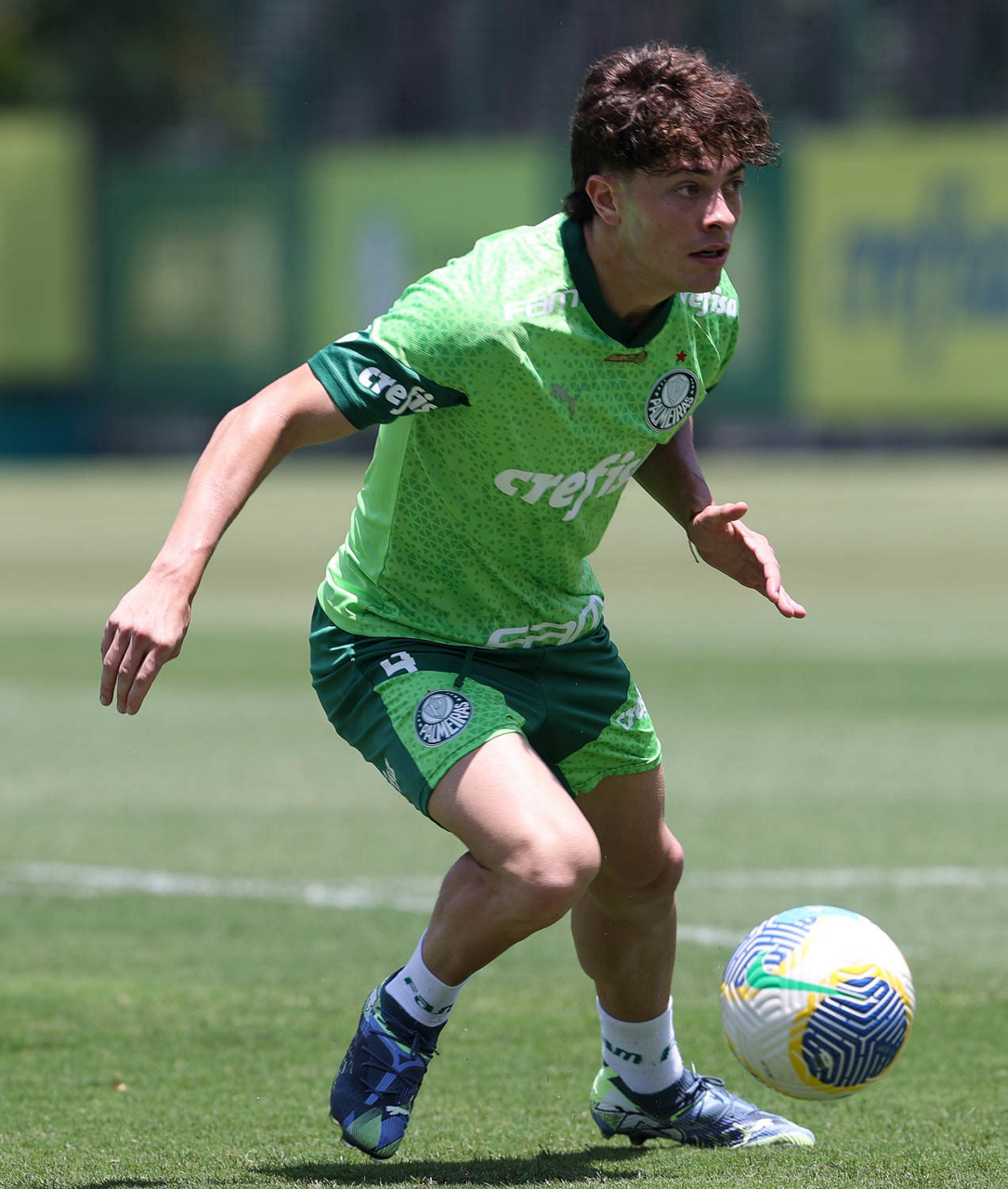 O jogador Gabriel Menino, da SE Palmeiras, durante treinamento, na Academia de Futebol. (Foto: Cesar Greco/Palmeiras/by Canon)