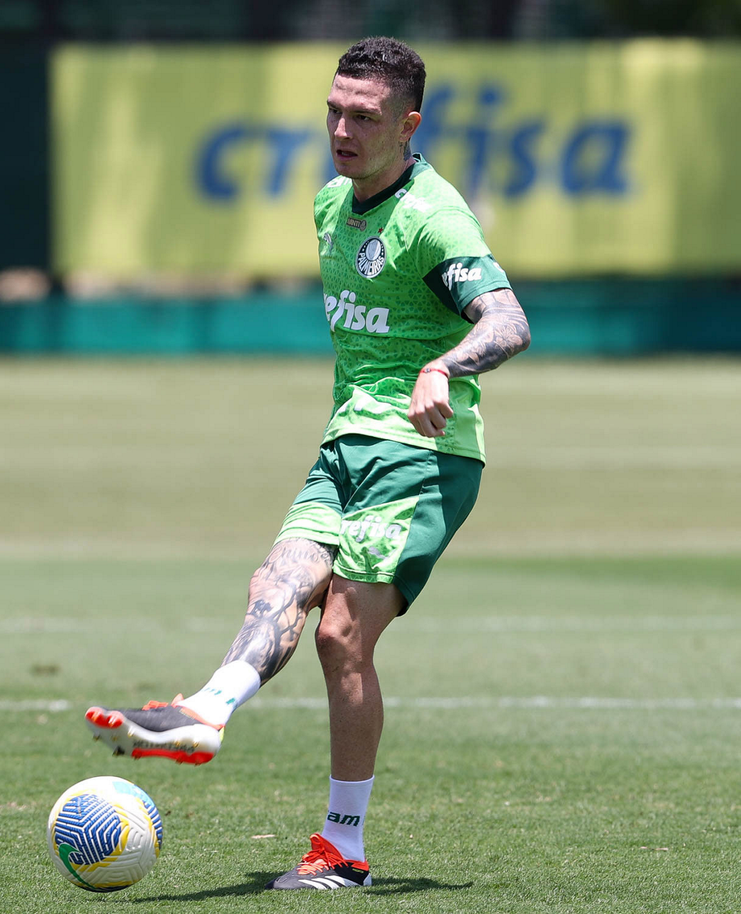 O jogador Agustín Giay, da SE Palmeiras, durante treinamento, na Academia de Futebol. (Foto: Cesar Greco/Palmeiras/by Canon)